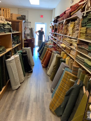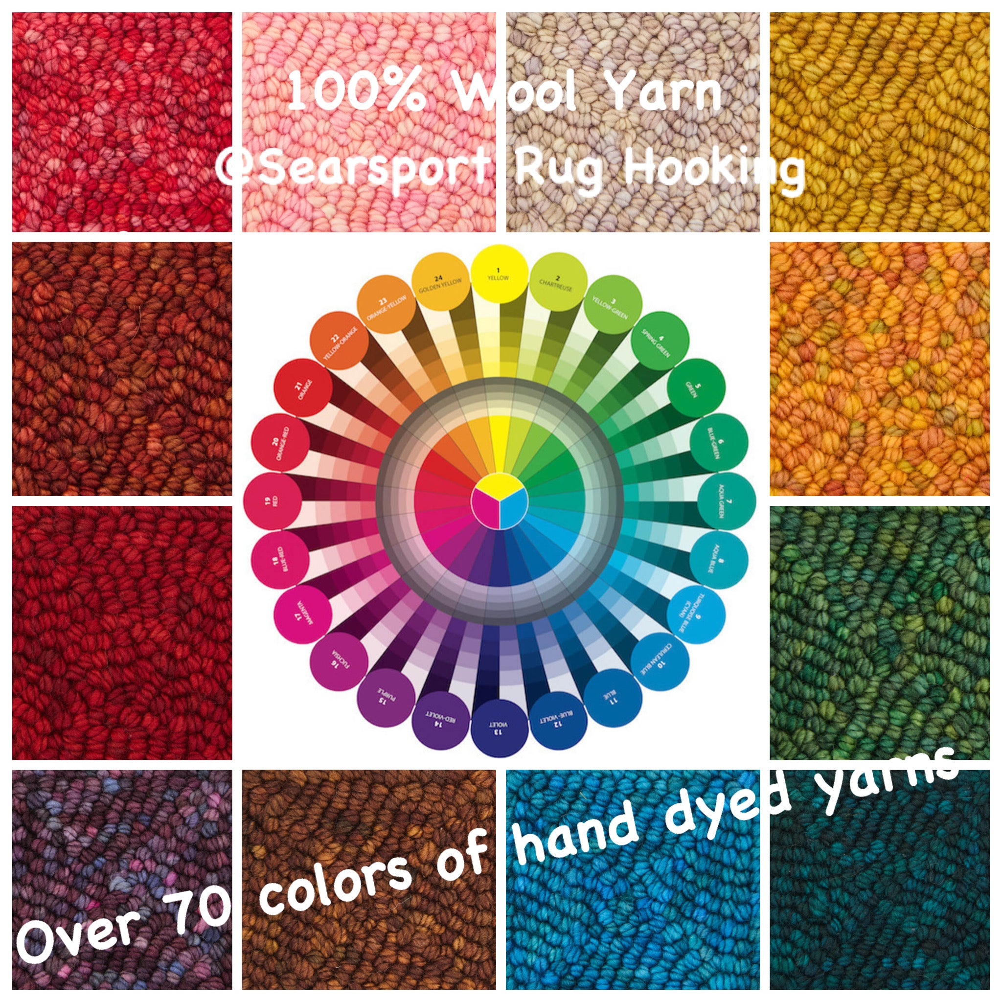 We stock hundreds of bolts of 100% wool for rug hooking, appliqué, sewing and stitching. Yes, right here in Irmo, South Carolina! We carry both as is bolt wool and beautiful hand dyed wool that we dye right here in our special dye kitchen! The whole rainbow is available at Searsport! Color planning is a breeze when you come with your patterns to look at colors. We are always happy to help at no charge if you need it also.