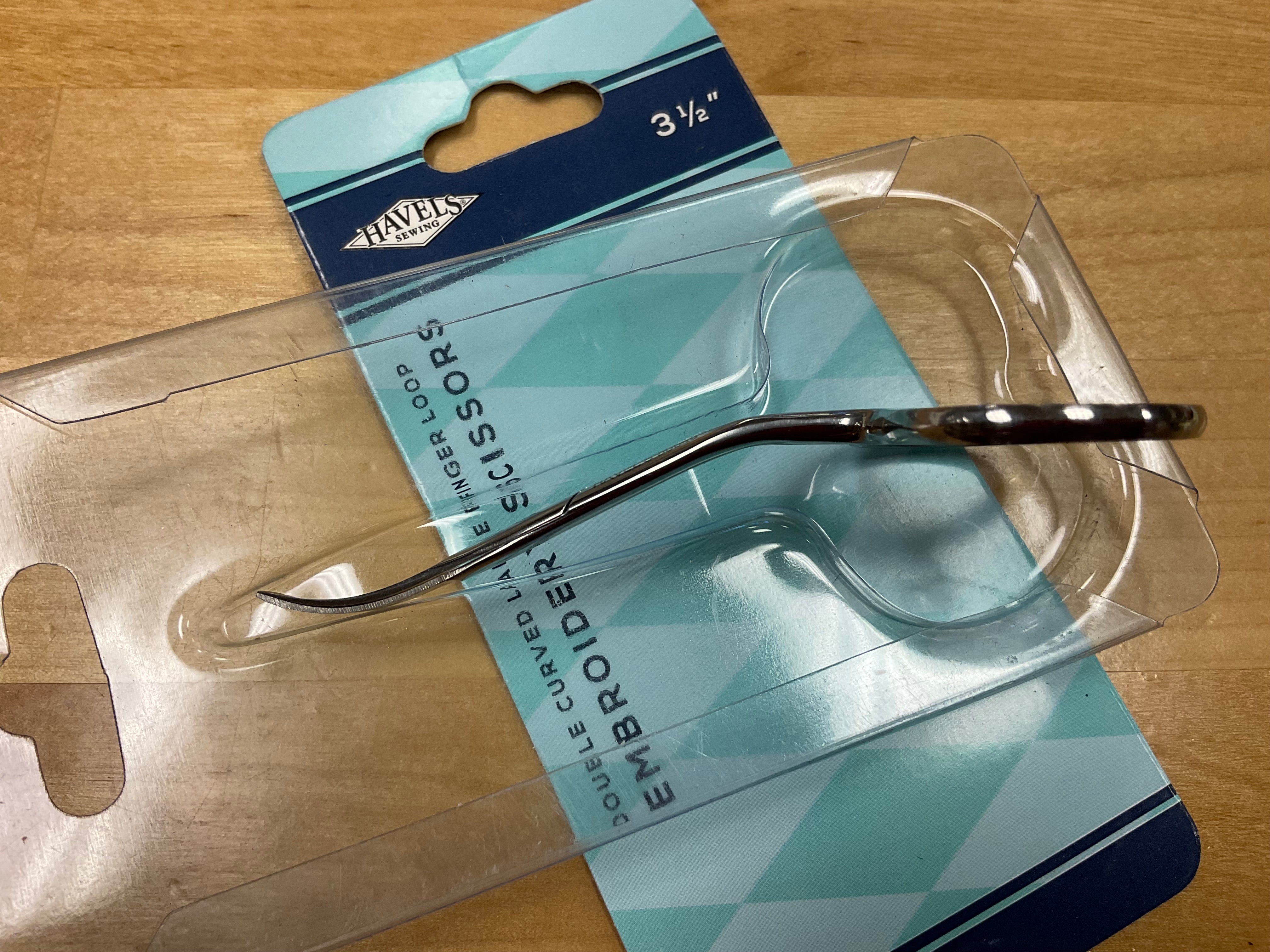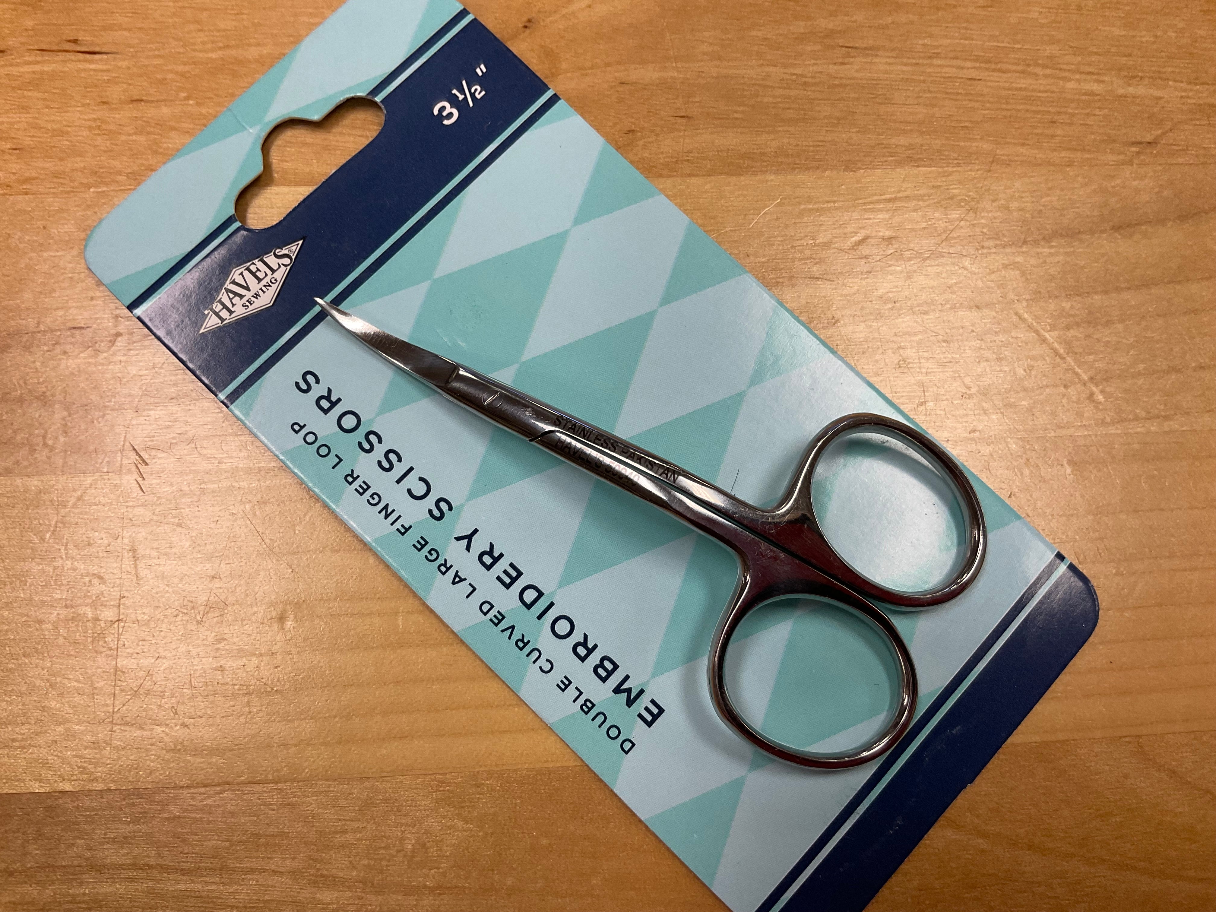 Now Our popular 3.5in Double-Curved Embroidery Scissors gain added comfort with a larger finger loop version! These scissors are angled to reach easily over any hand or machine hoop. The pointed tip of the curved blades cuts close without harming your fabric, and the length makes it easy to use and maneuver. Every sewing or fabric artist should have a pair!