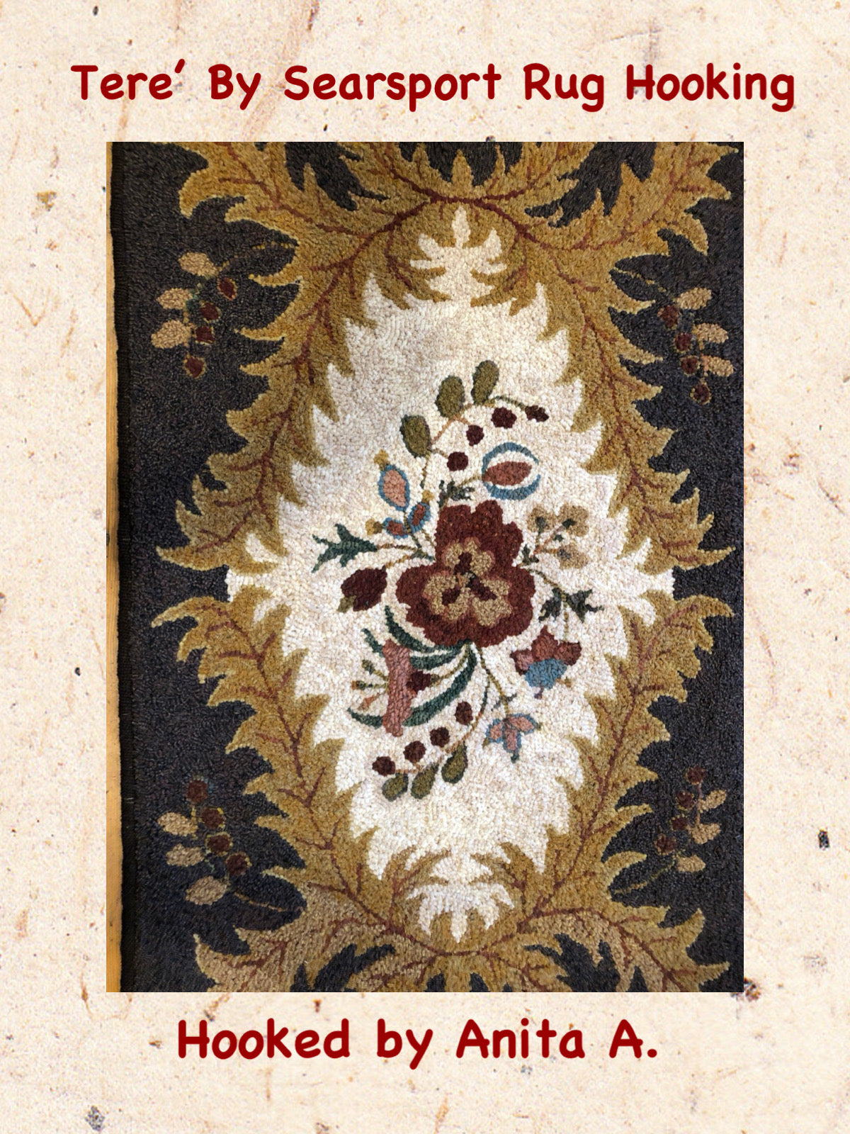 This wonderful rug is hand drawn on linen on the straight of the grain. The finished size is 24x40 our sample was hooked by 84 yrs Anita A! Thank you Anita for sharing your awesome finished rug !
