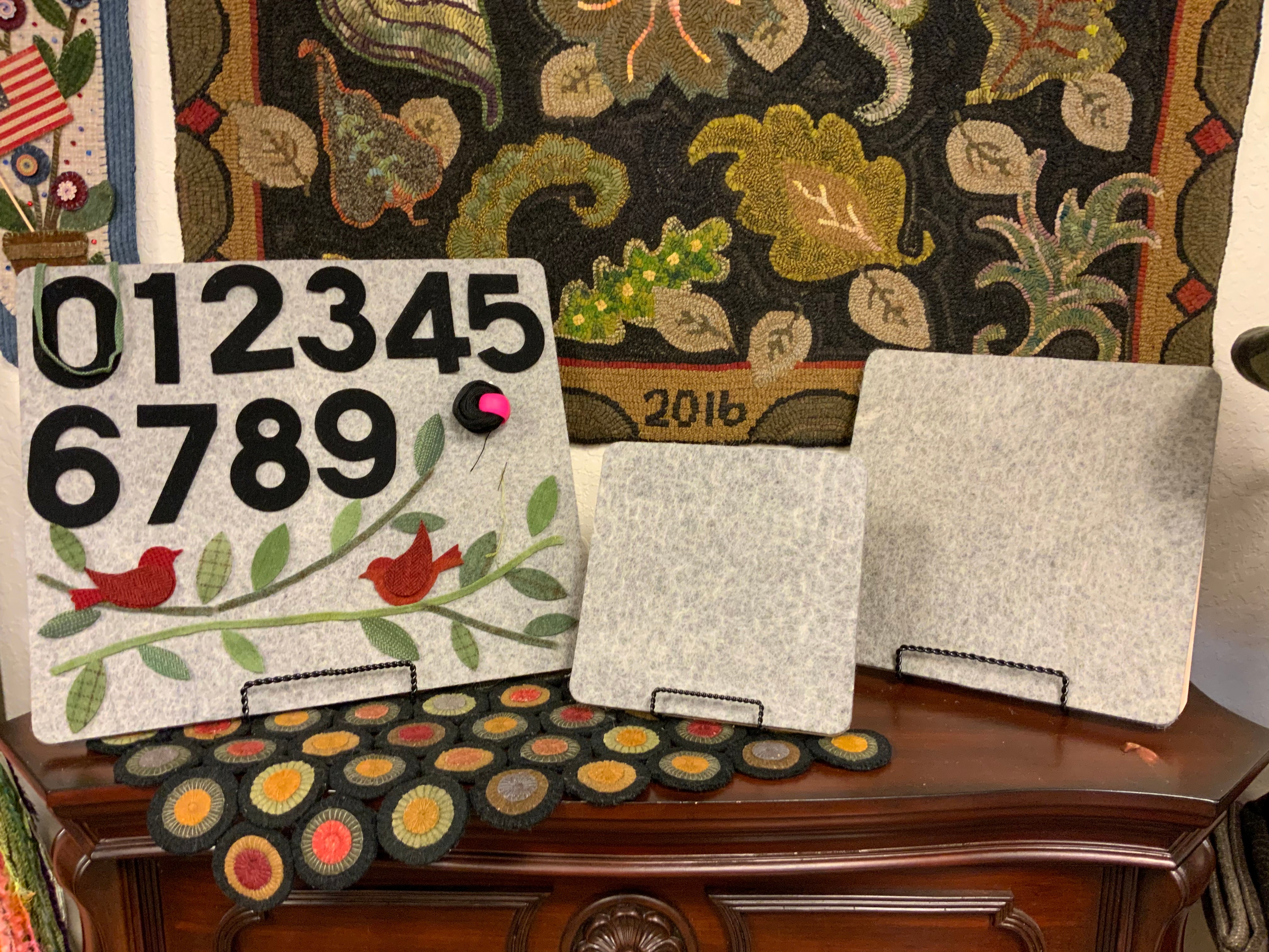 These mats are 100% wool and they create a perfect lay out surface for you wool appliqué and penny rugs. Birch backing adds stability and the nice twisted wire easel hold it slightly slanted to lay out and work from. Due to the adhesive and the wood backing these are NOT intended to be ironed on.