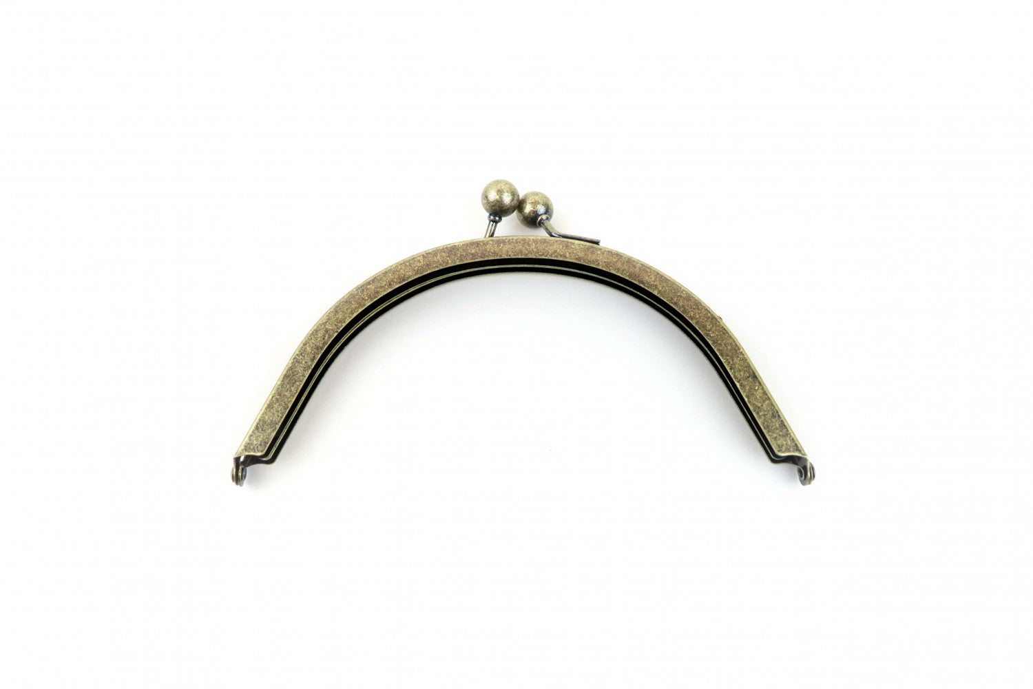 This arch shape purse frame features a large ball clasp with loops on each side of the frame for attaching a strap. This hardware measures 6in wide and 4in high. Simply glue your fabric inside the channel of the frame to attach. Use this purse frame for making clutch purses and wallets out of cotton, canvas, cork, vinyl and more!
