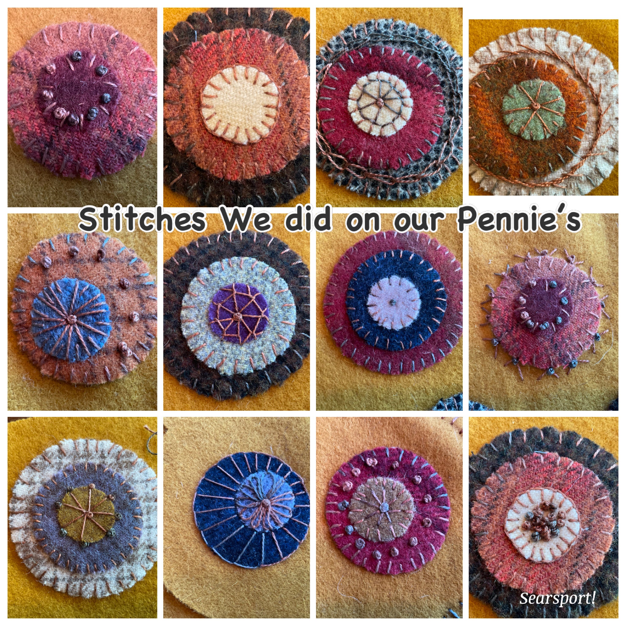 I did random stitches on my Pennie’s. Mostly French knots, whip stitch and blanket stitch.