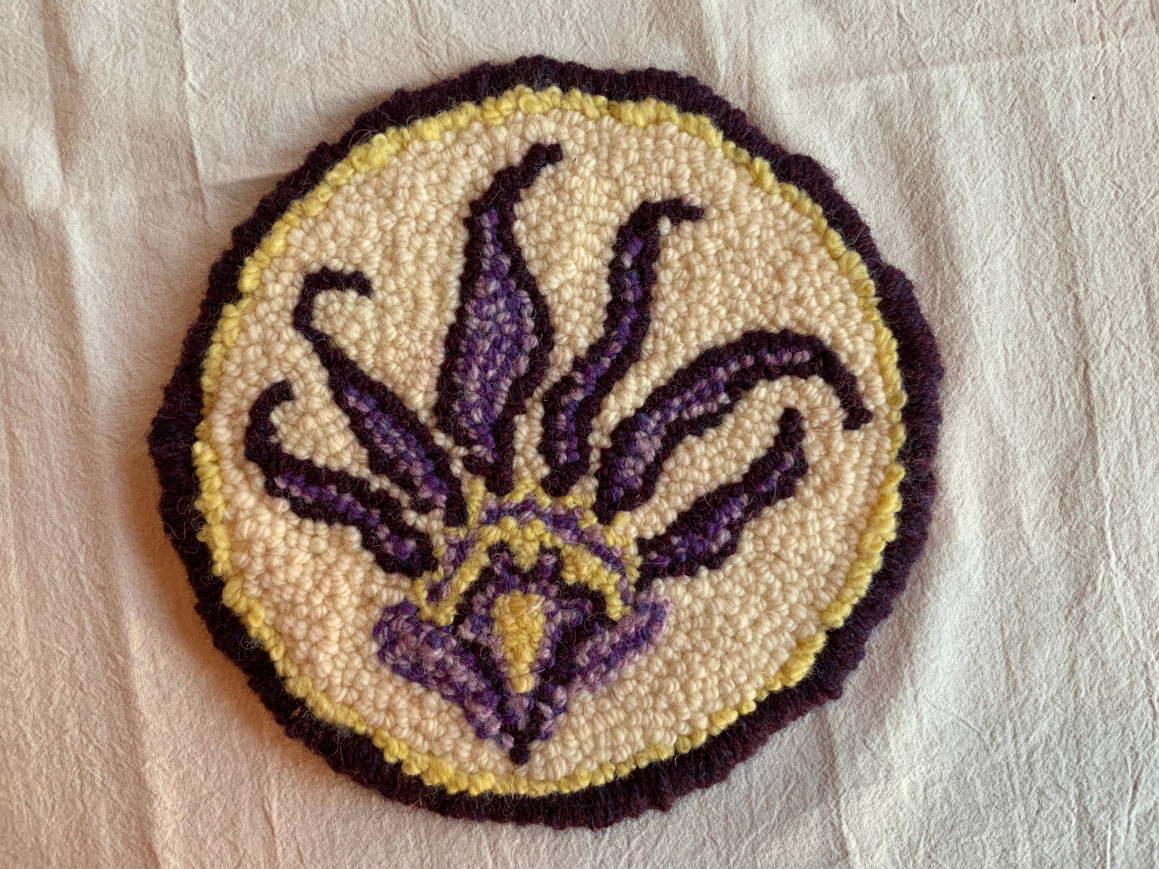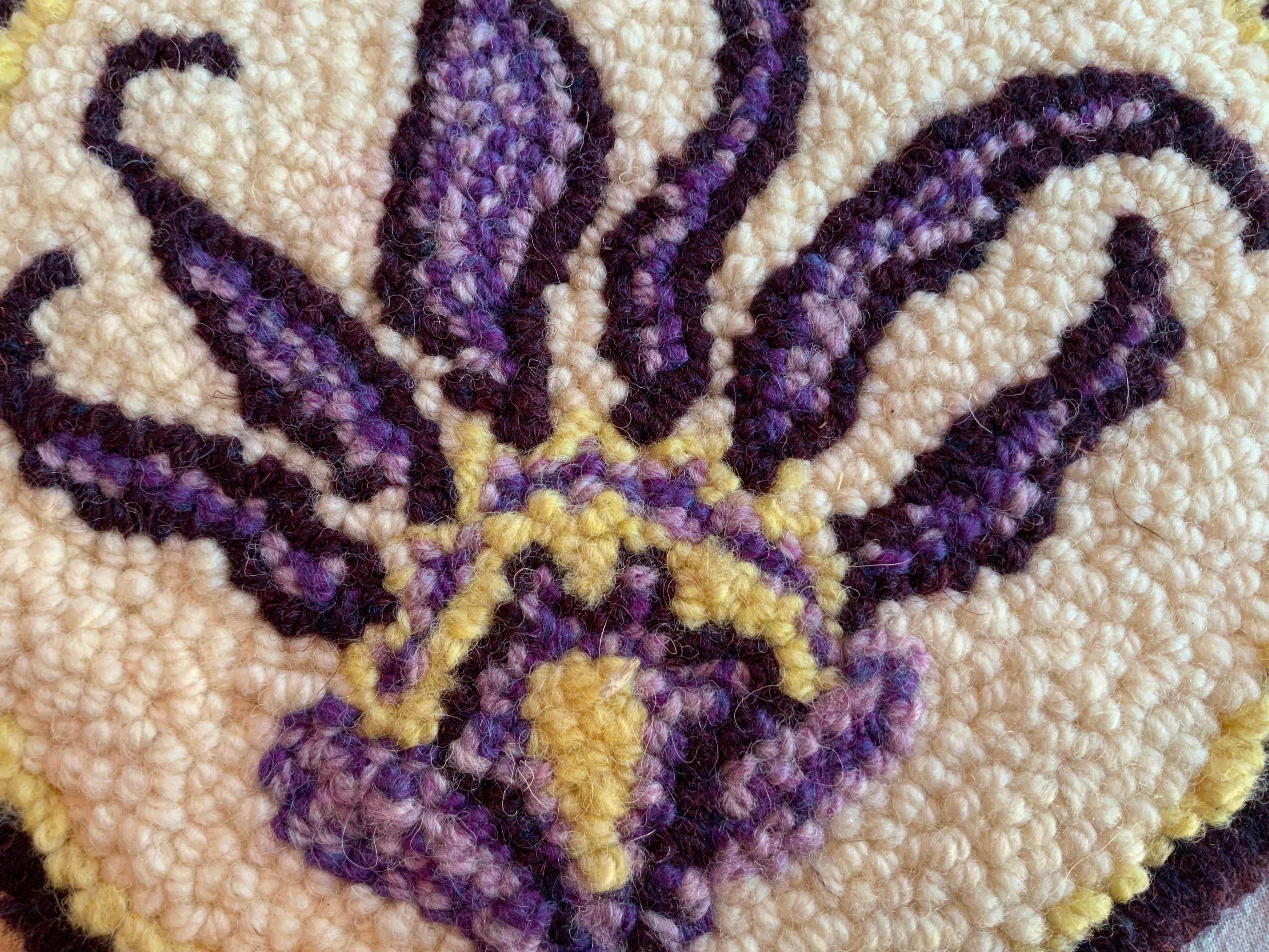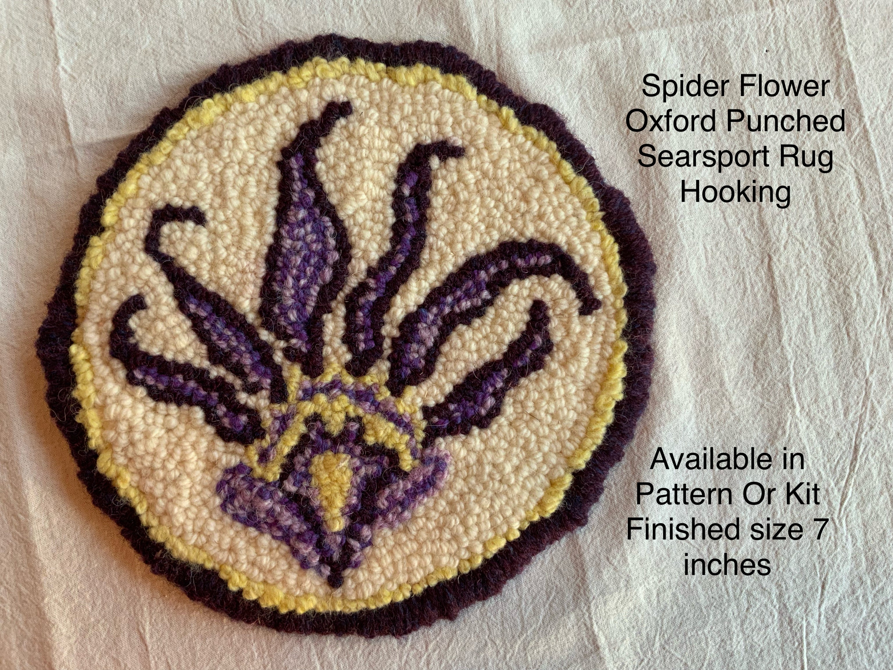 These sweet beginner kits are perfect to lean how to use the Oxford punch needle. It is a hand drawn pattern in a 7 inch circle on our monks cloth and you can order just the pattern to use your own yarns or wool strips or order the full kit with the yarn.