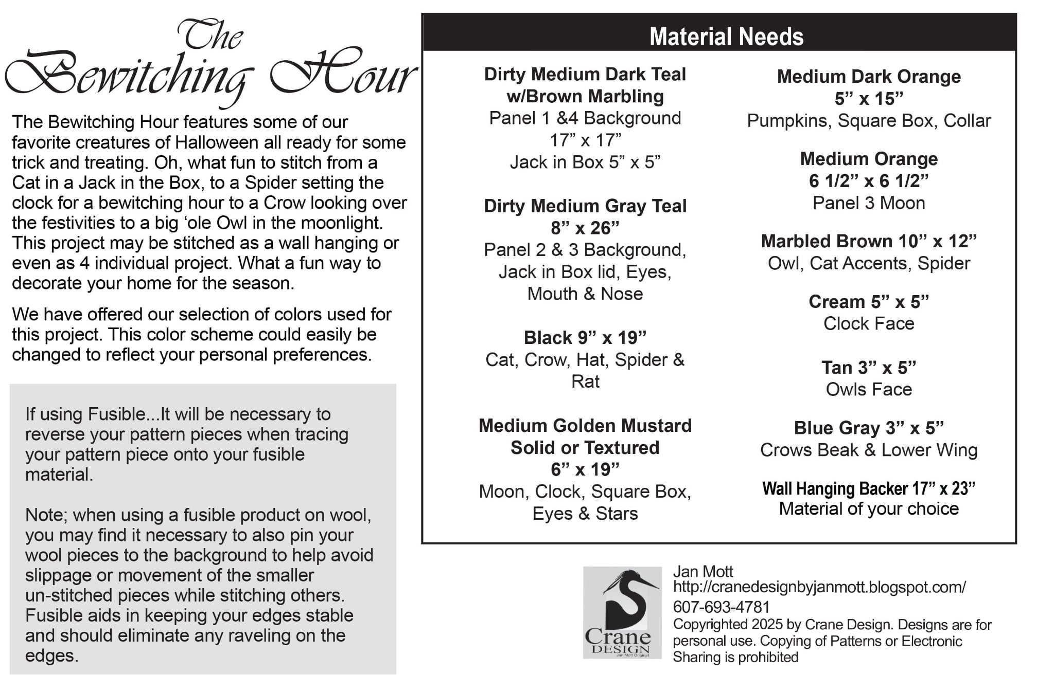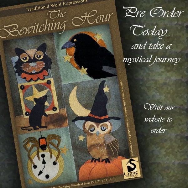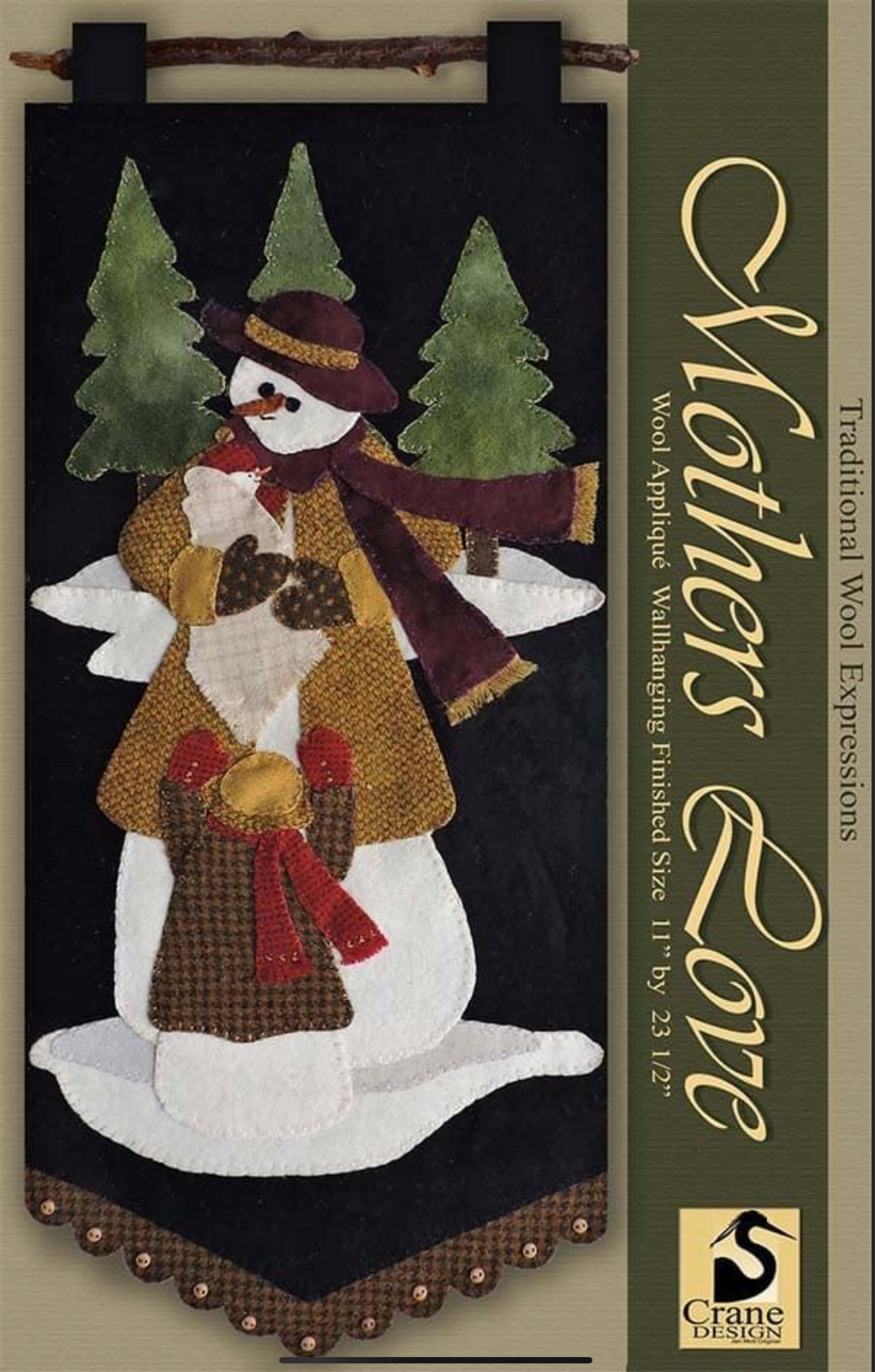 Crane Designs is one of our favorite designer in wool appliqué. Jan covers all seasons and themes with snowmen and birds being some of the best sellers. We are working on updating all the patterns to have wool kits to go with them. The kits do include the patterns. If there is not one list yet please contact us and we will work on getting then done up and listed. We offer the patterns, the wool pack only so if you already have the pattern and the thread packs using valdani #8 pearls cotton. If you do not see the options listed like this and need them just yell. We do not have them all updated yet :)