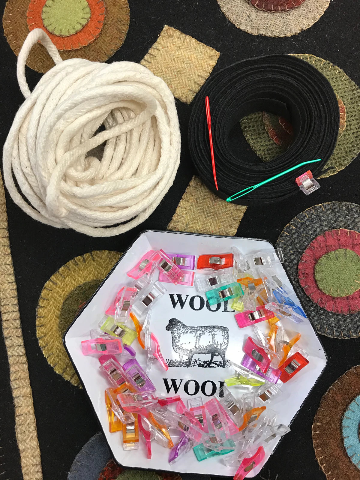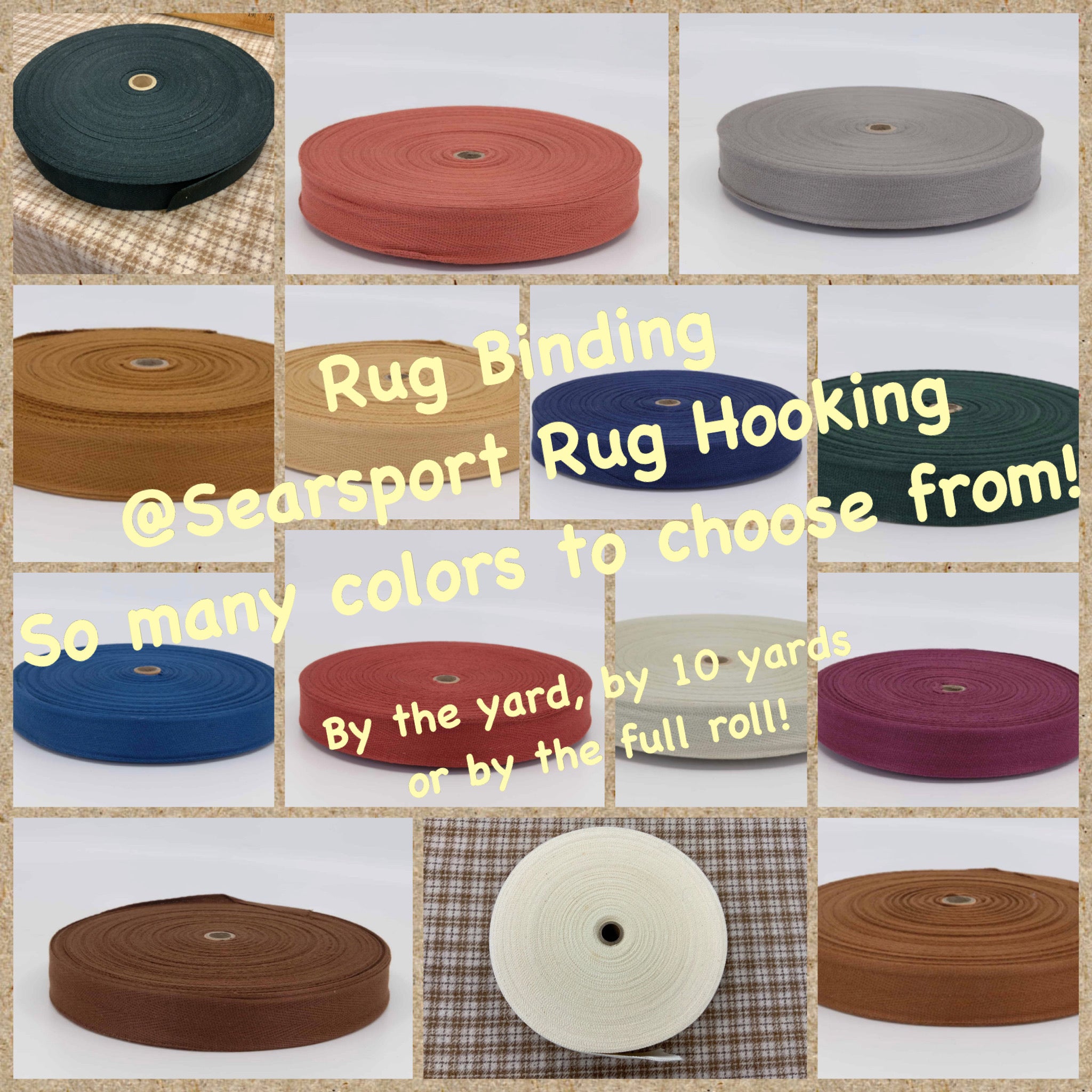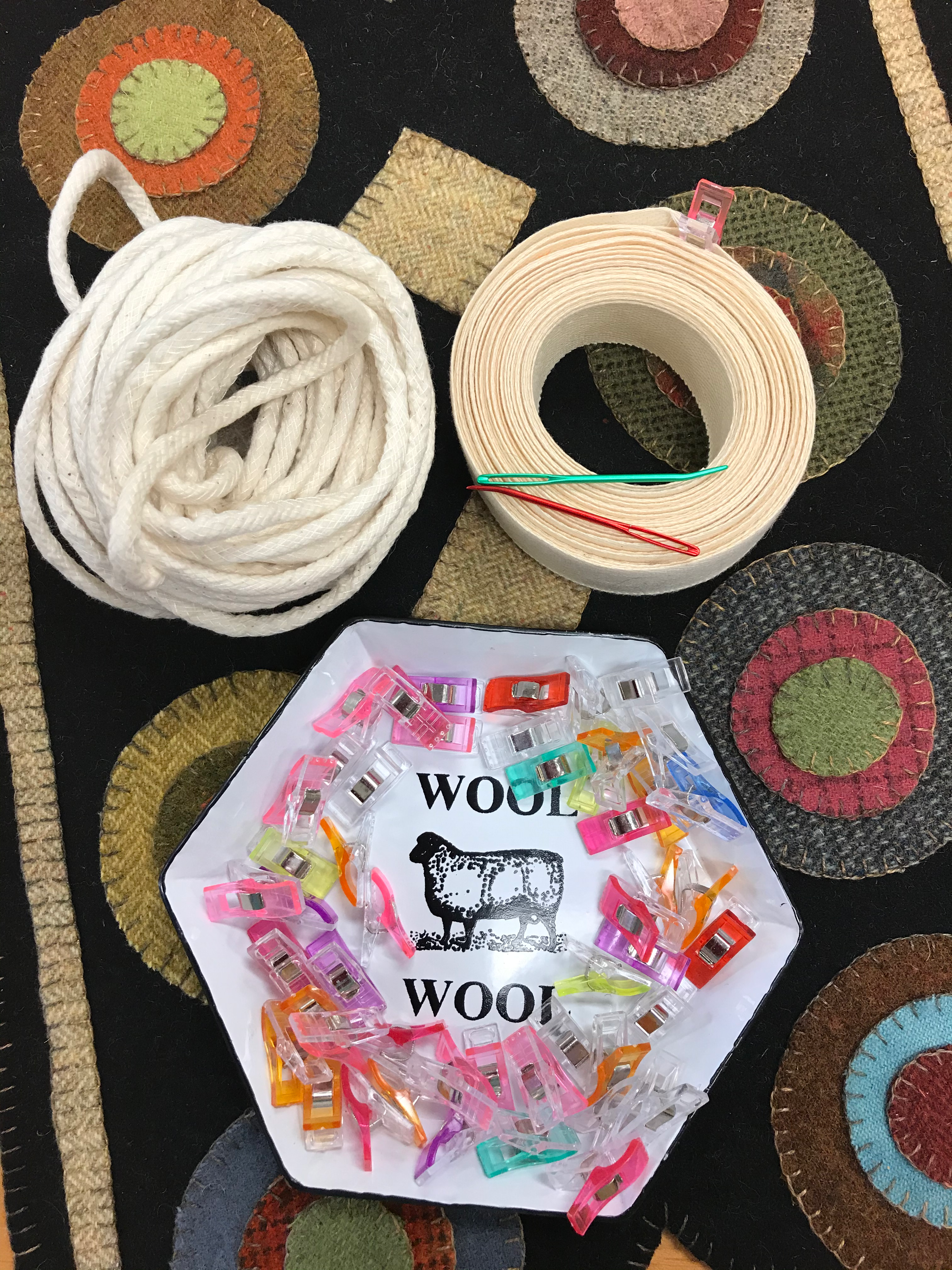 A collection of our favorite and most useful items for whipping, binding and finishing your hand hooked or punch rugs, pillows or wall hangings.