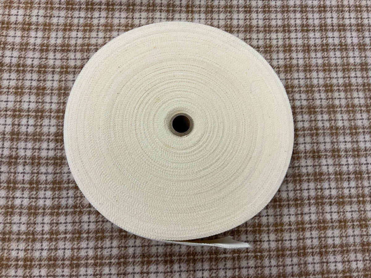 Cotton binding for binding off your rugs. This comes by the 72 yard roll. We stock cording also if you like to use that for a fatter edge. The binding is 1.25 in wide, and is softer because it’s pre washed and no sizing!