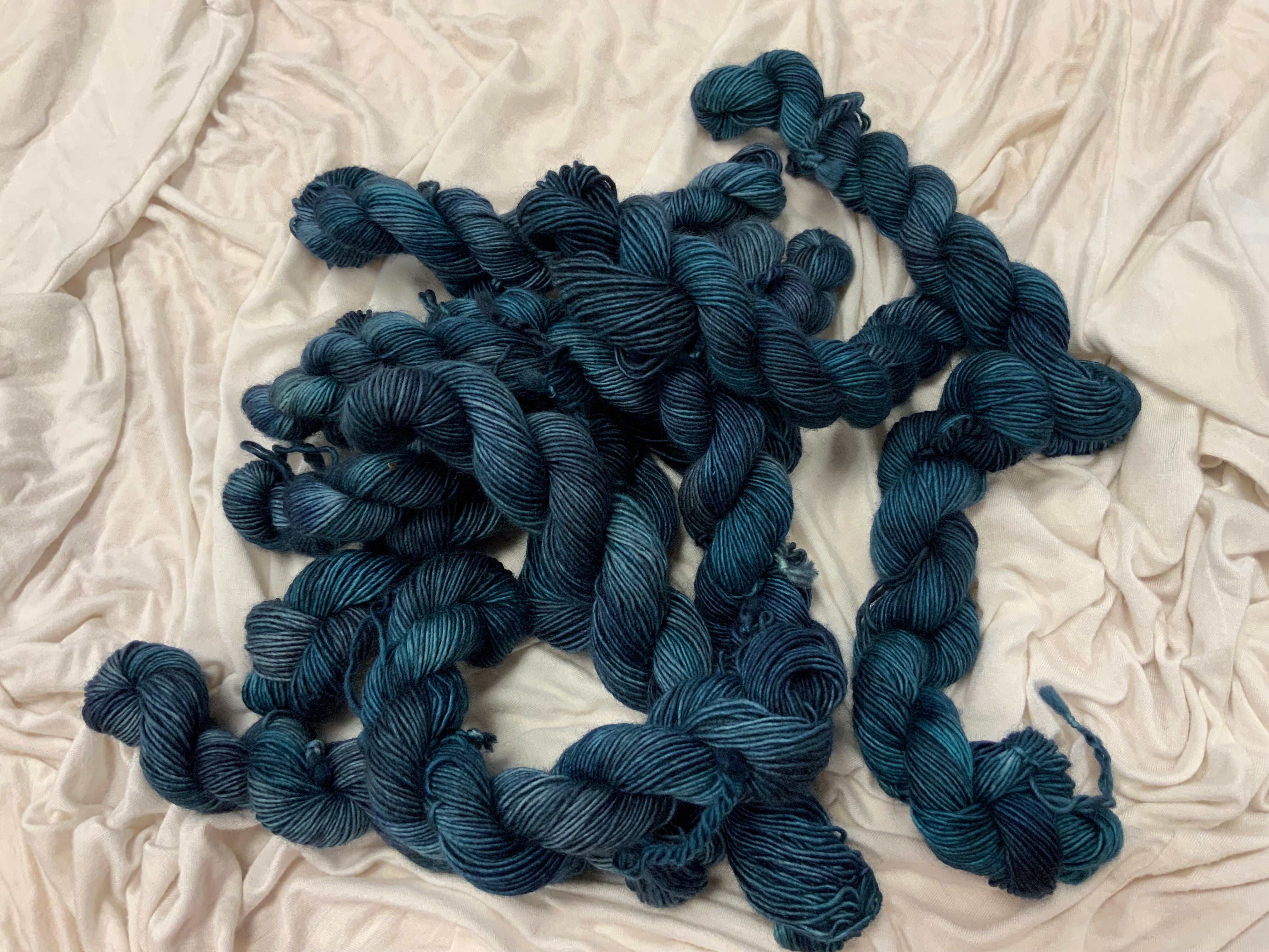 Hand dyed merino yarns by us! Supplies are limited for each color and will change by dye lots. Please make sure you order enough as matching these are very difficult.