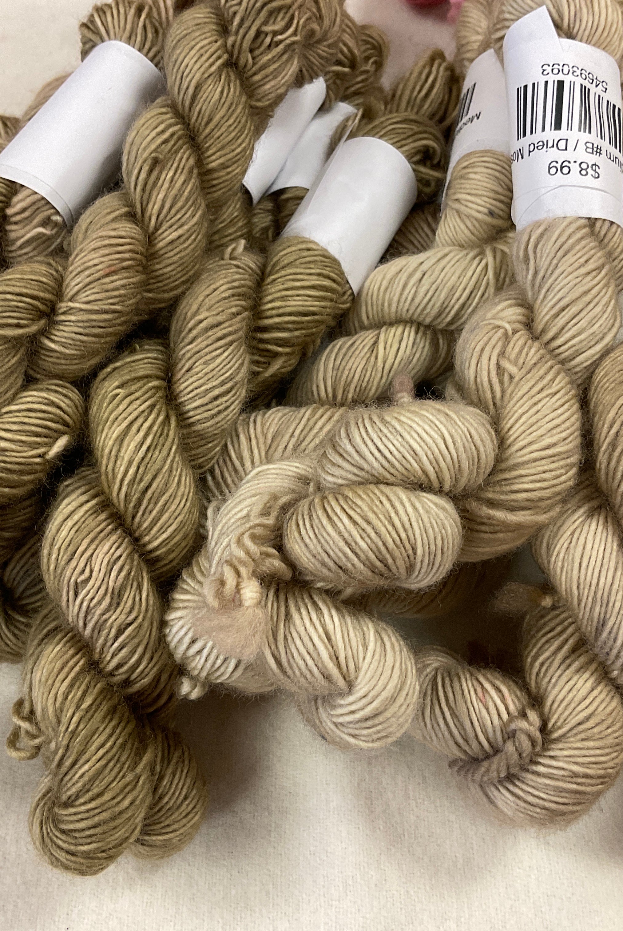 Threads… or fine yarn…. We love this for mini punch projects using the Ultra Punch needle with the medium needle on #3 or #4 setting. Your loops bloom and form and look like miniature punching with yarn! Many of our mini punch samples are punched using this thread. Its soft hand and slight sheen make it a beautiful fiber to work with on any punching or stitching project! And if your a cross stitch lover try this using our our natural rug hooking linen for your backing! It’s pretty amazing!