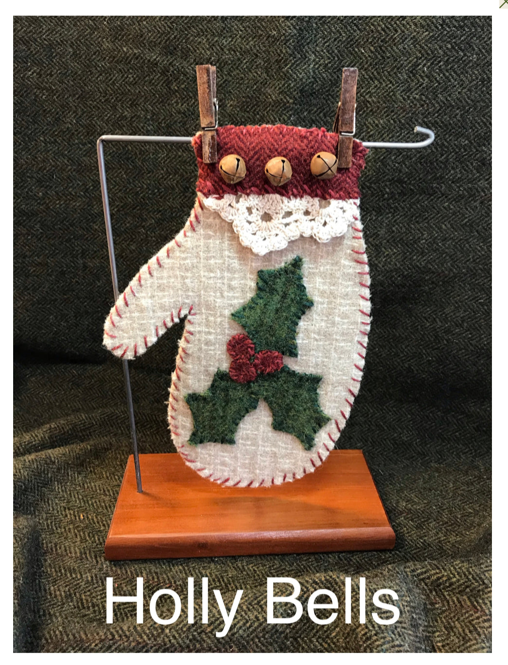 Another mitten to add to your collection! You can add dowel hangers or a stand if you need them. Kit includes everything you need to stitch it as shown. All the pre cut wool, thread, glass beads, bells and embellishments.