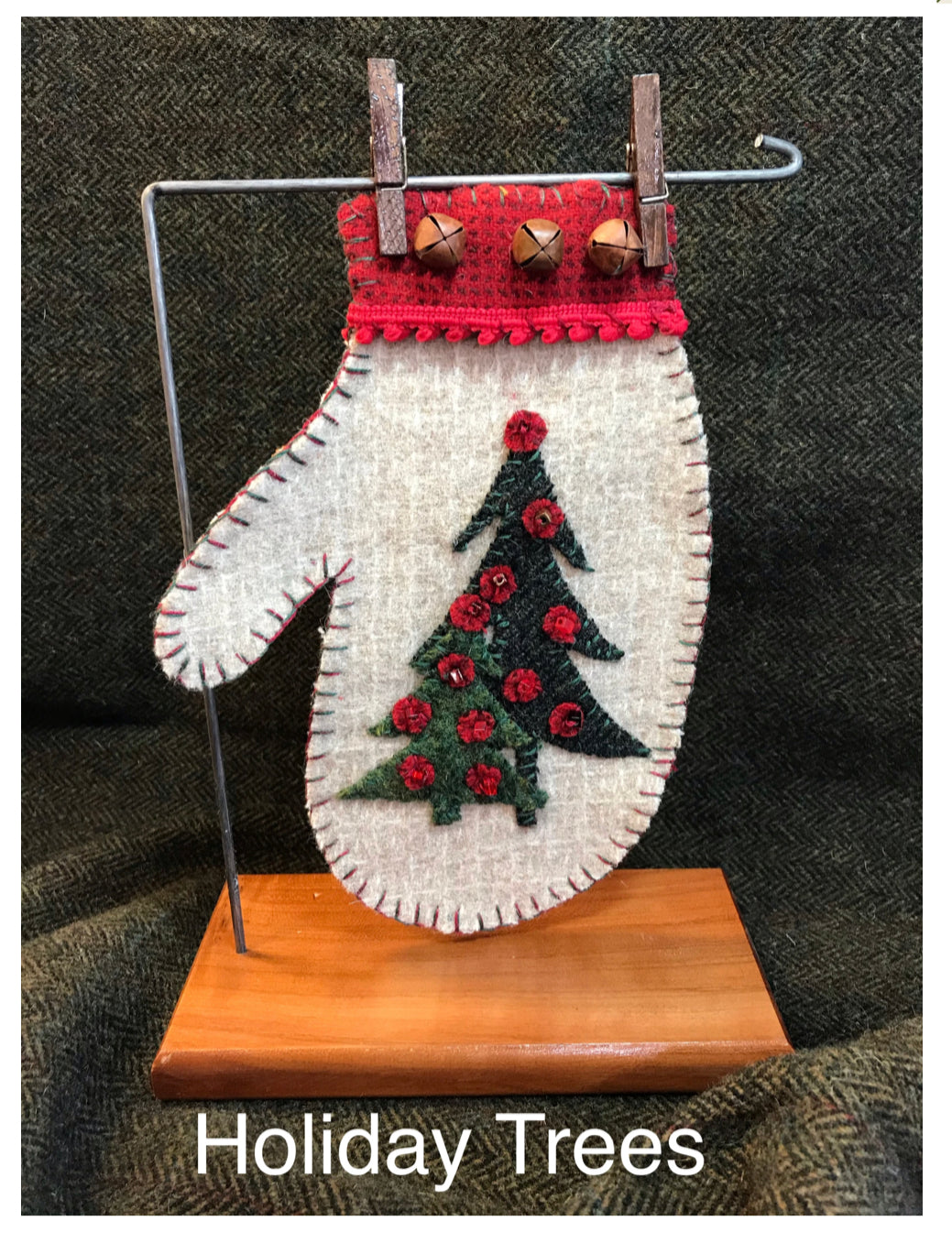 Another mitten to add to your collection! You can add dowel hangers or a stand if you need them. Kit includes everything you need to stitch it as shown. All the pre cut wool, thread, glass beads, bells and embellishments.