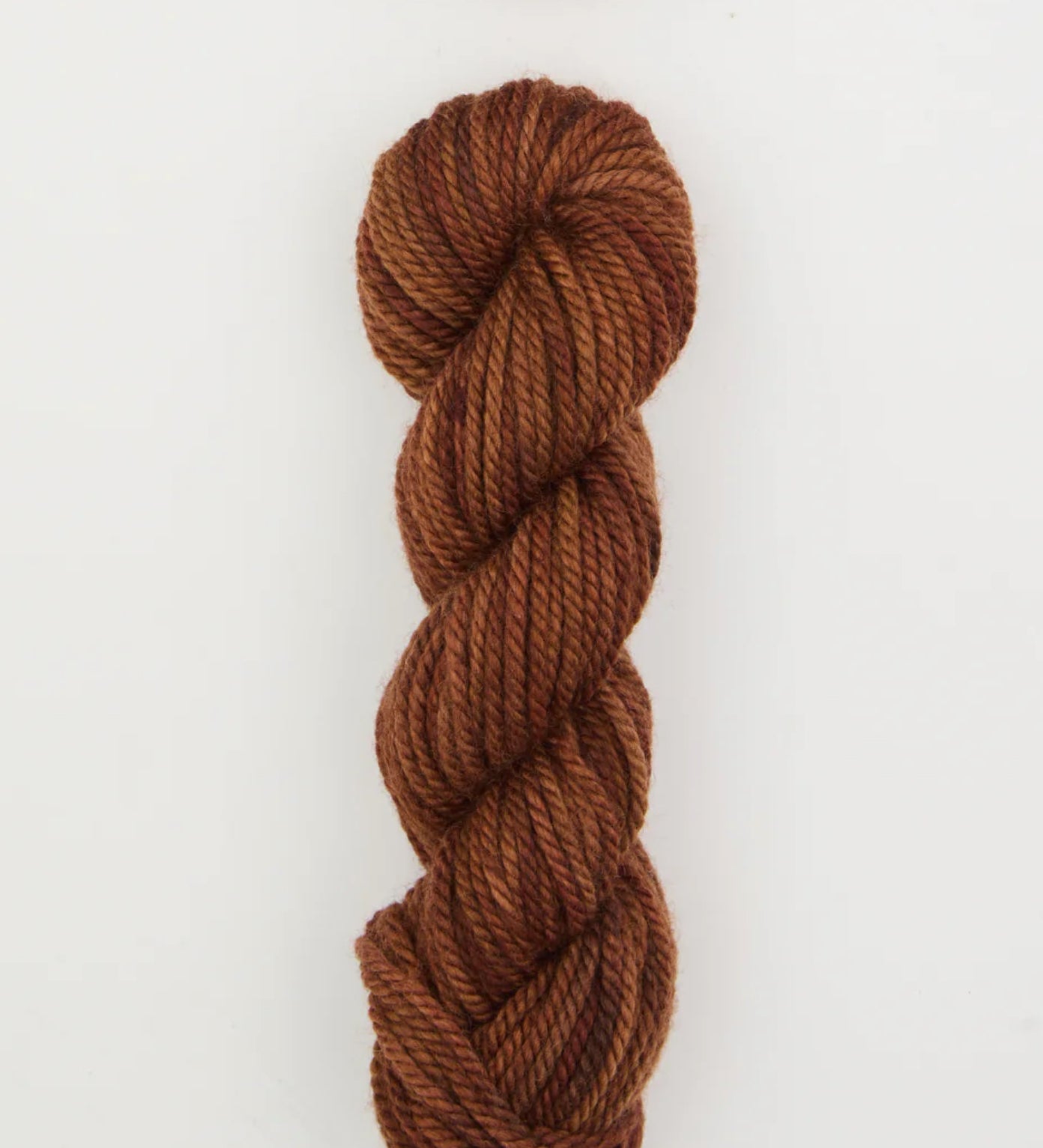 A rich deep caramel color with flecks of dark coffee colors reminiscent of the sturdy oxford brown shoe. Sturdy Brown is a single-color variegated color with subtle shifts in color.