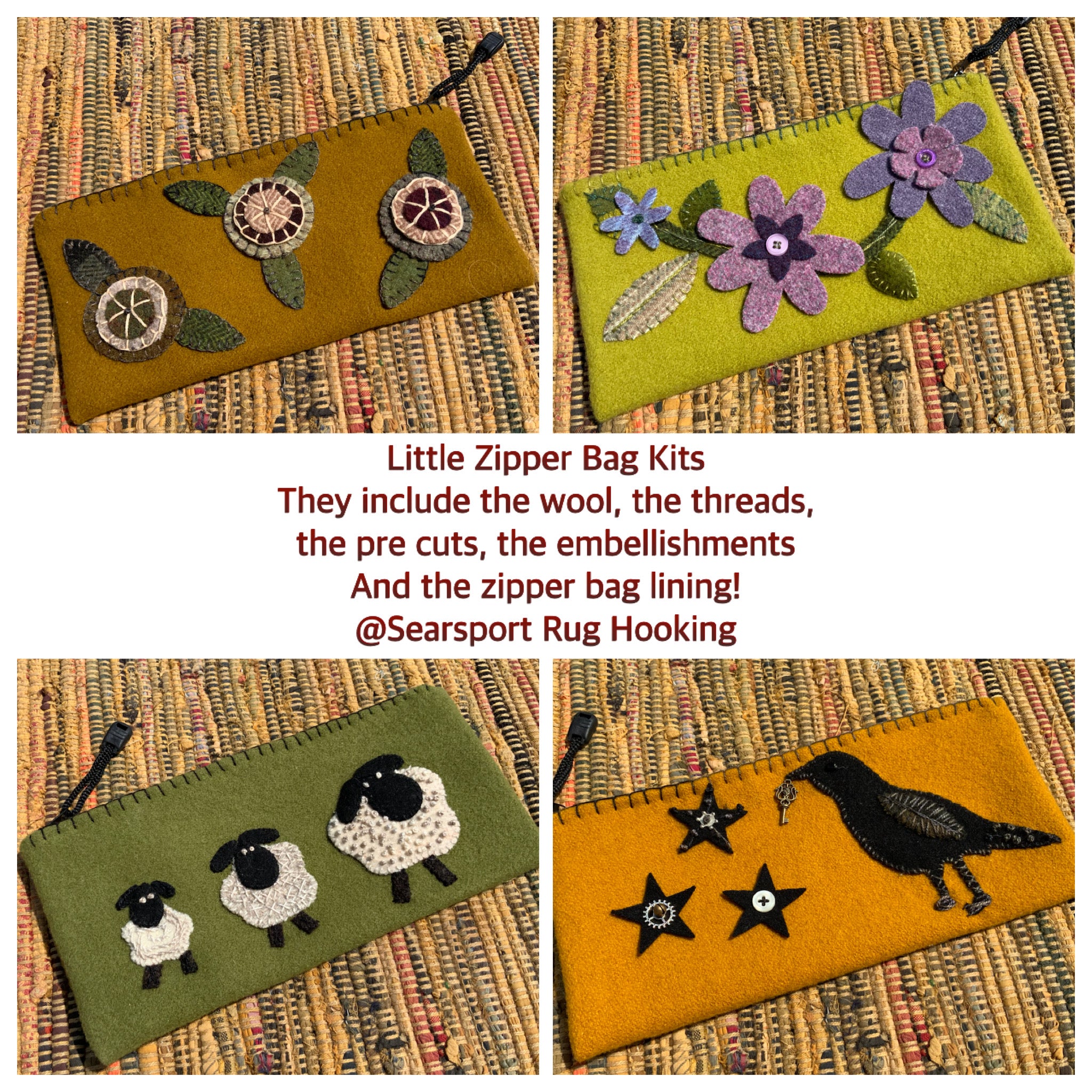 We have the DIY supplies and the basic kit. Then we have these complete kits. They come with the instructions, zipper bag, the wool cover, the pre cuts, beads and embellishments.
