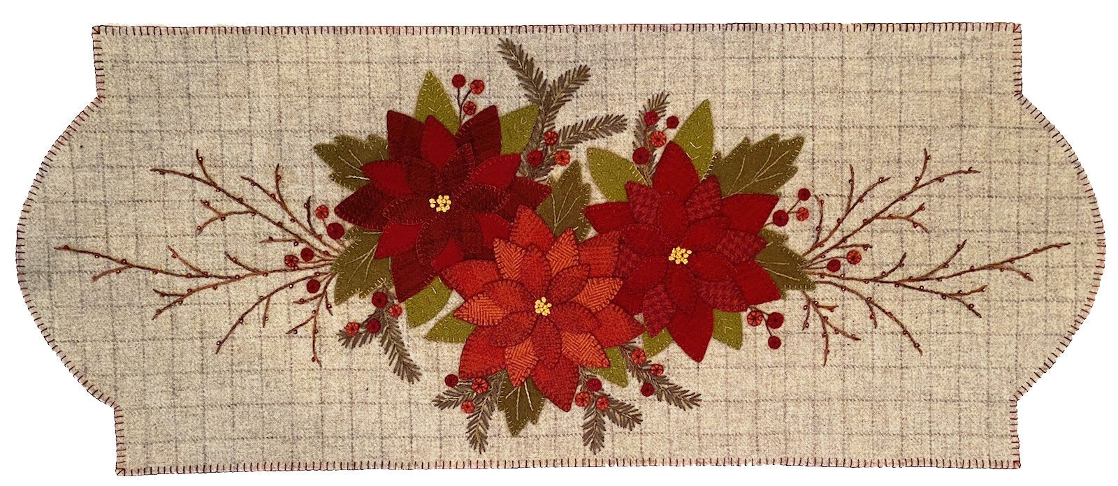 This has to be one of our most popular, early ordering pattern for holiday stitching! You can order just the pattern and use your own wool or order a beautiful kits which come two ways. Choose the light gray background like the sample with the rich red flowers or with striking white flowers on a black background.