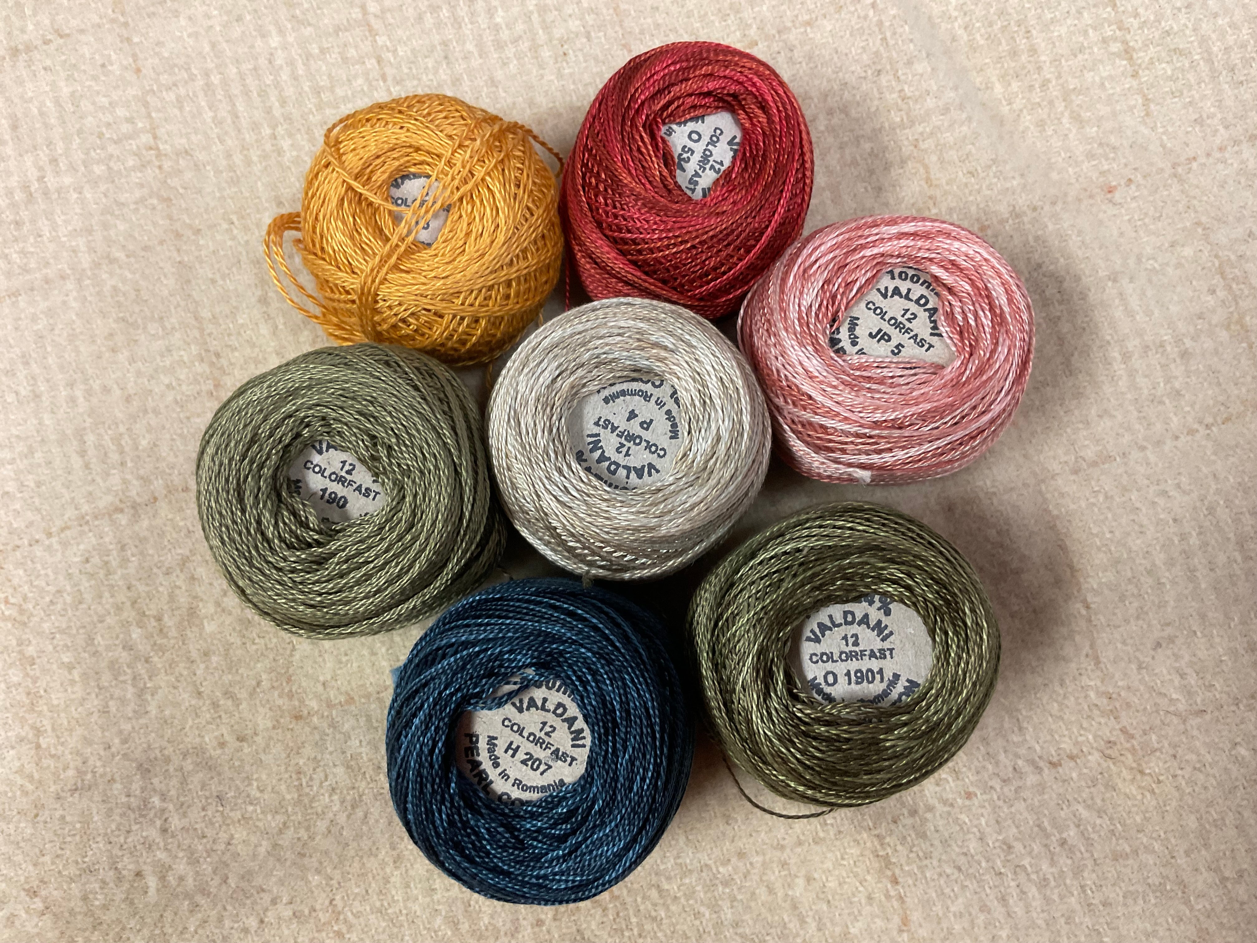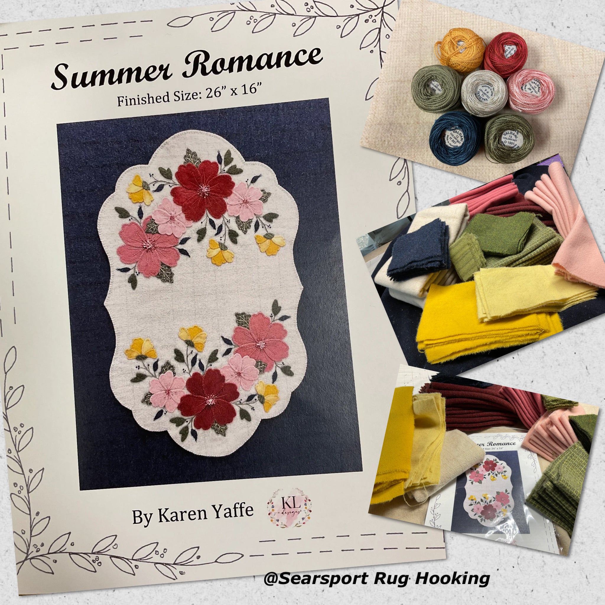 Finished size is 16x26 What a pretty spring statement with this beautiful design by Karen! Soft, buttery, cream background with yellows and rose colored wools and only the best with valdani threads to stitch it with!