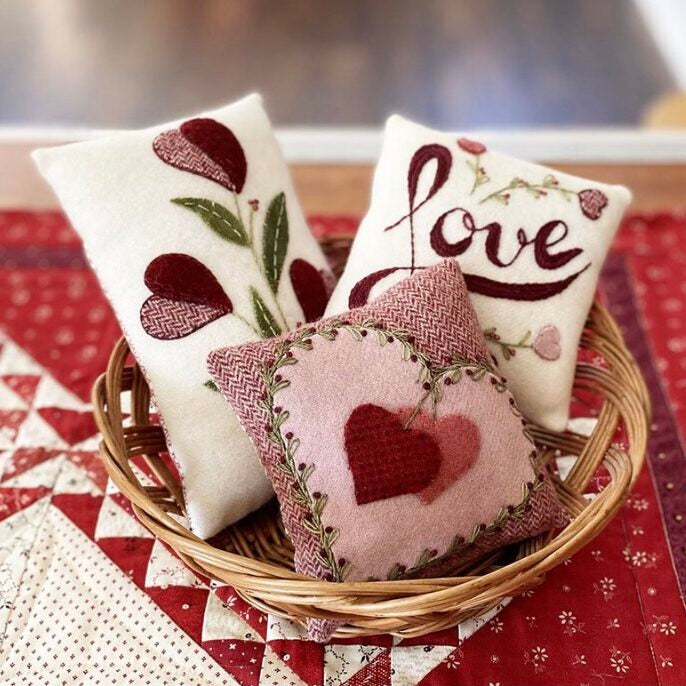 Kit includes printed copy of pattern plus all fabric and wool needed for top and back of pillows