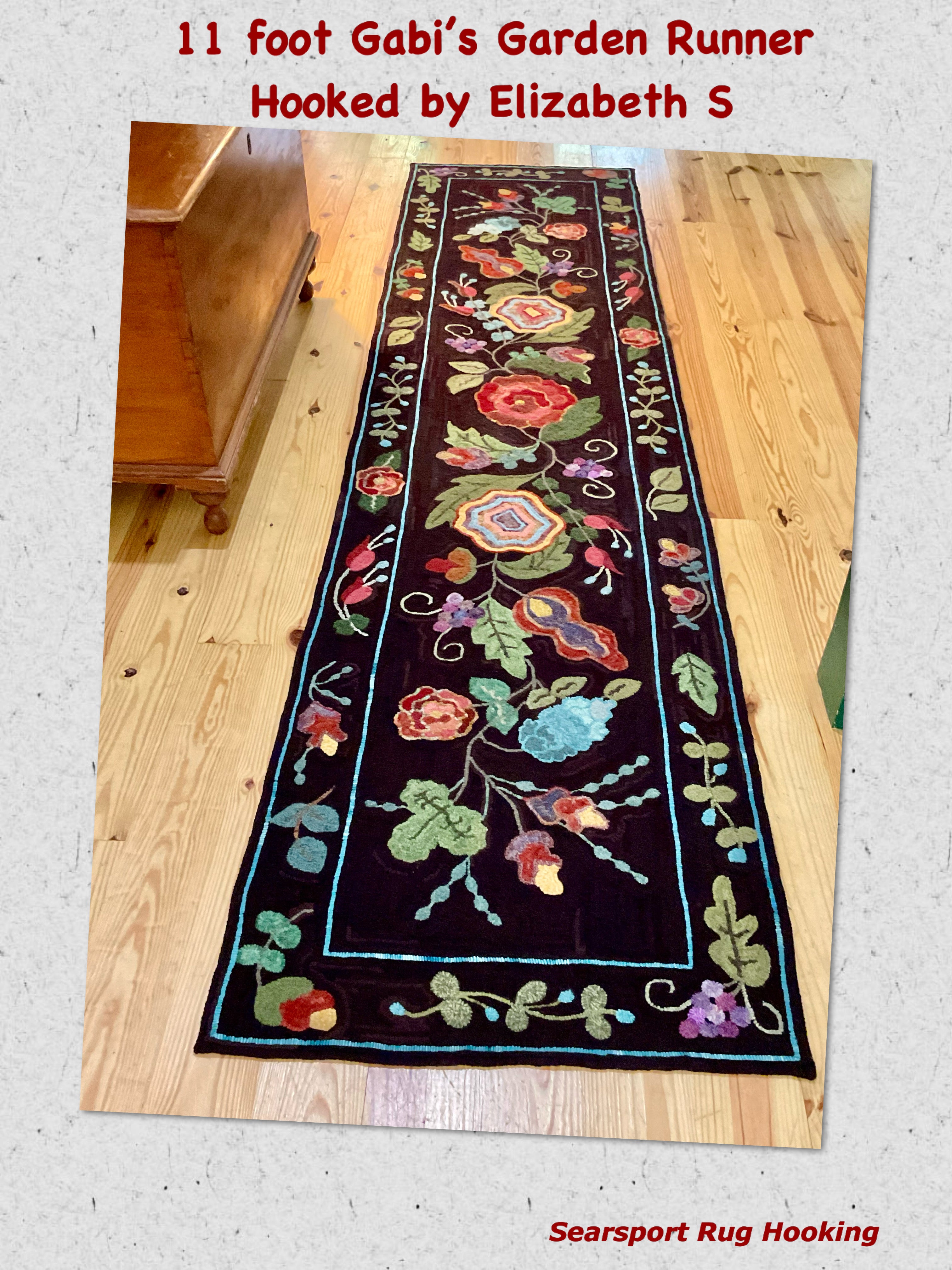 Thank you Elizabeth S for the picture of your incredible rug. She hooked this is 5 months! It’s 11 feet long!