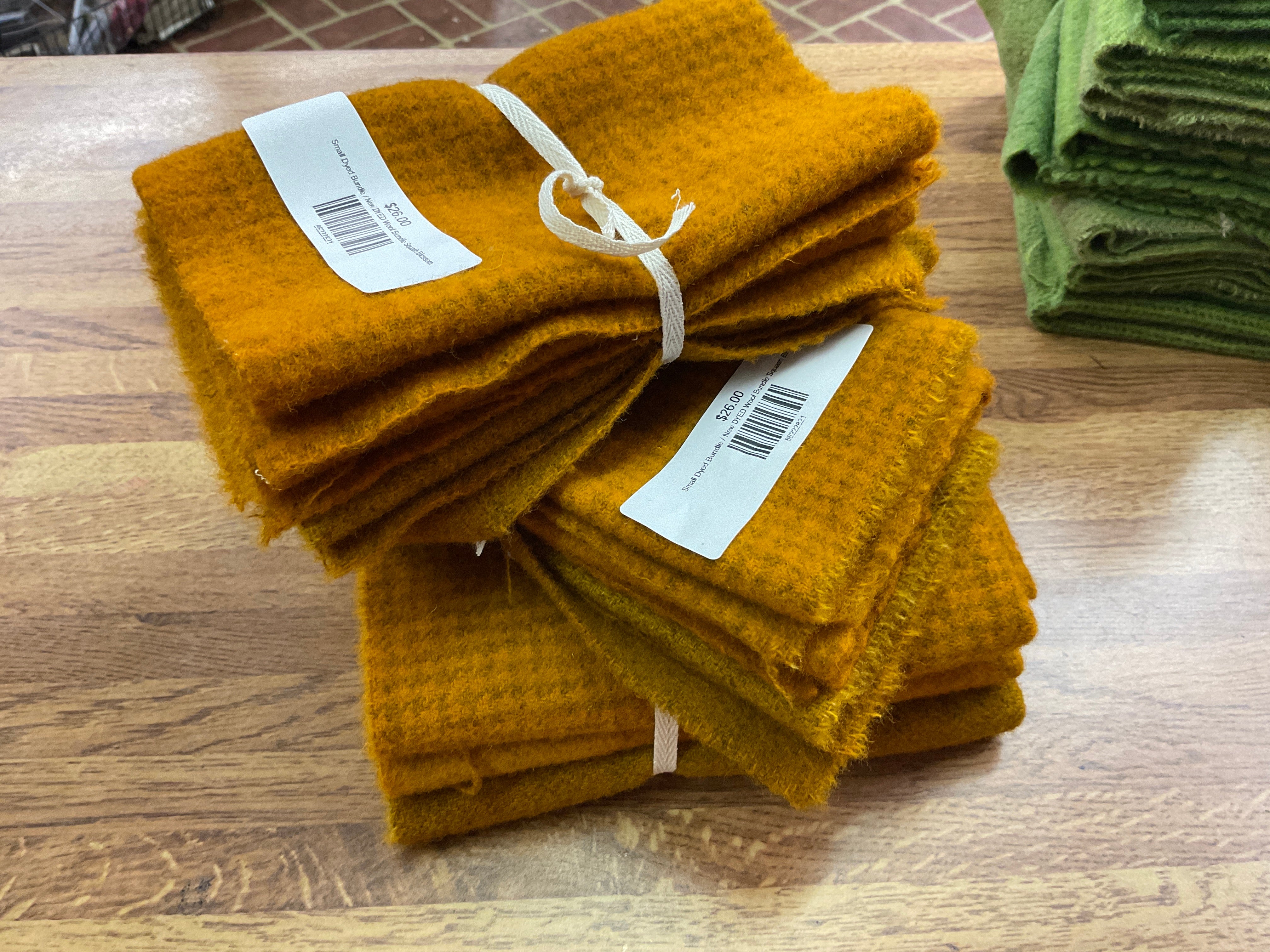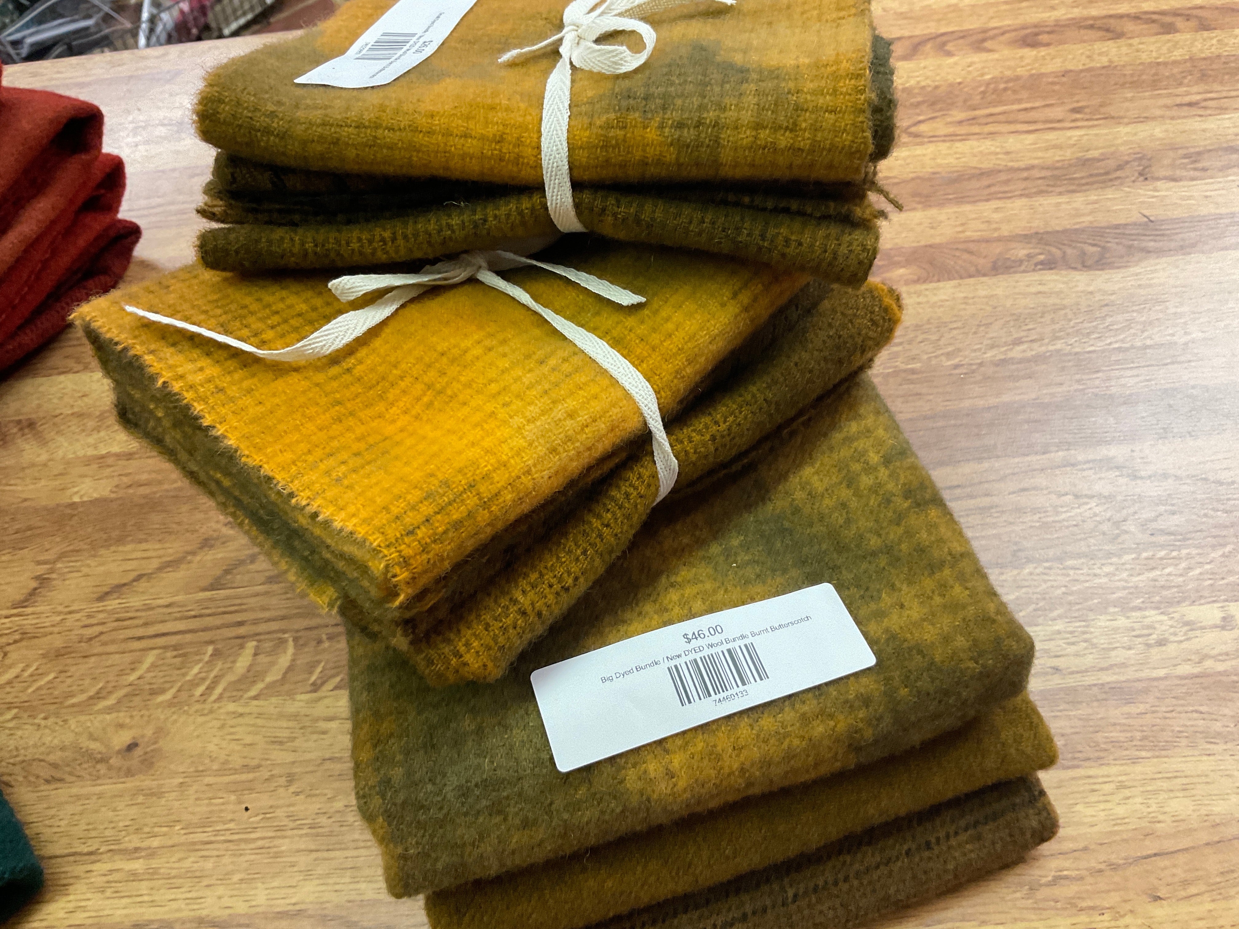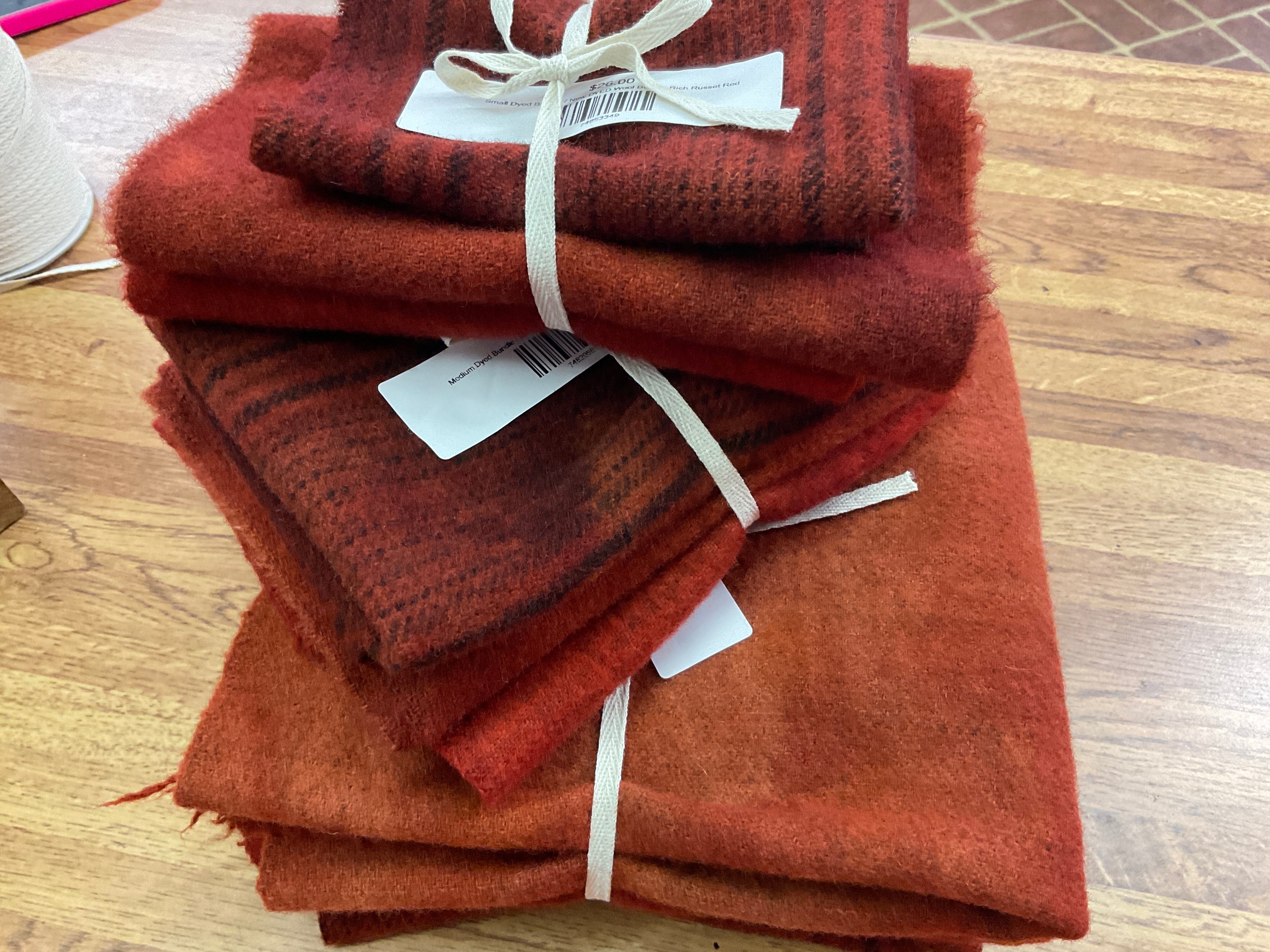These bundles are all washed and either 3 fat quarters, 3 fat 1/8’s or 3 fat 1/16 of wool. They are great for applique projects and rug hookers to build a well-stocked stash or try a color combo! We have many ways to buy our wonderful wool. Small pieces or large we can fill your needs for rug hooking, quilting, appliqué or penny rug work. Our bundles are our most popular item for wool! Don't see what you need? Just ask! We probably have it!