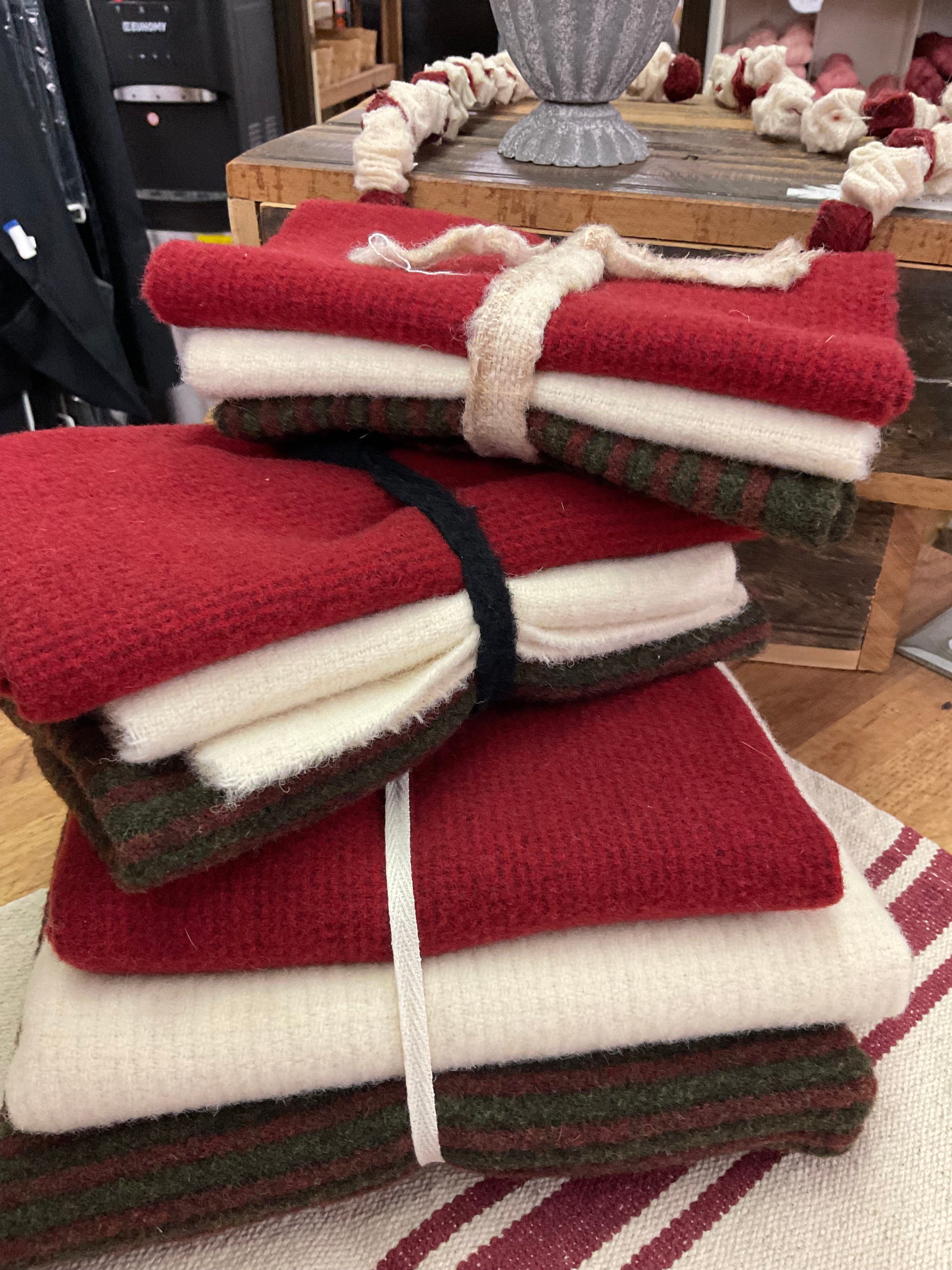 The big bundle is 3 fat quarters, that’s 3/4 of a yard of wool total! Perfect for rug hookers! Pre washing they measure 18x30 and all textures and weaves full differently but expect roughly 16-17x28-29 inches after washing.