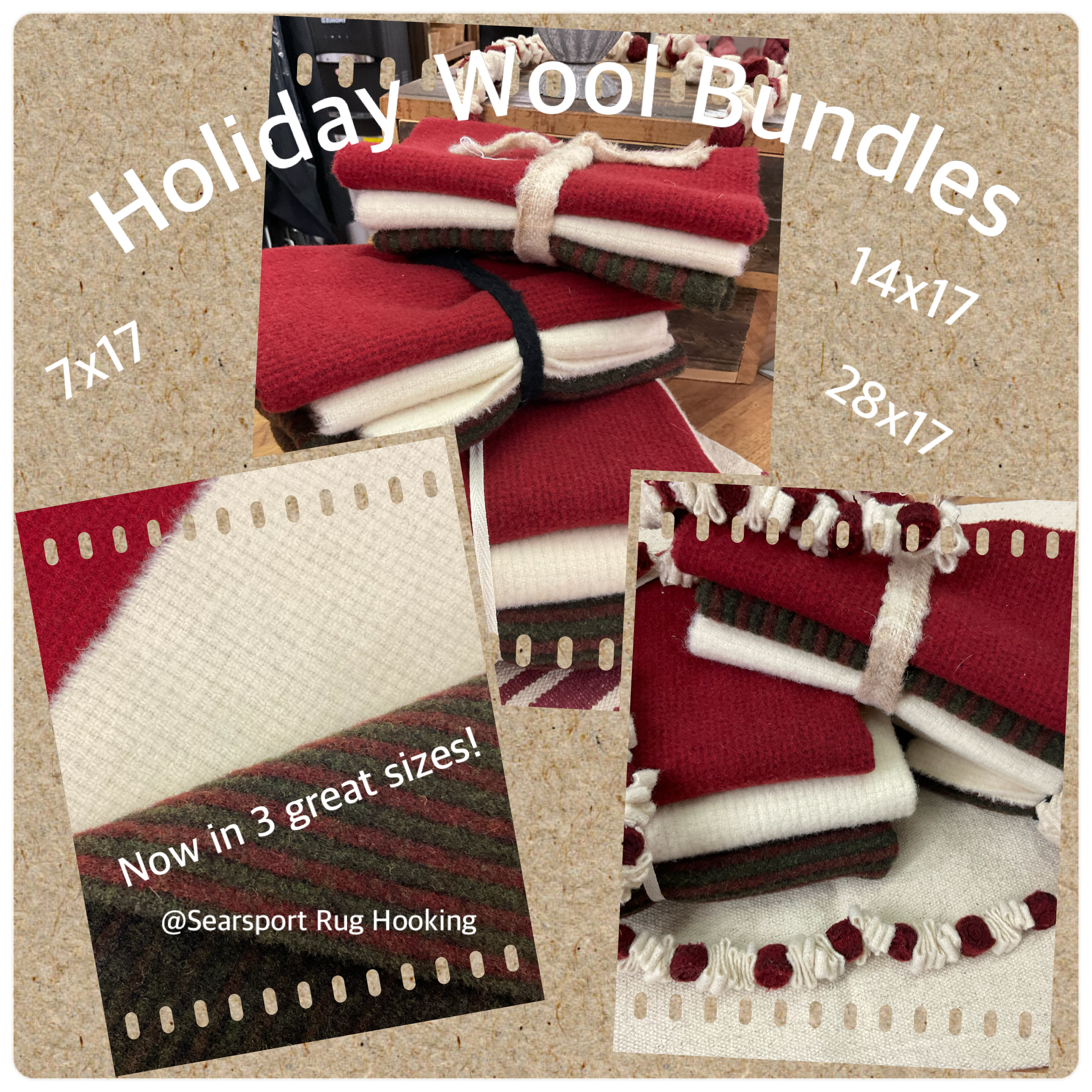 These bundles are fat, warm, 100% wool, washed and fulled and ready to create with! Perfect for any rug hooking, appliqué, stitching or any kind of sewing, that you want to use the very best wool, this is it! We have grouped three of our top selling textures by color, washed them to full and soften them, then into the dryer so they are ready for you to create with!
