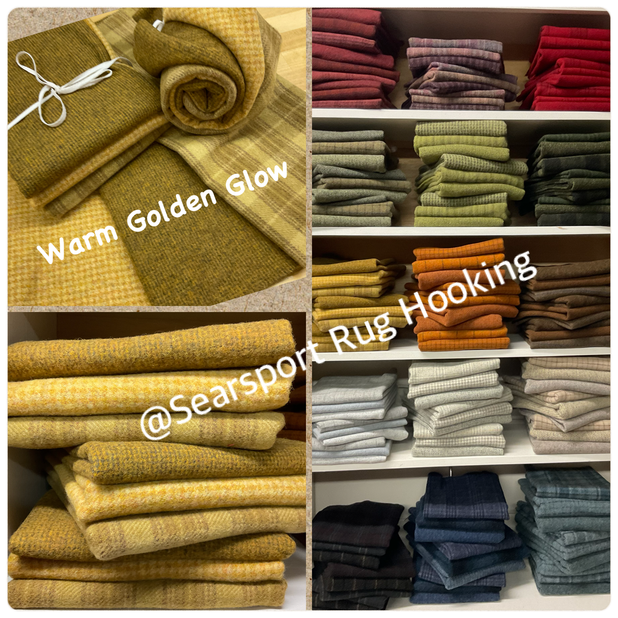 These bundles are fat, warm, 100% wool, washed and fulled and ready to create with! Perfect for any rug hooking, appliqué, stitching or any kind of sewing, that you want to use the very best wool, this is it! We have grouped three of our top selling textures by color, washed them to full and soften them, then into the dryer so they are ready for you to create with!