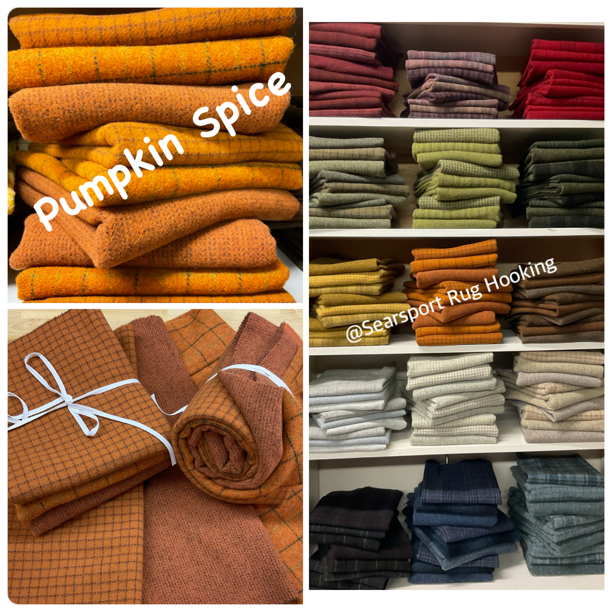 These bundles are fat, warm, 100% wool, washed and fulled and ready to create with! Perfect for any rug hooking, appliqué, stitching or any kind of sewing, that you want to use the very best wool, this is it!  We have grouped three of our top selling textures by color, washed them to full and soften them, then into the dryer so they are ready for you to create with!