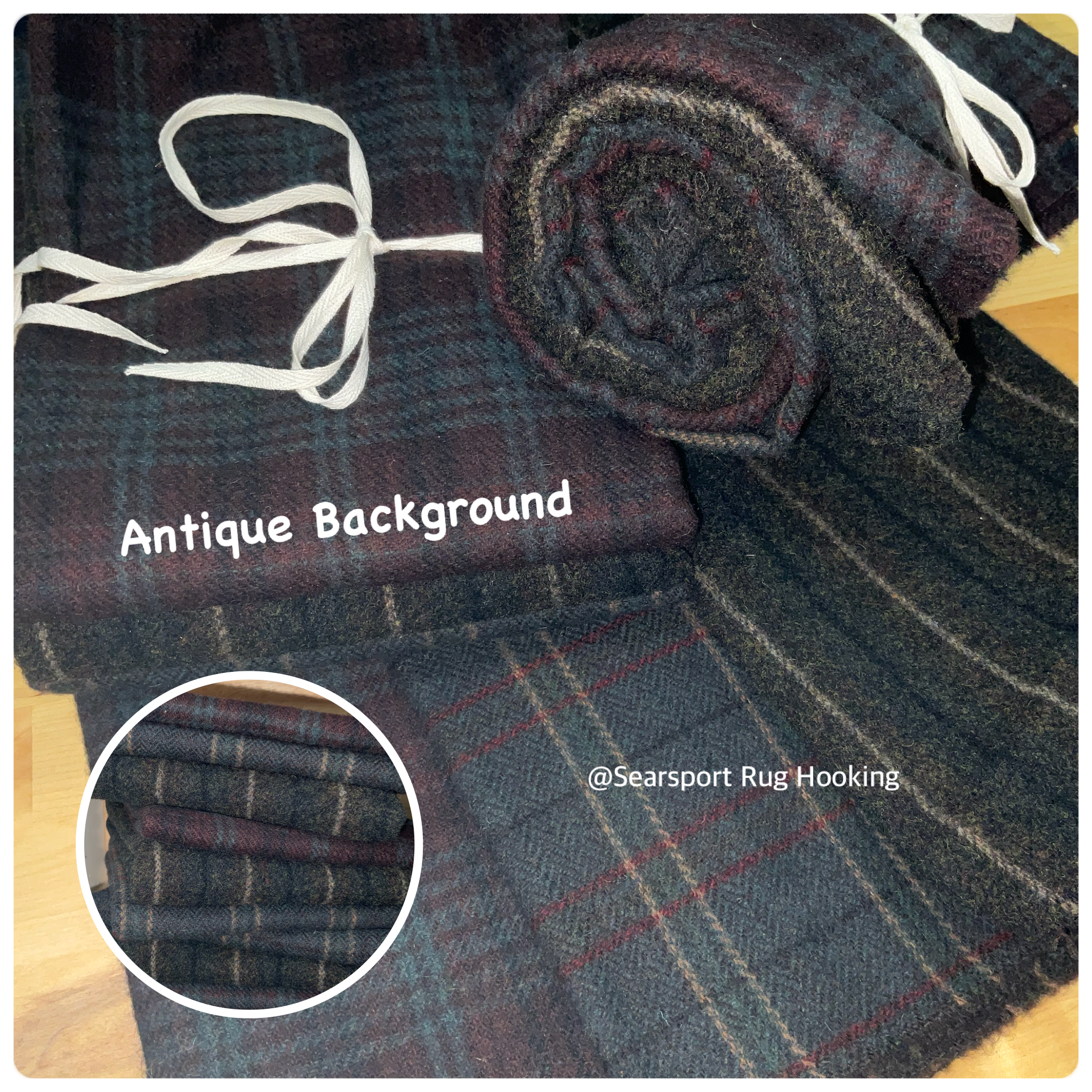 The big bundle is 3 fat quarters, that’s 3/4 of a yard of wool total! Perfect for rug hookers! Pre washing they measure 18x30 and all textures and weaves full differently but expect roughly 16-17x28-29 inches after washing.