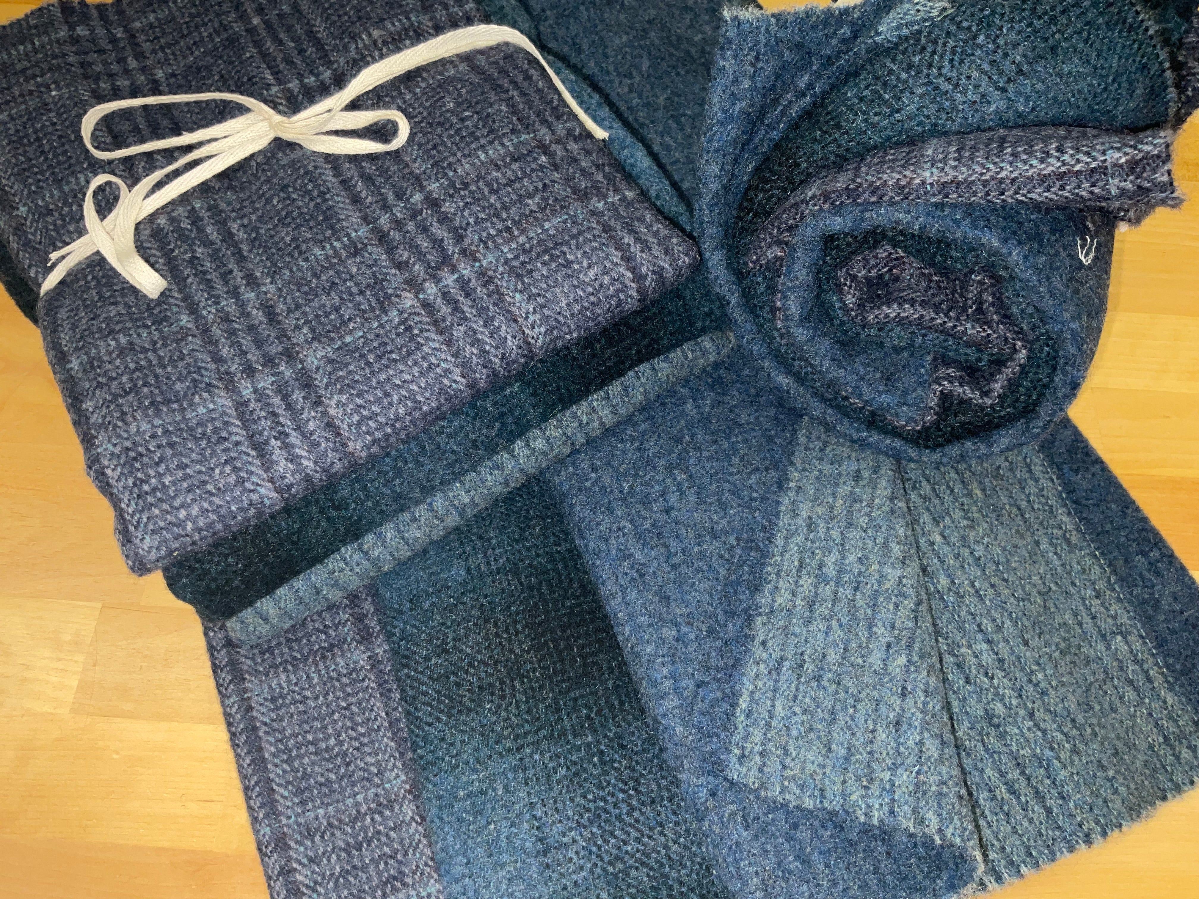 The big bundle is 3 fat quarters, that’s 3/4 of a yard of wool total! Perfect for rug hookers! Pre washing they measure 18x30 and all textures and weaves full differently but expect roughly 16-17x28-29 inches after washing.