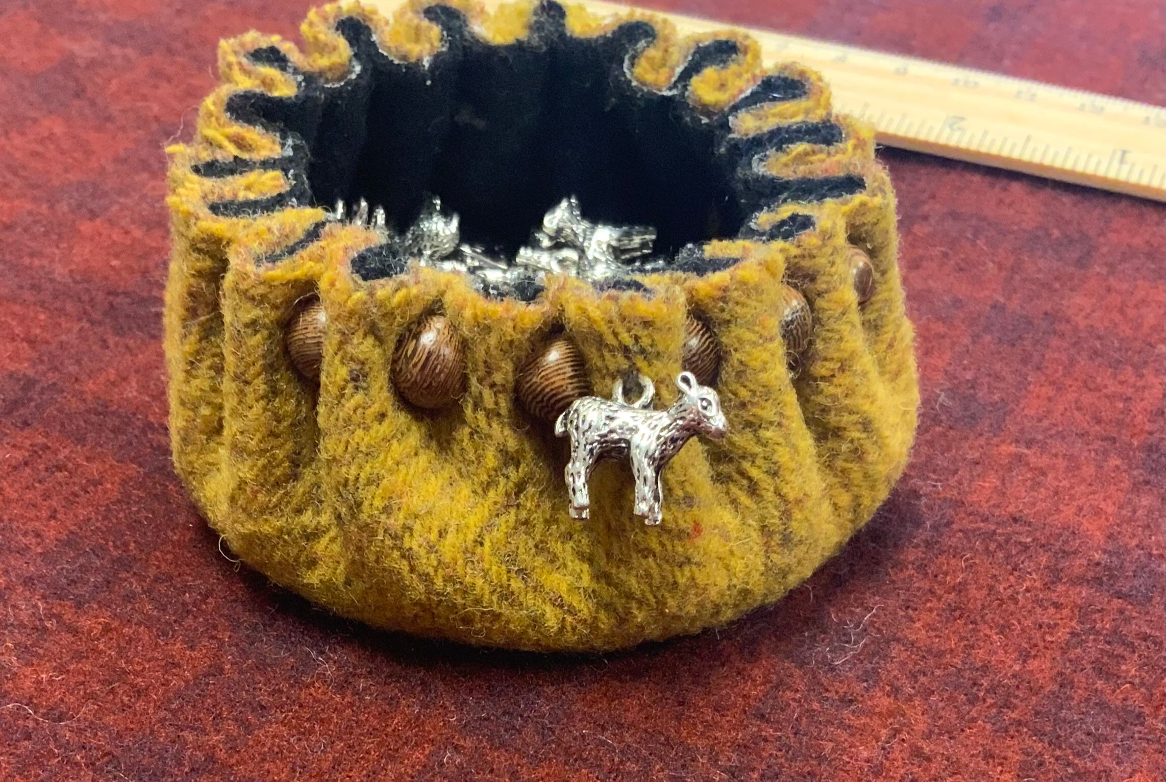 Cute as a bug in a rug! These fun tiny charms make great additions to any of your wooly projects. Also earrings, scissor fobs, add to our little wooly pots, stitch into appliquéd pieces, Christmas ornaments and so much more!