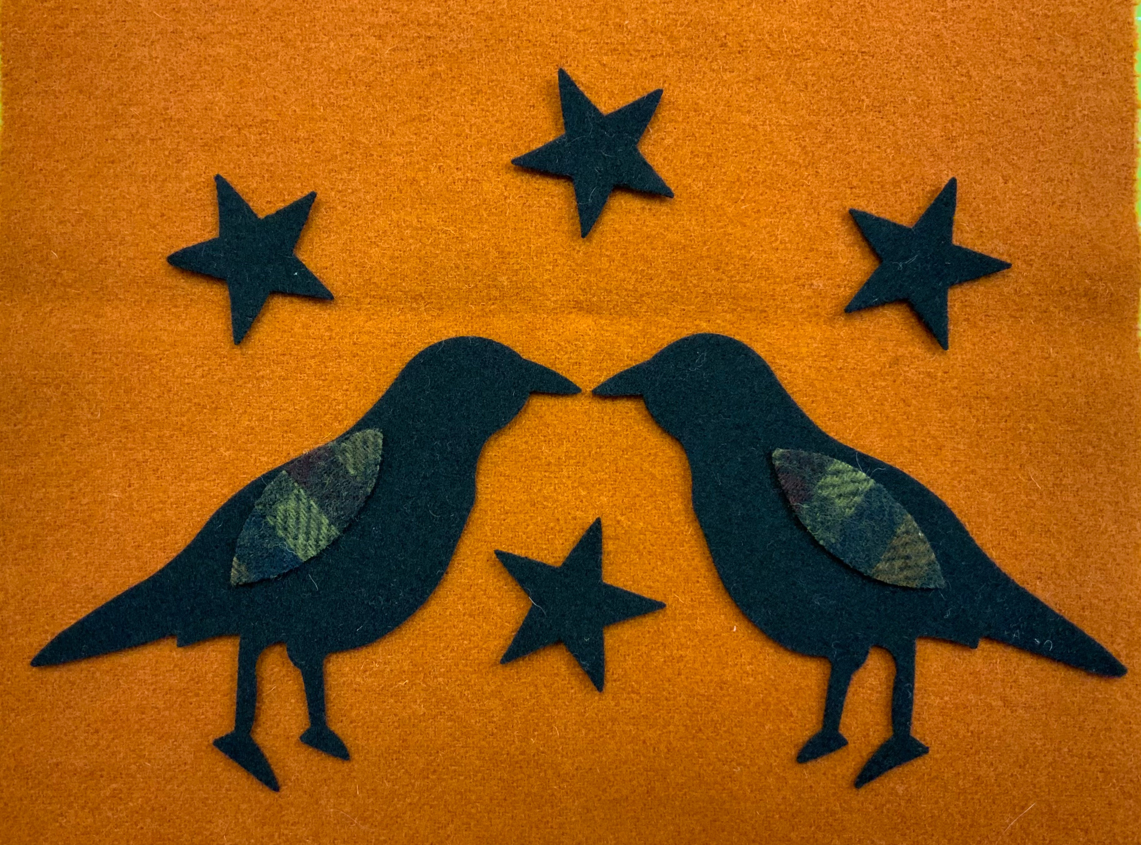 These packs of pre cut crows are fun to appliqué on a pillow, wall hanging or table runner. Packed 2 crows, 2 wings and 4 Stars to a pack.
