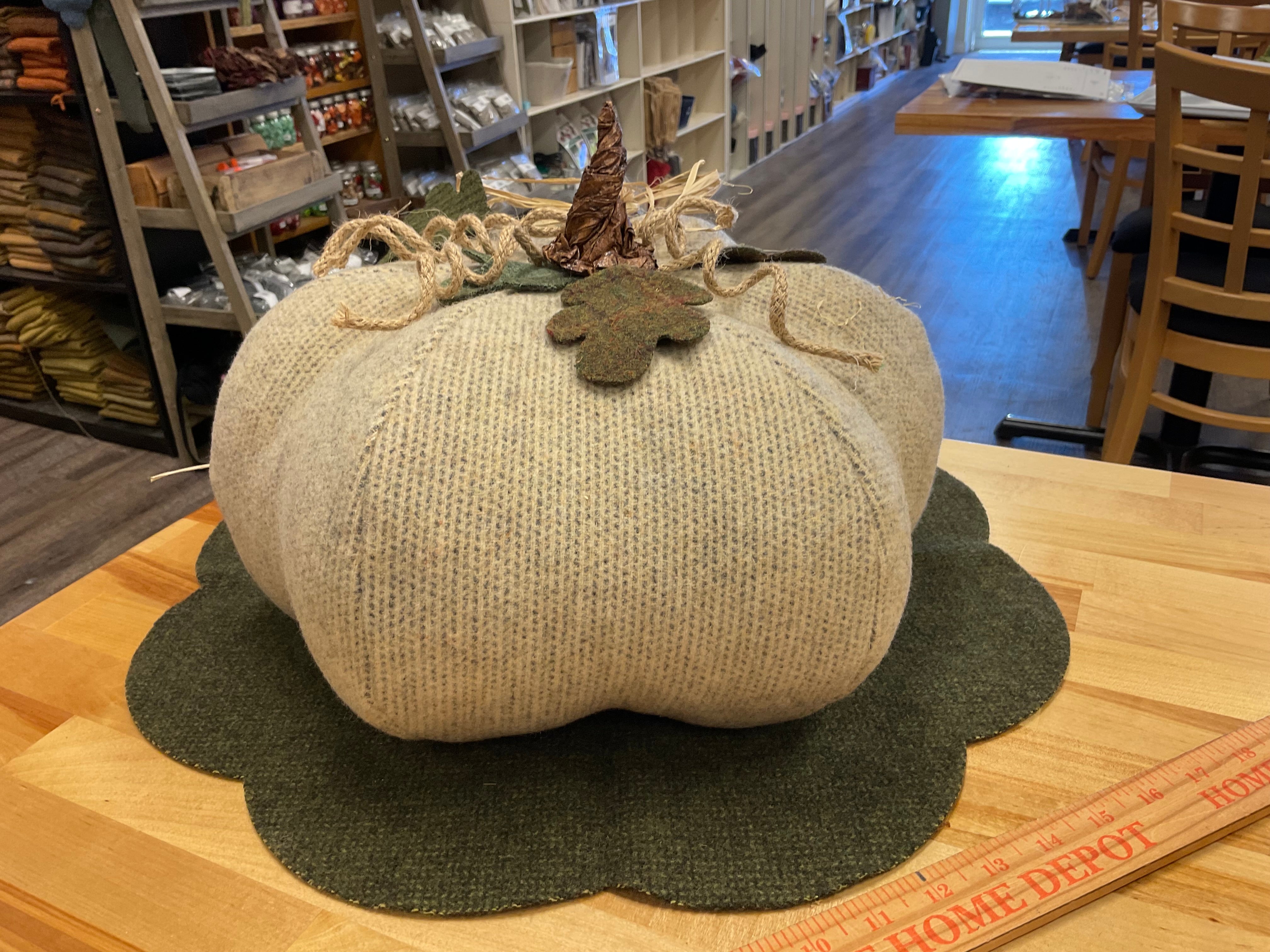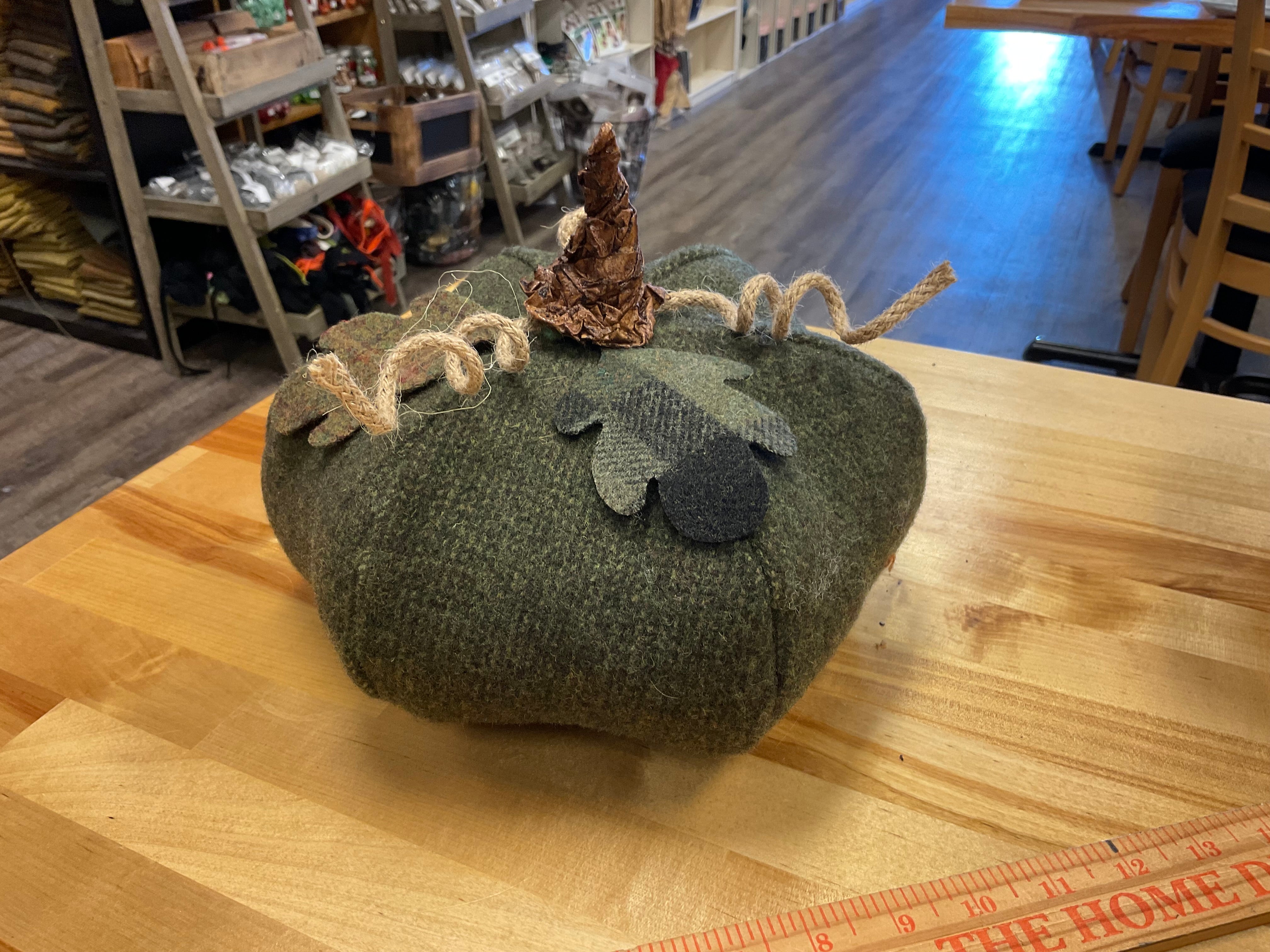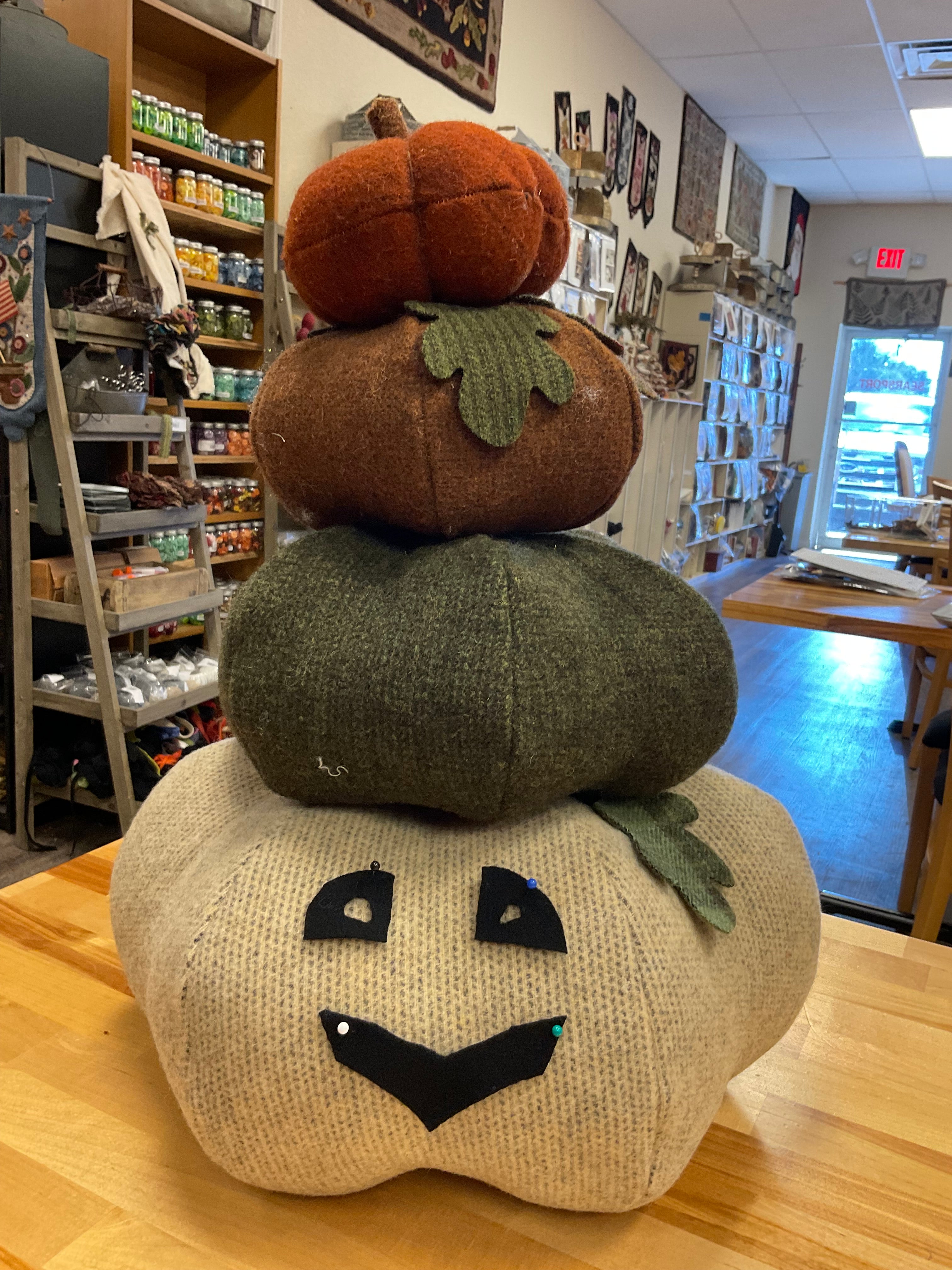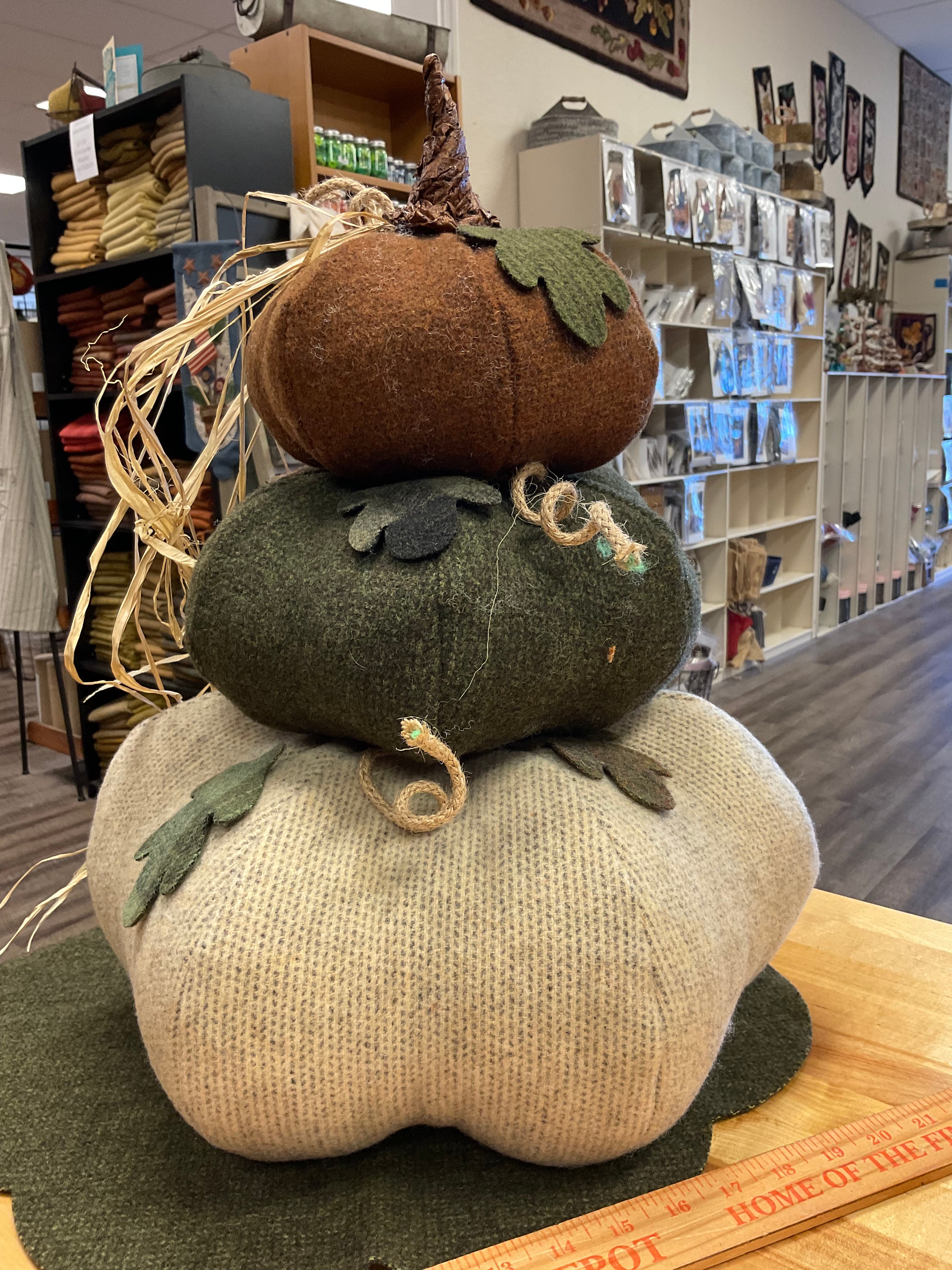 A fat half yard of wool will make 1 large and 1 small pumpkin.
