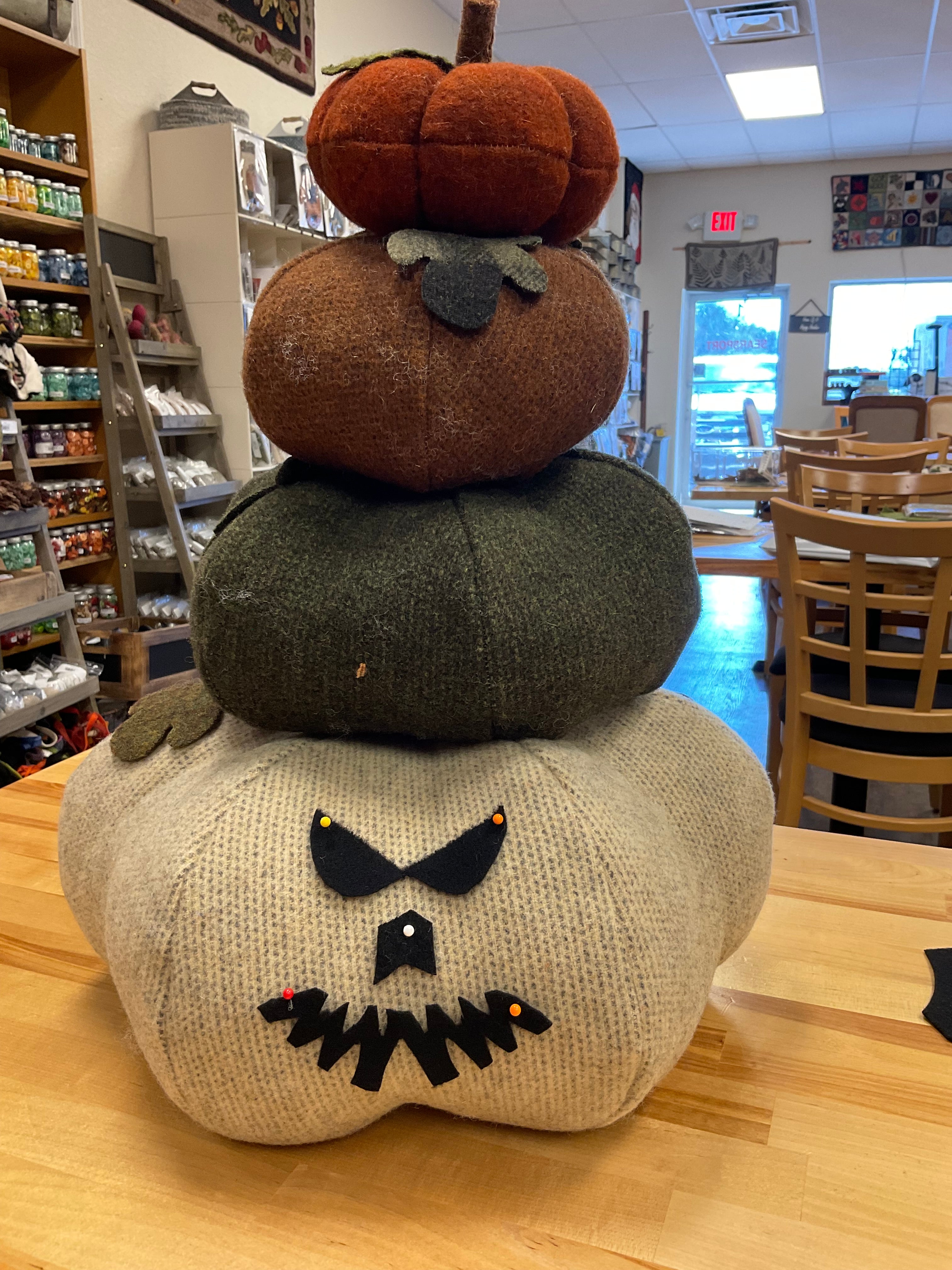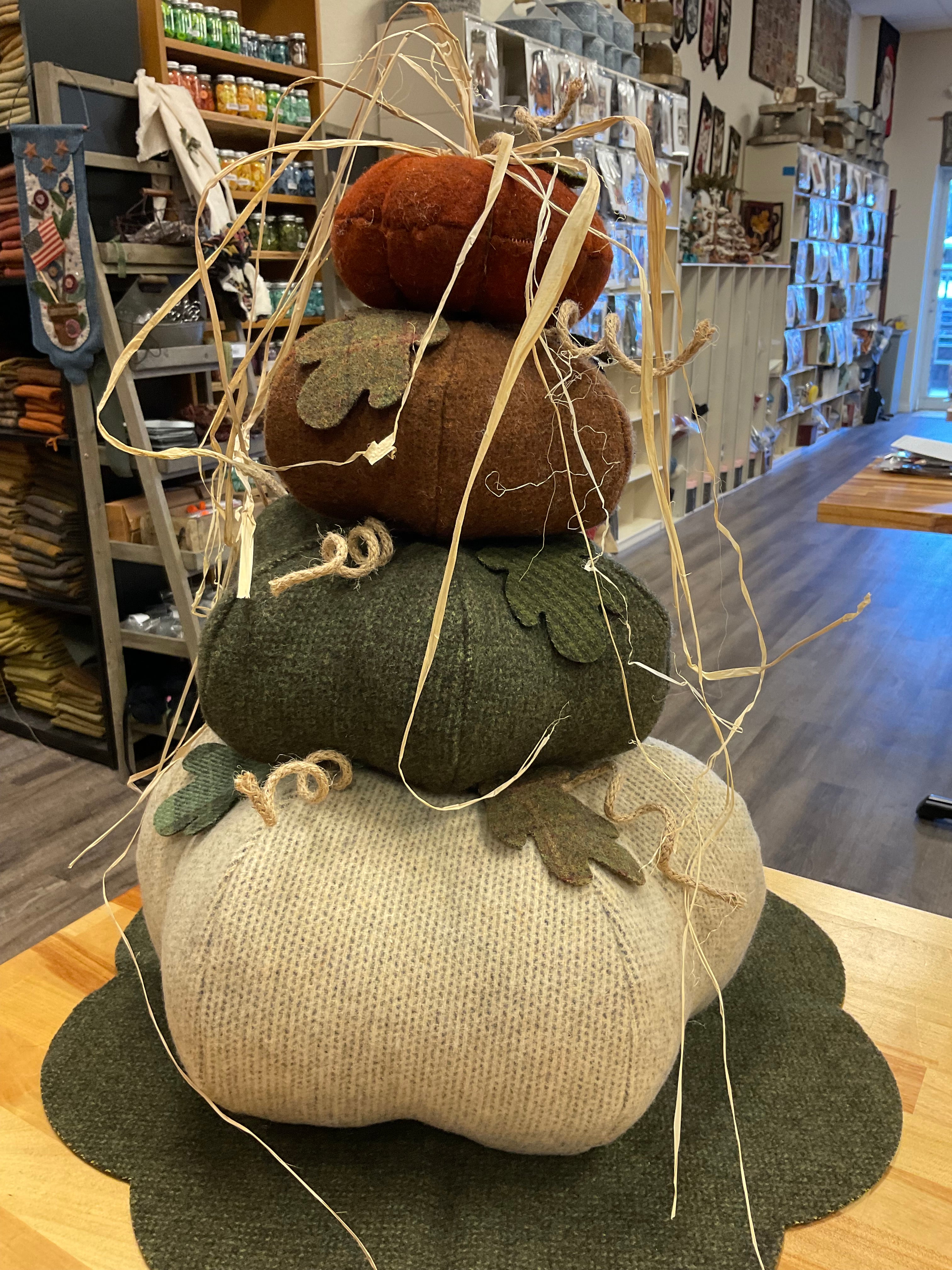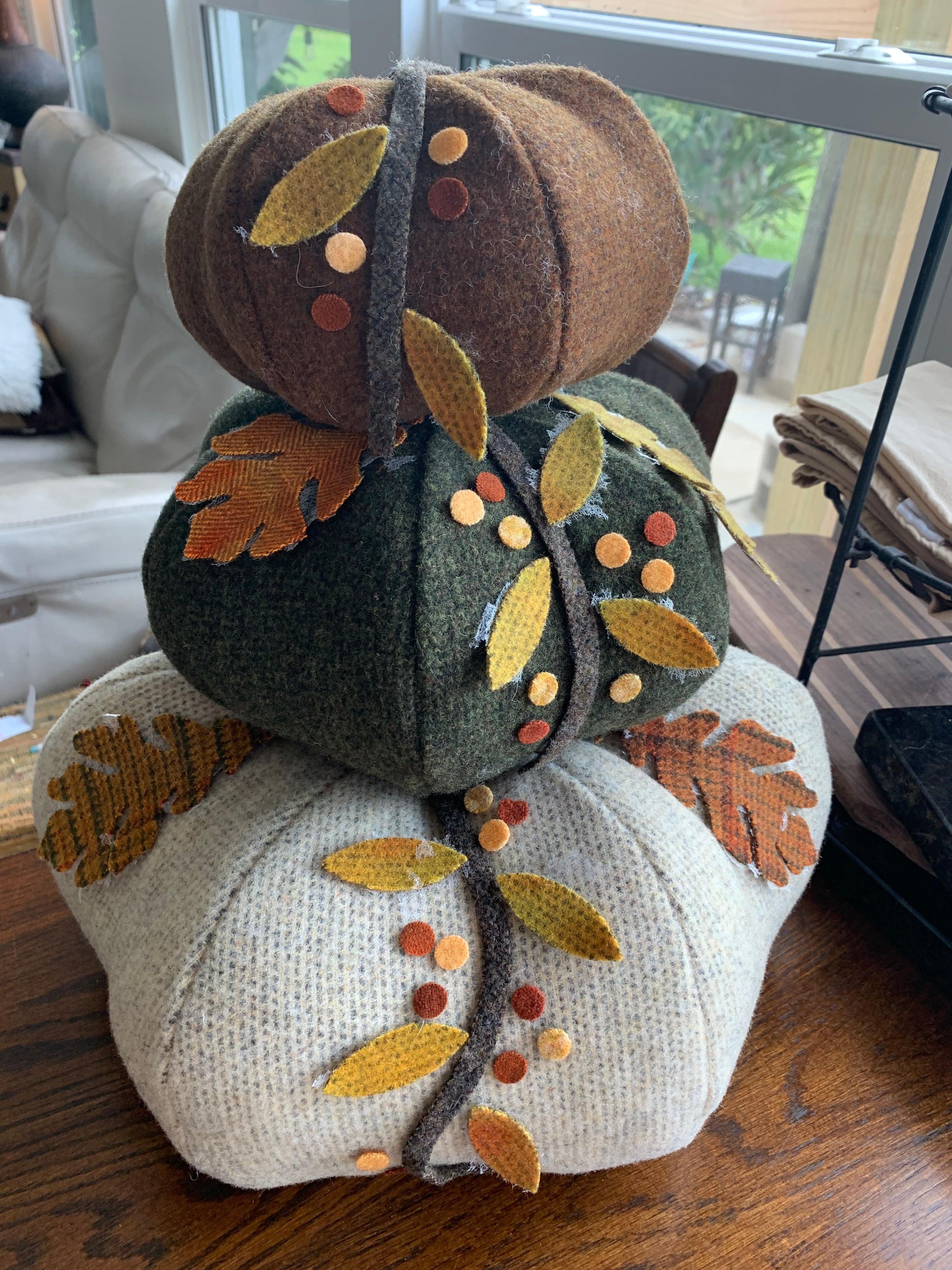A fat half yard of wool will make 1 large and 1 small pumpkin.
