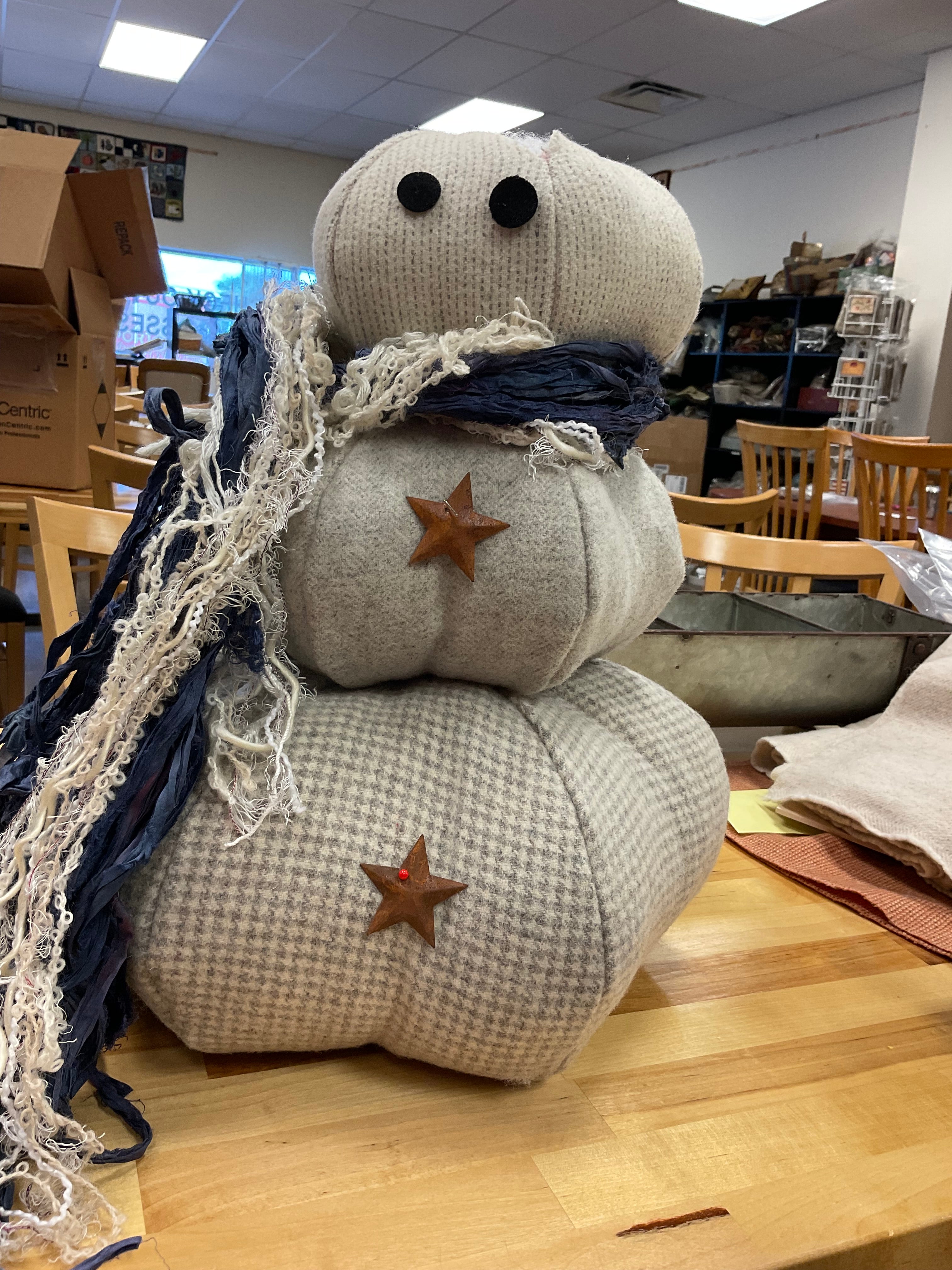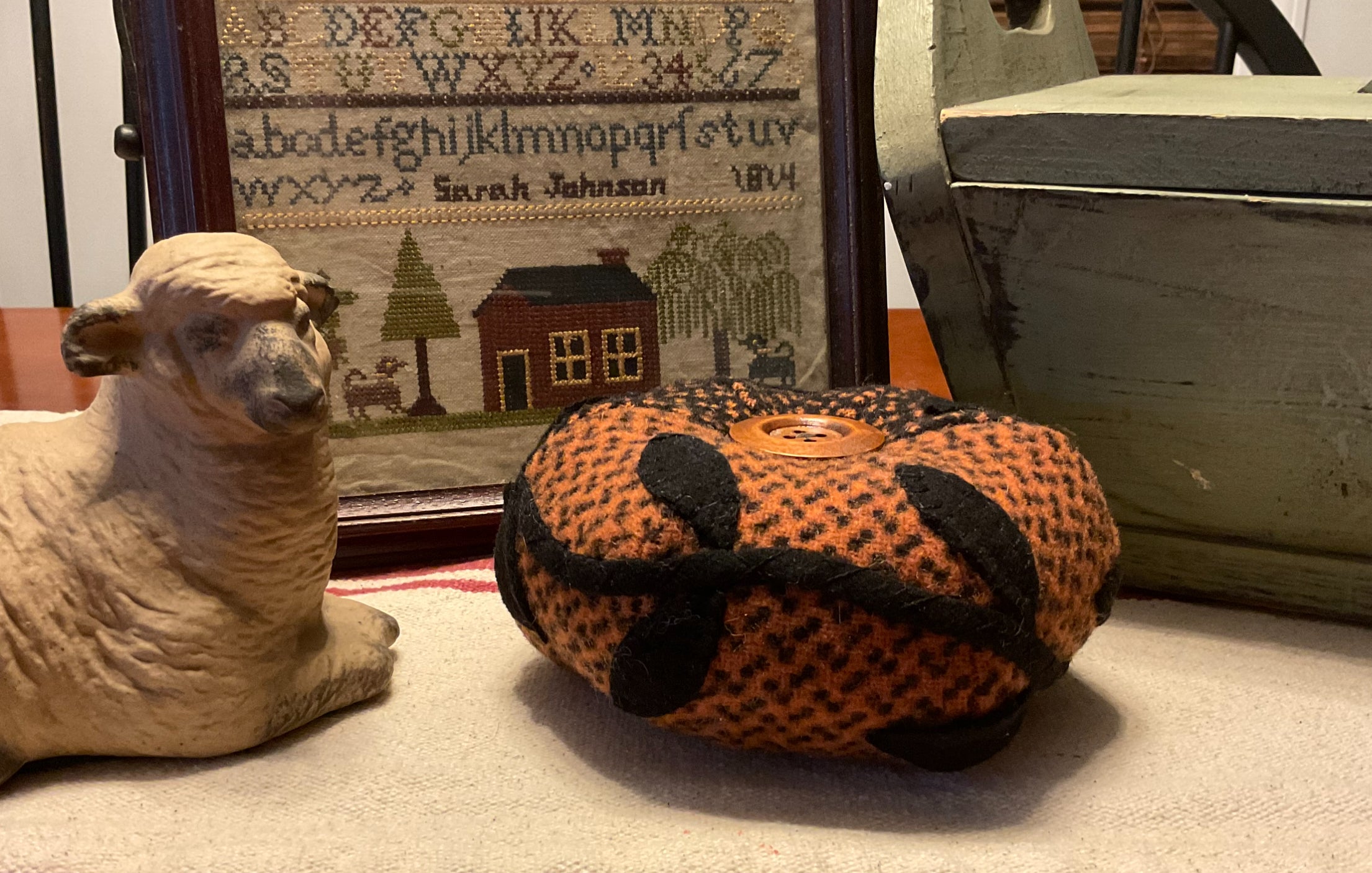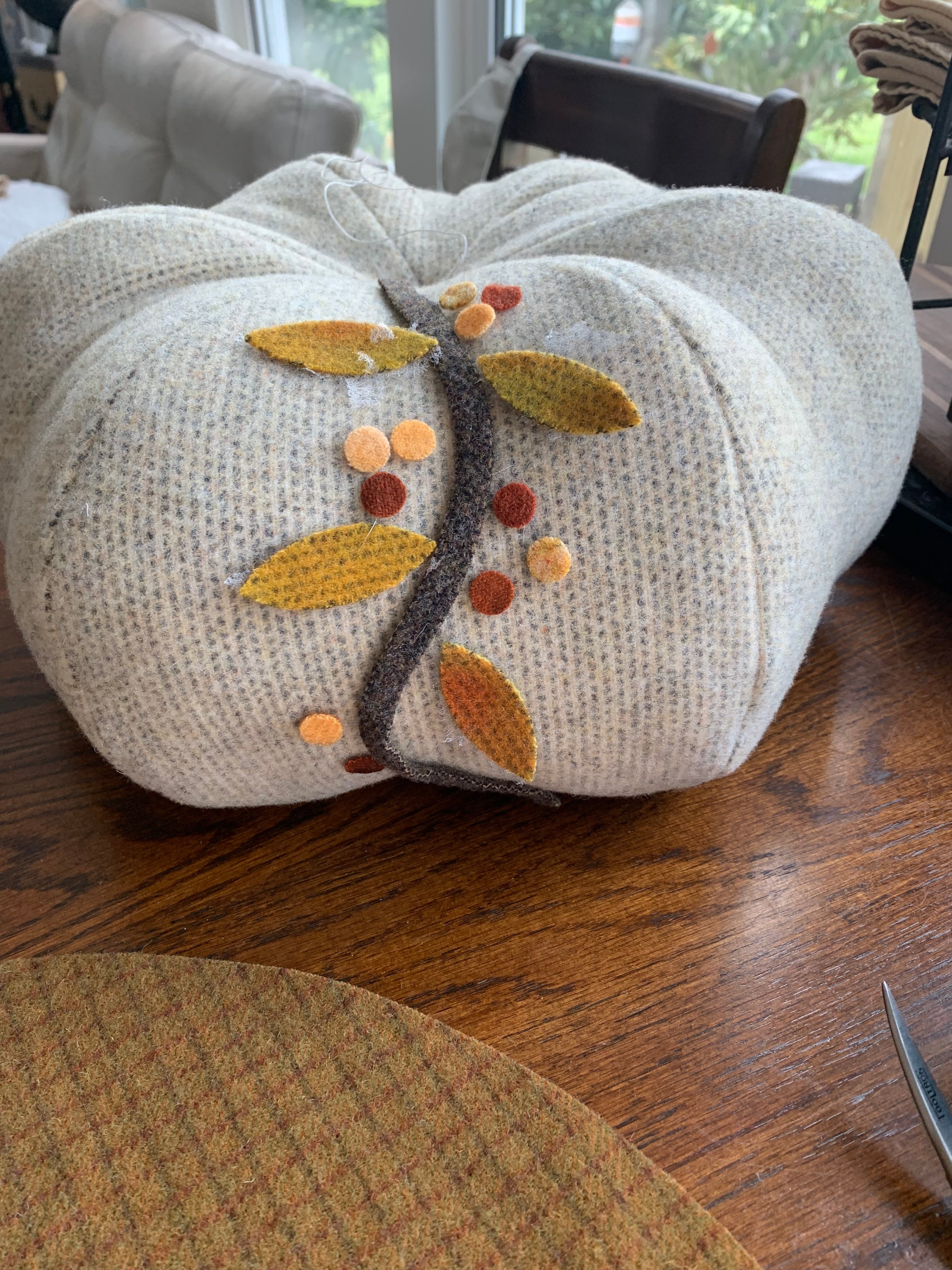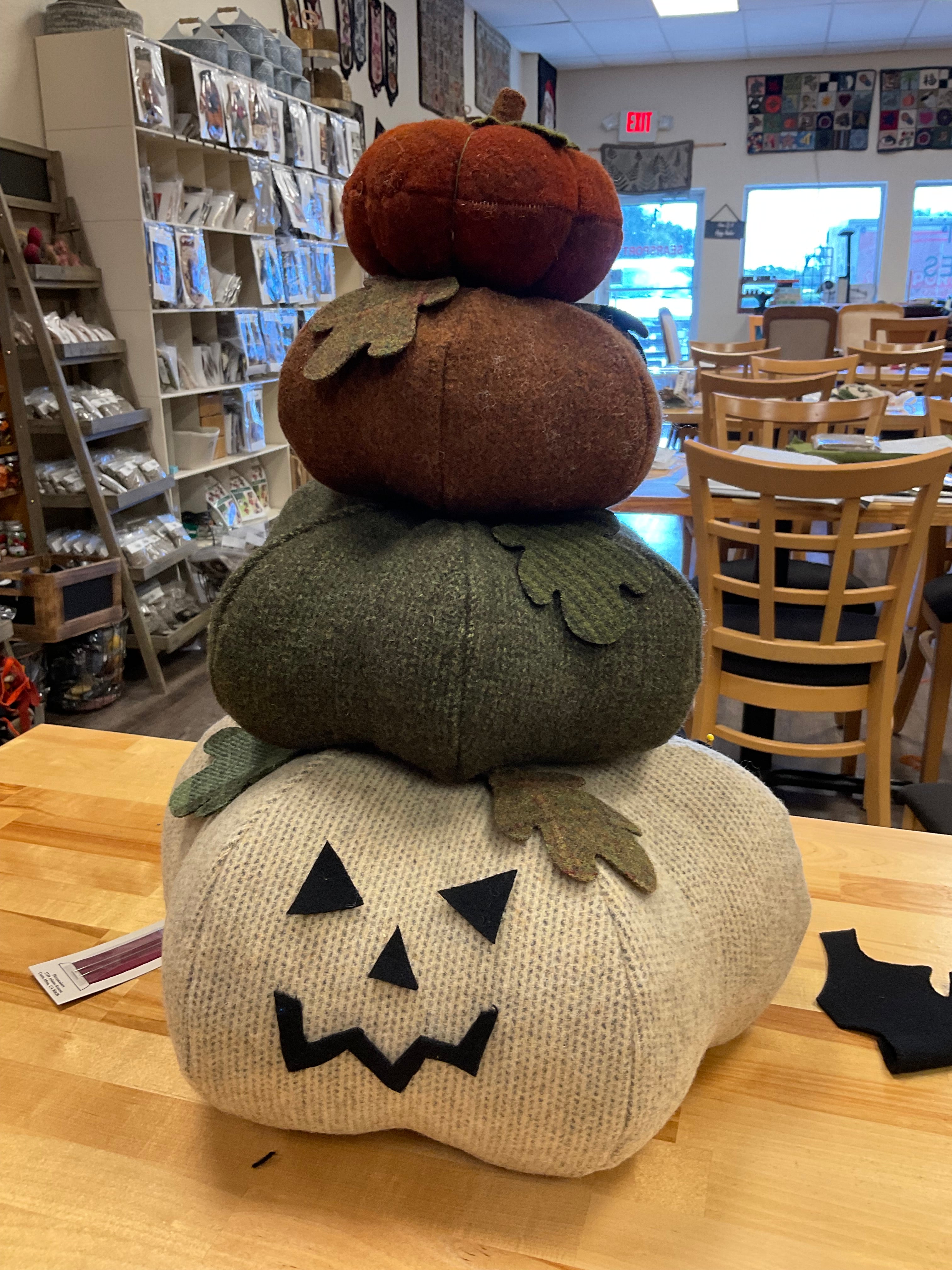 A fat half yard of wool will make 1 large and 1 small pumpkin.