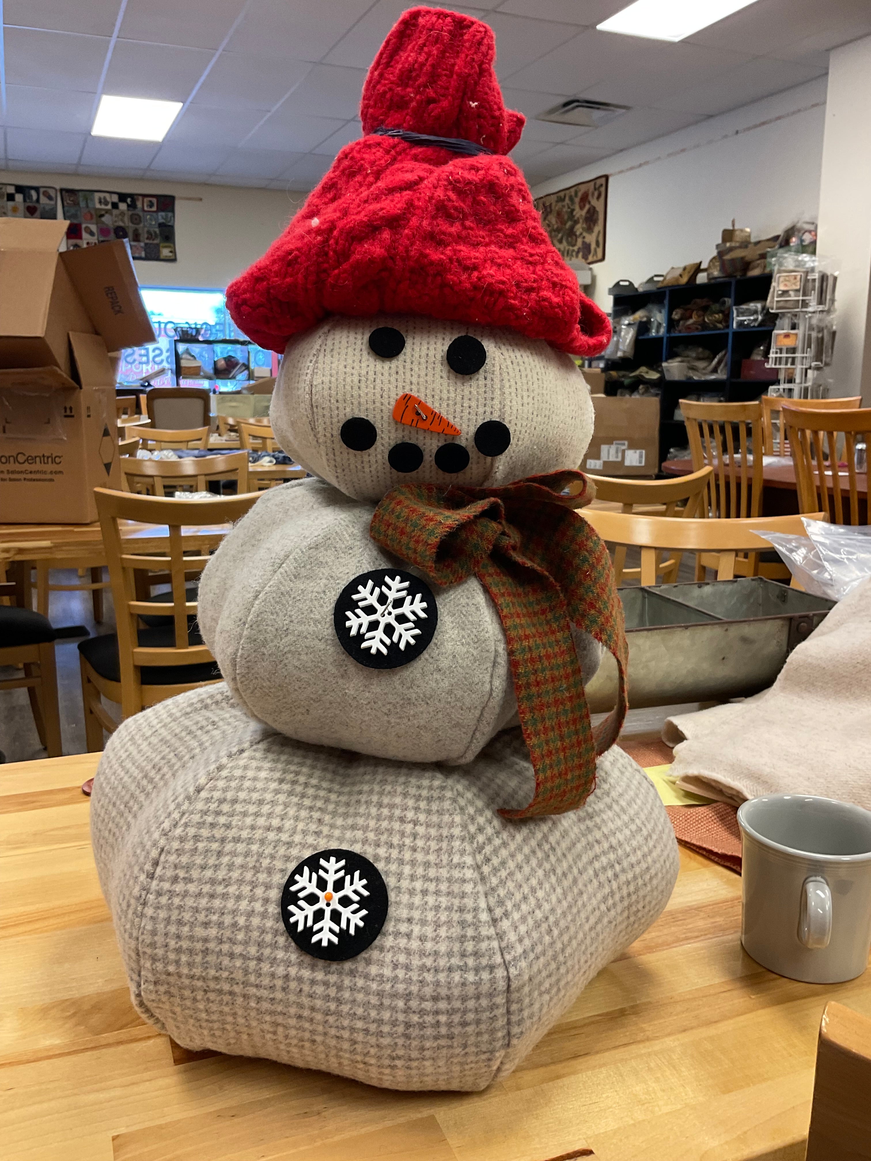 We use the large, medium and the small in the snow people and just glued them together to stack! A child’s hat is the perfect size for a snow cap or stocking