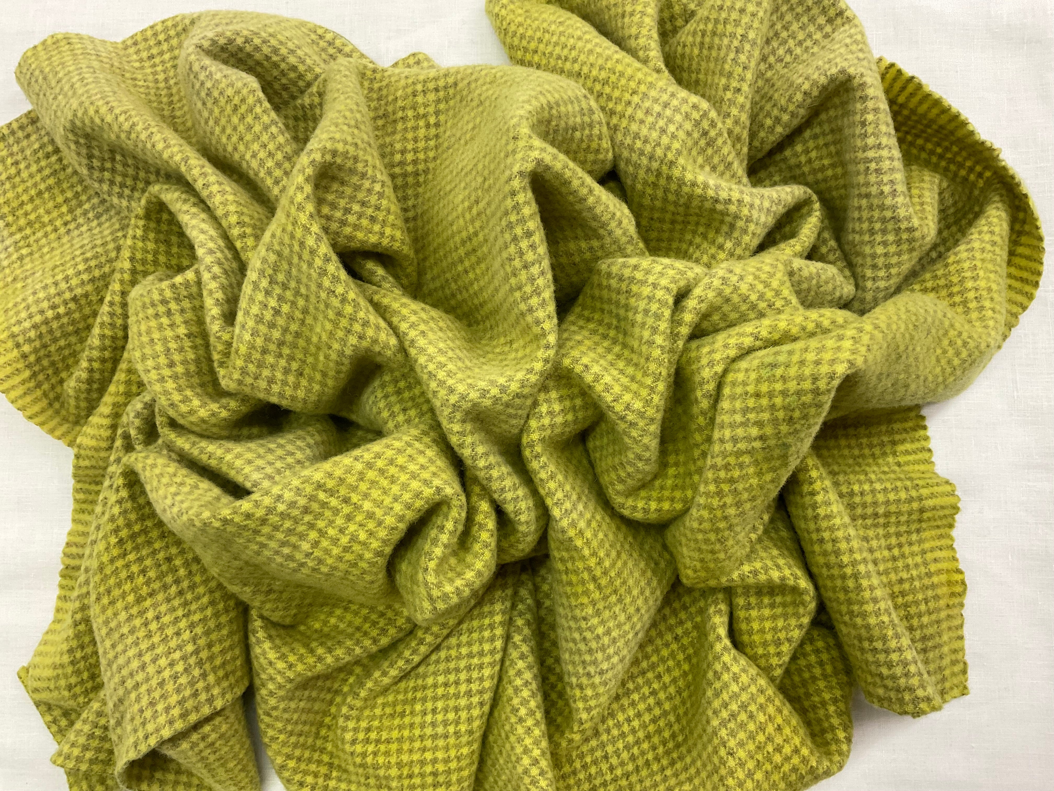 1 Fat Quarter of over dyed wool on houndstooth, herringbone or natural. The one yard of natural has strong spotting on it from undissolved dye. Strongly none of the other 3 do. Those 4 fat qtrs only are $15.00 a piece instead of $16.00 for hooking it will hardly show, but for appliquérs it would be annoying
