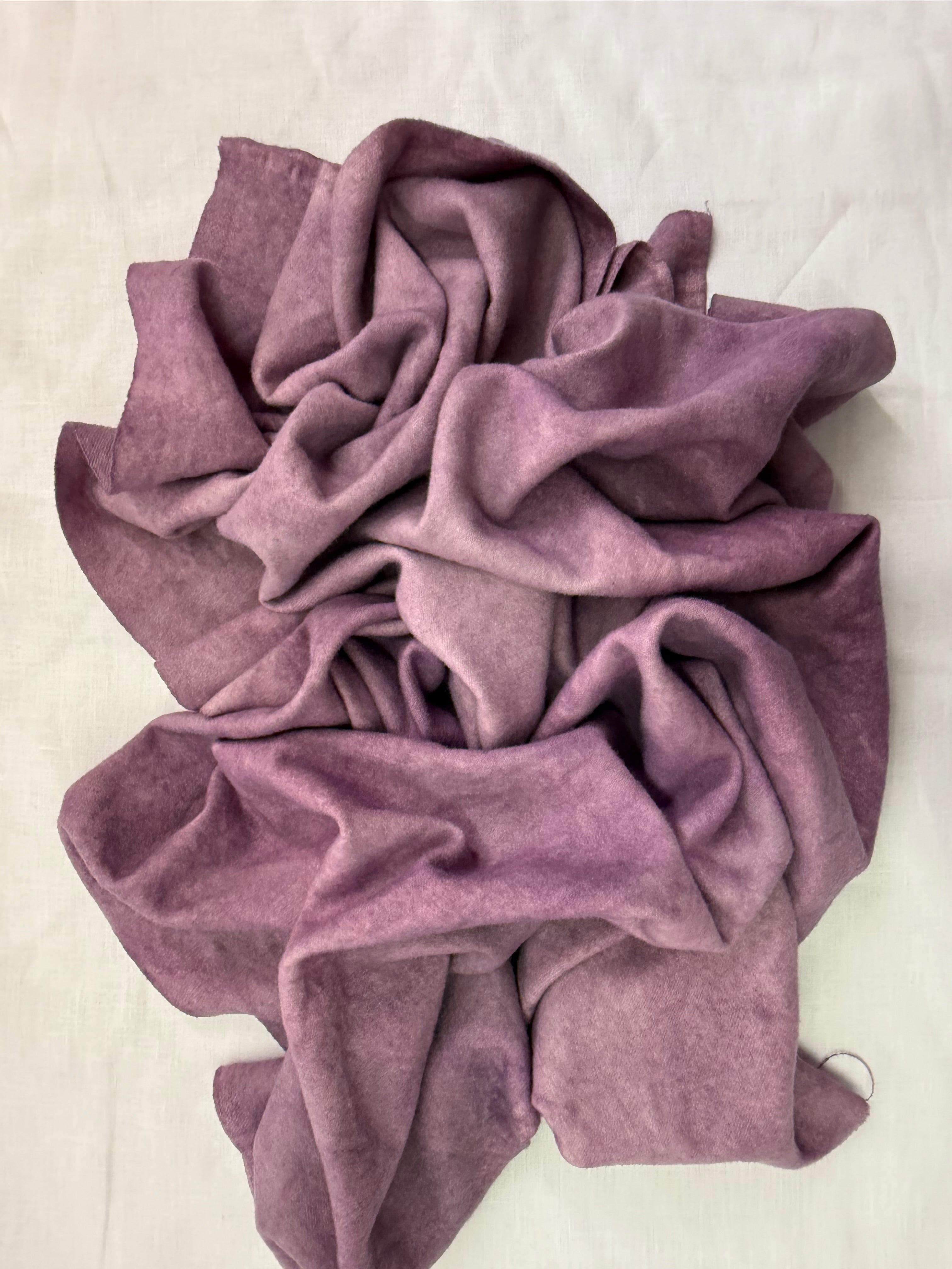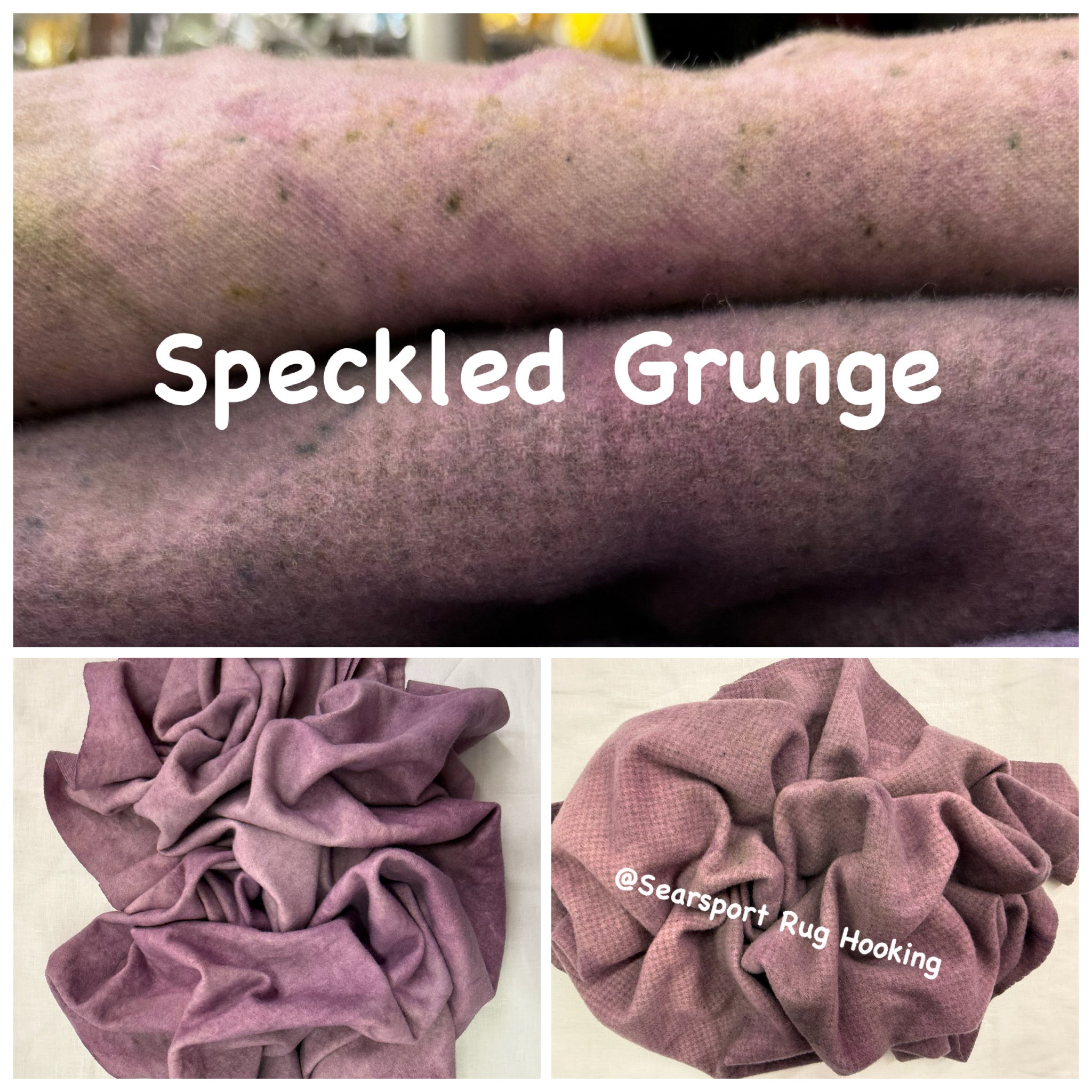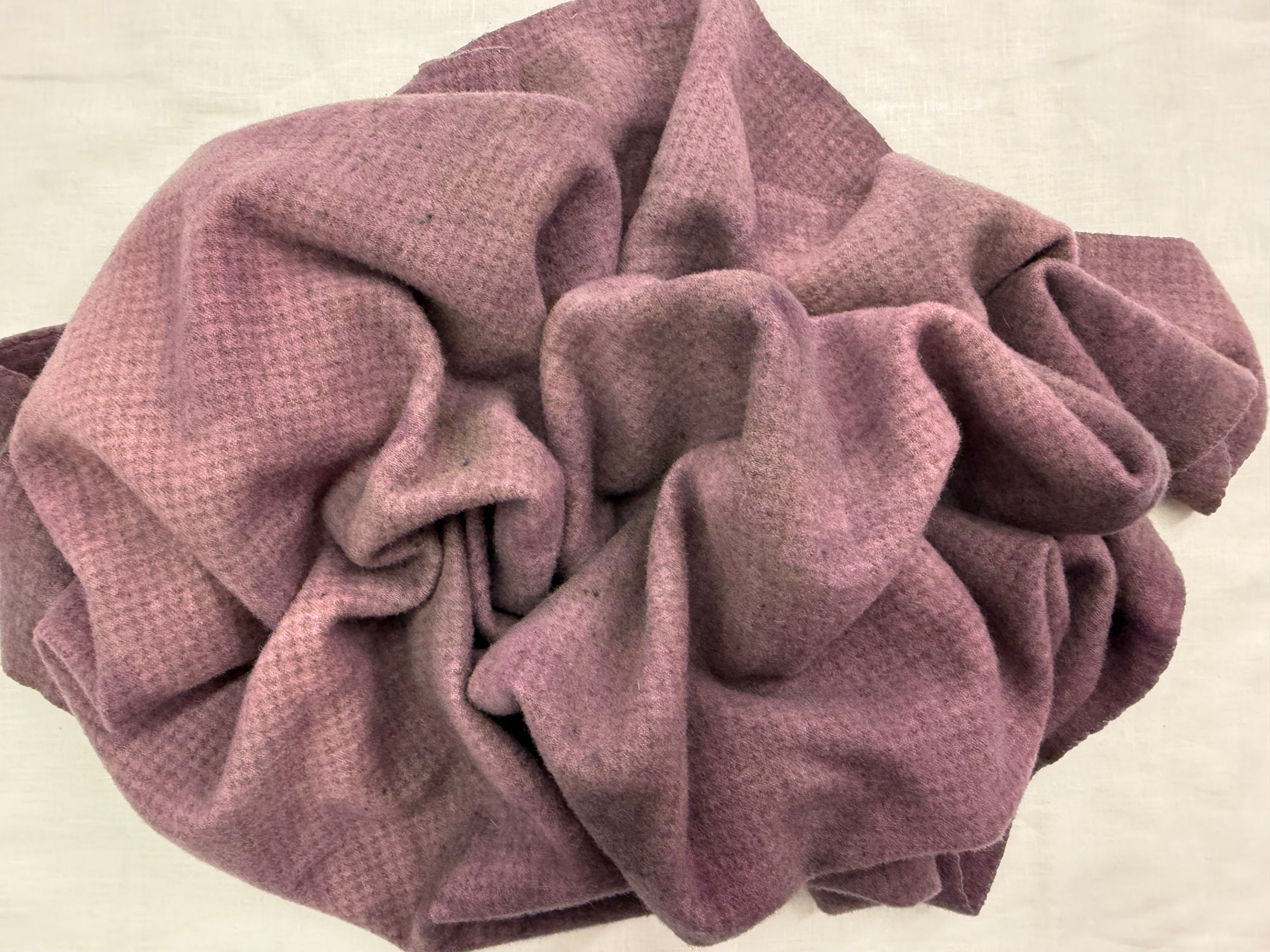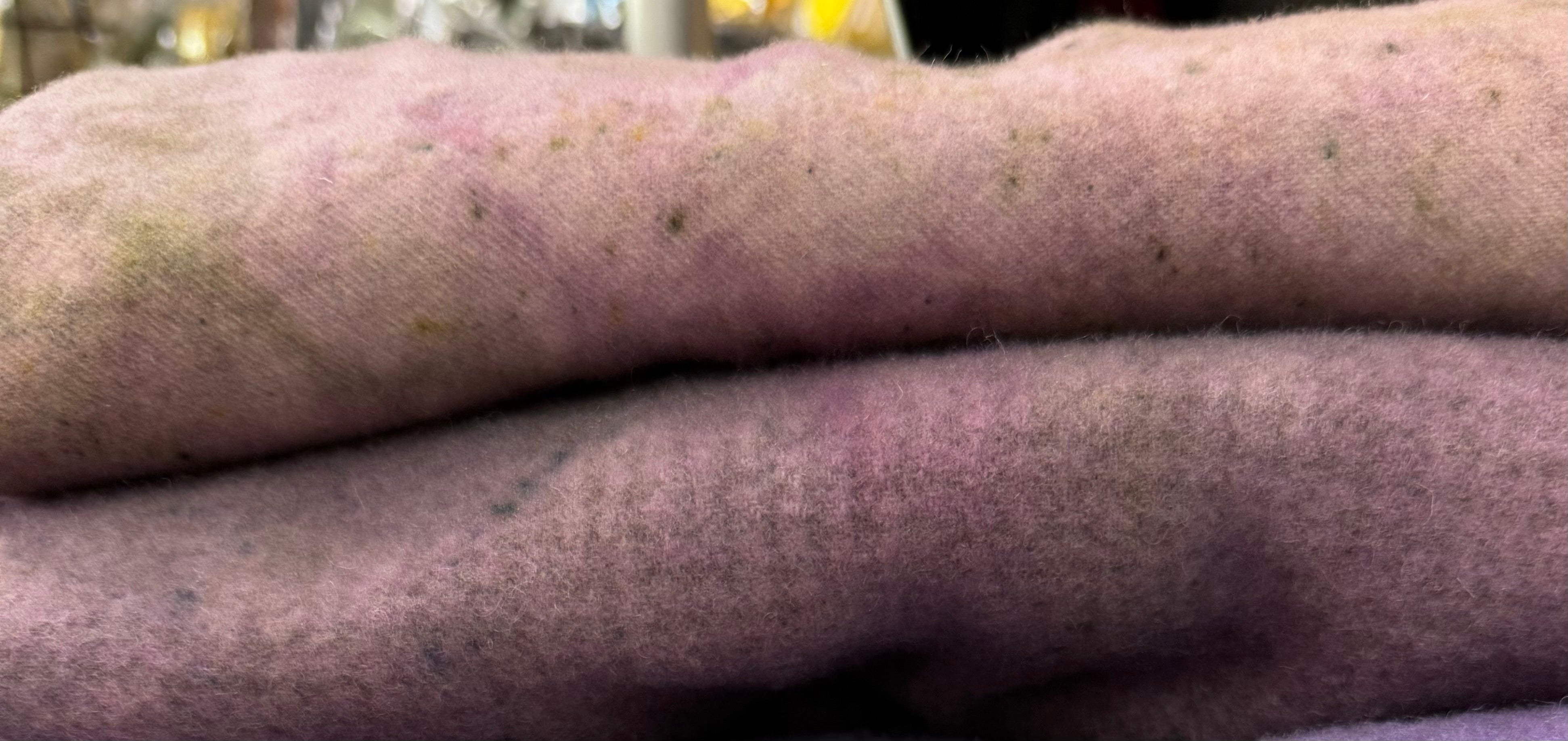 1 Fat Quarter of over dyed wool on natural wool or houndstooth, with a pretty grungy color. This was dyed using the cleaning salt used on my dye spoons for the green and purple group of wools. its creates a shadowed grungy spotted mixture of colors