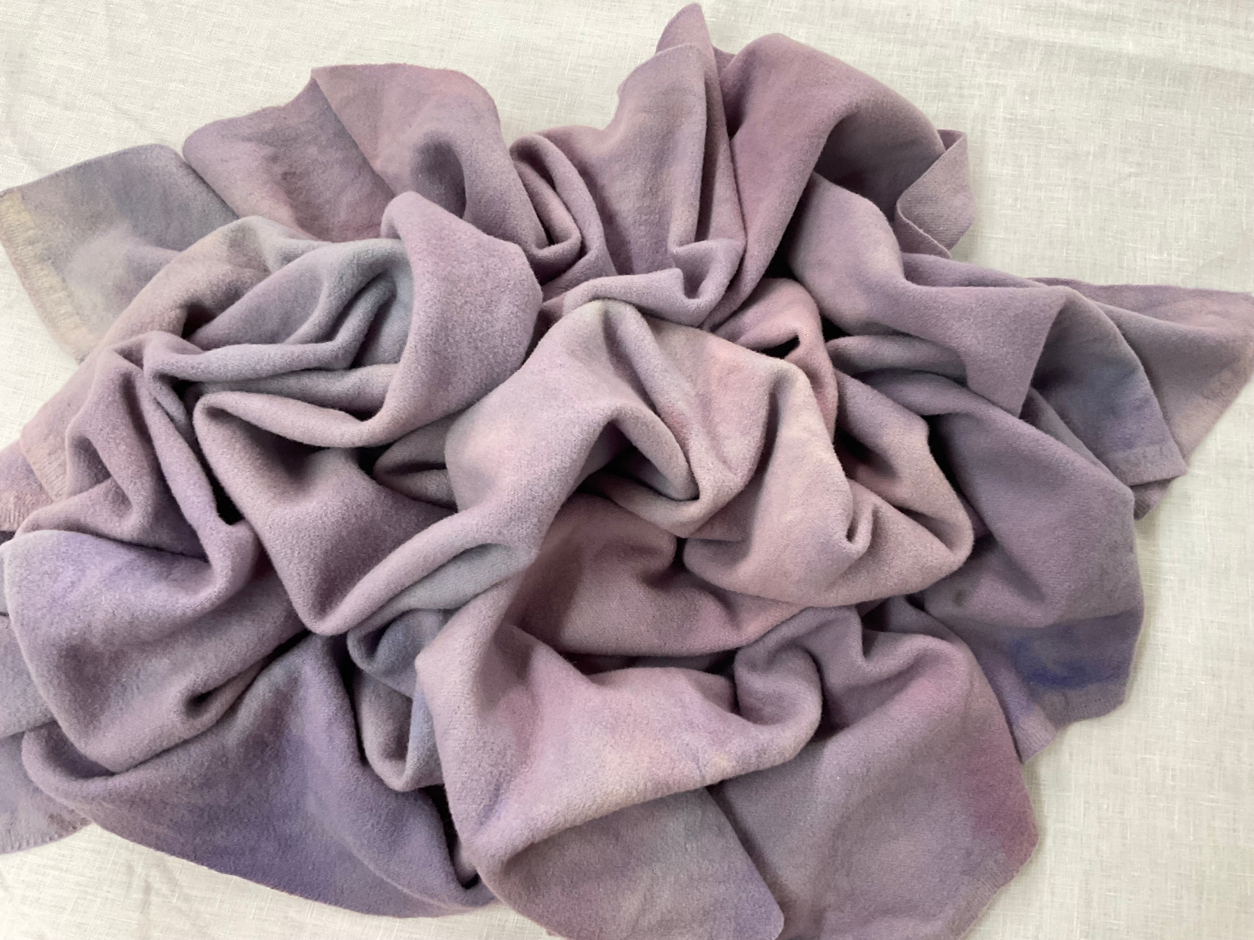 Over dyed wool on natural with pale lavender/lilac/rose Just like Misty Garden but no yellow
