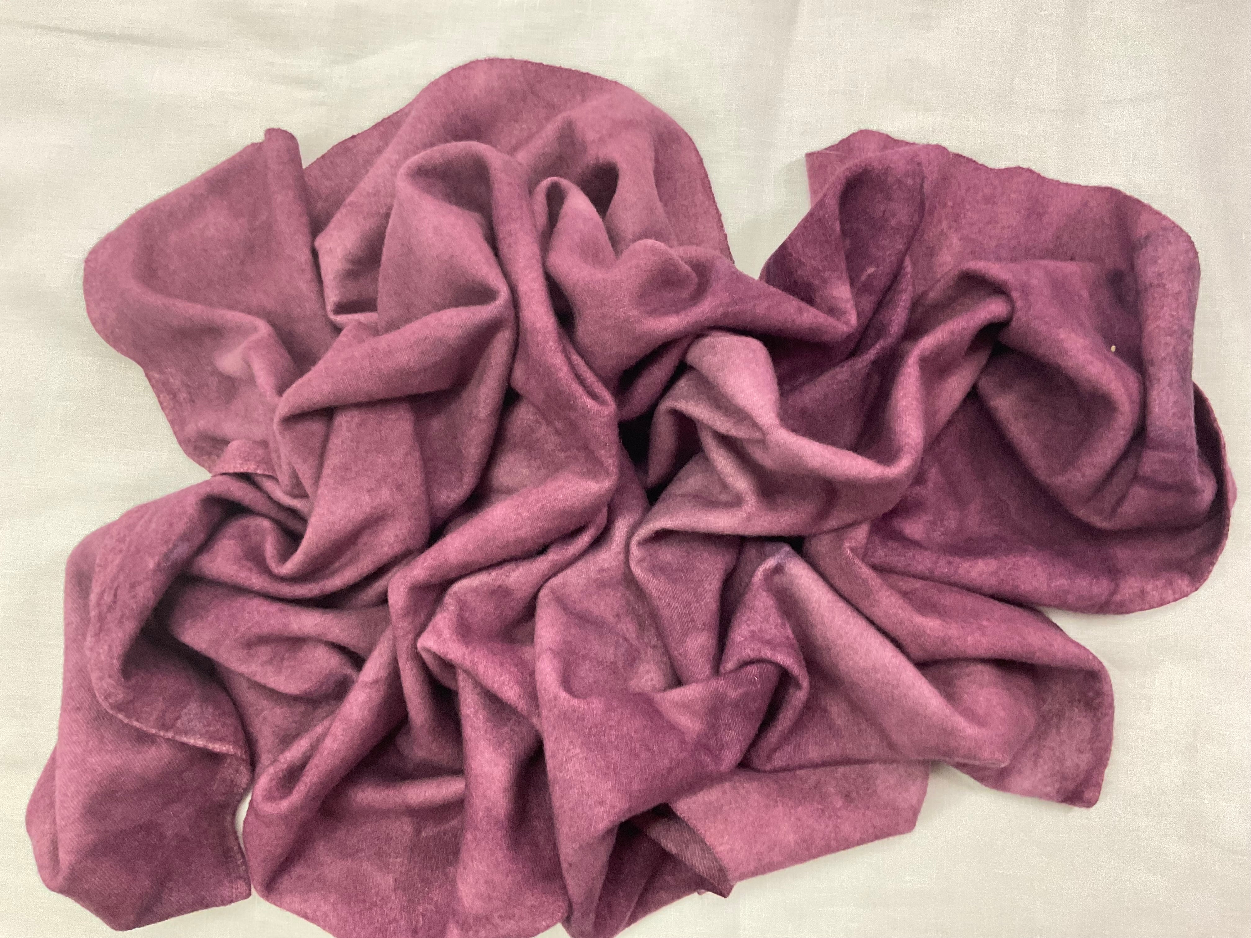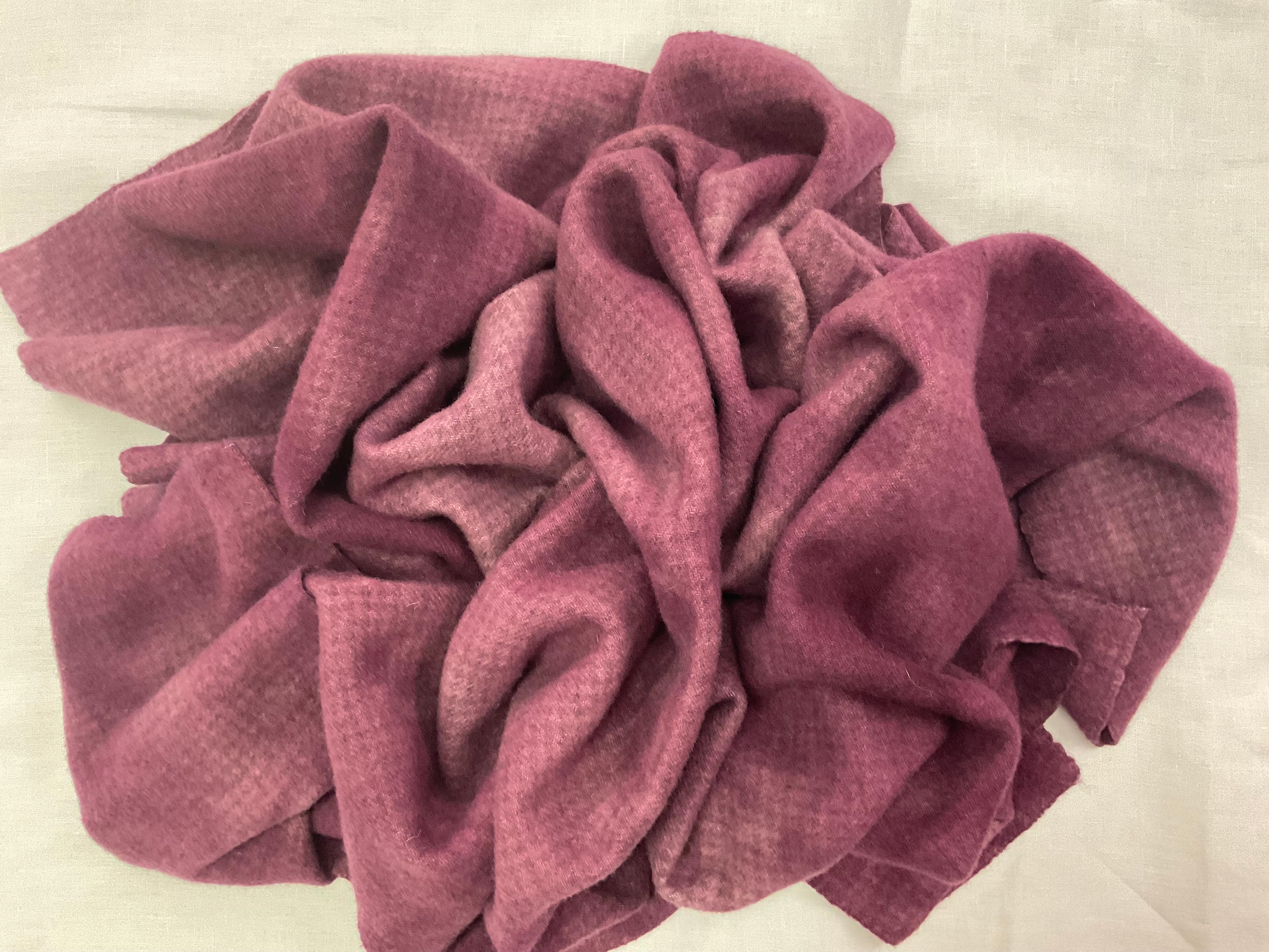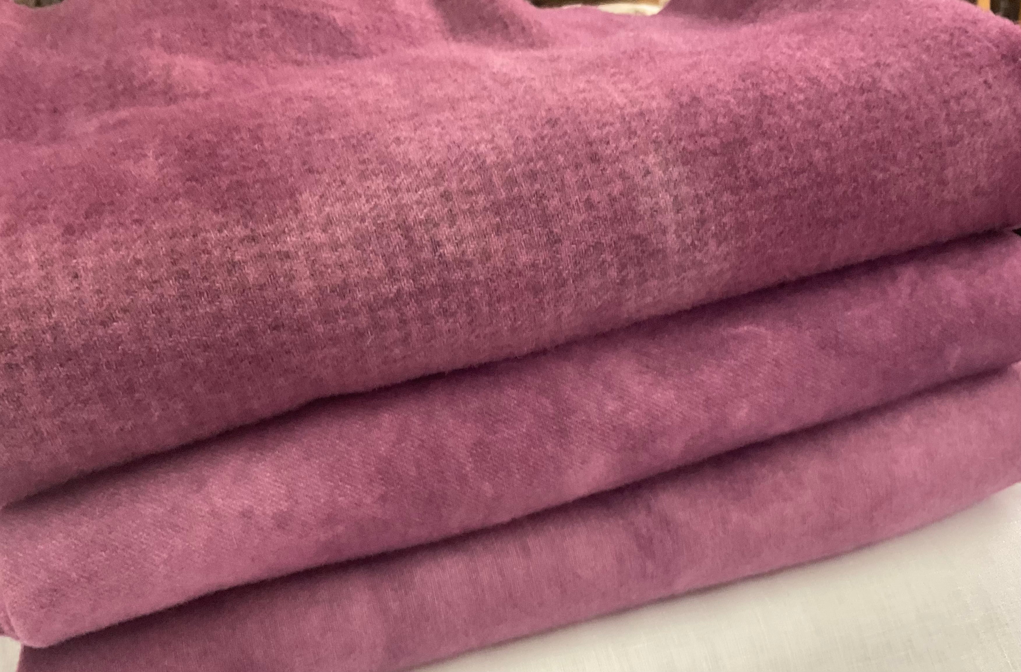 1 Fat Quarter of over dyed wool on natural wool or houndstooth, with a very soft dusty Red purple