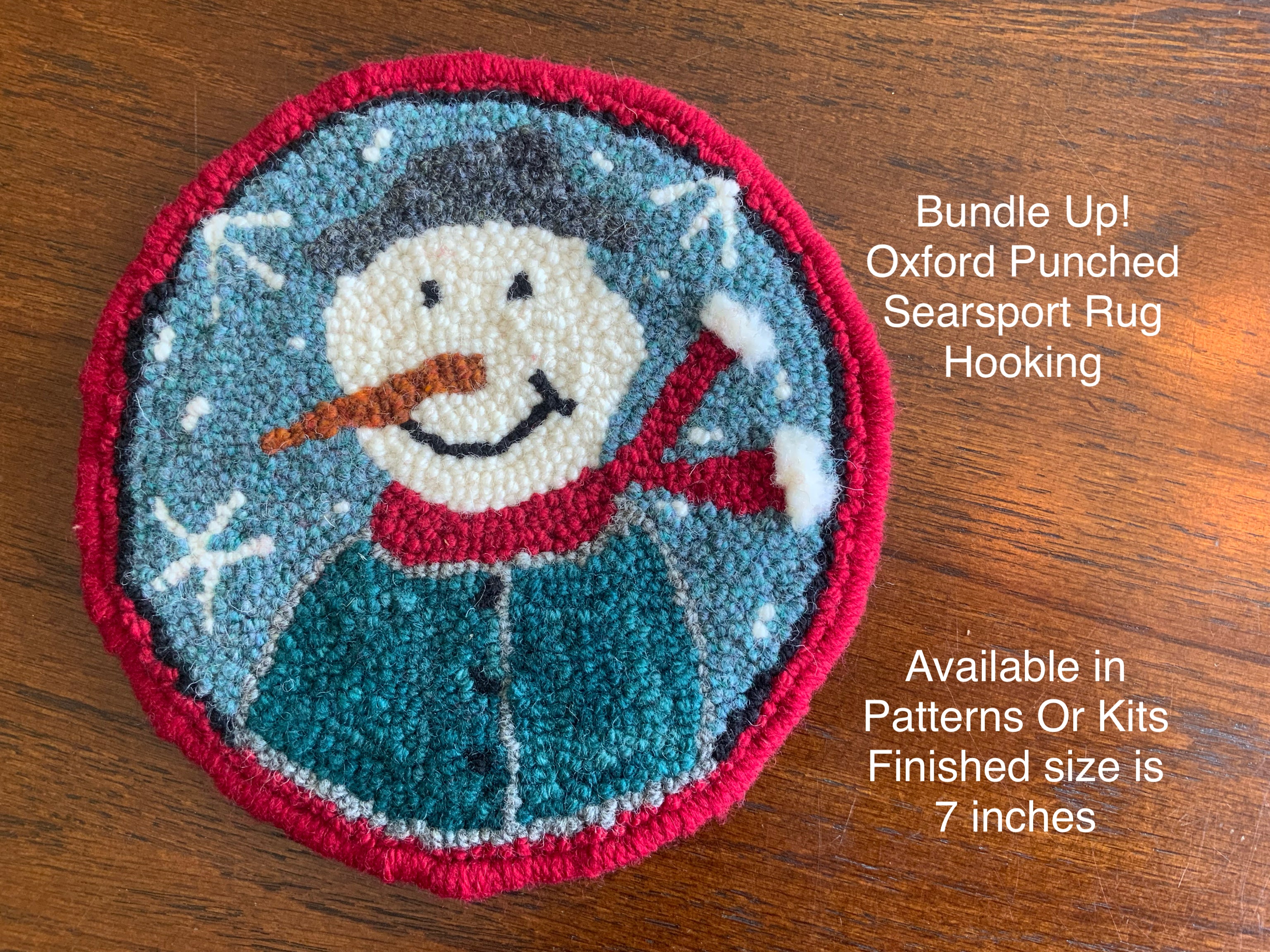These sweet beginner kits are perfect to lean how to use the Oxford punch needle. It is a hand drawn pattern in a 7 inch circle on our monks cloth and you can order just the pattern to use your own yarns or wool strips or order the full kit with the yarn.