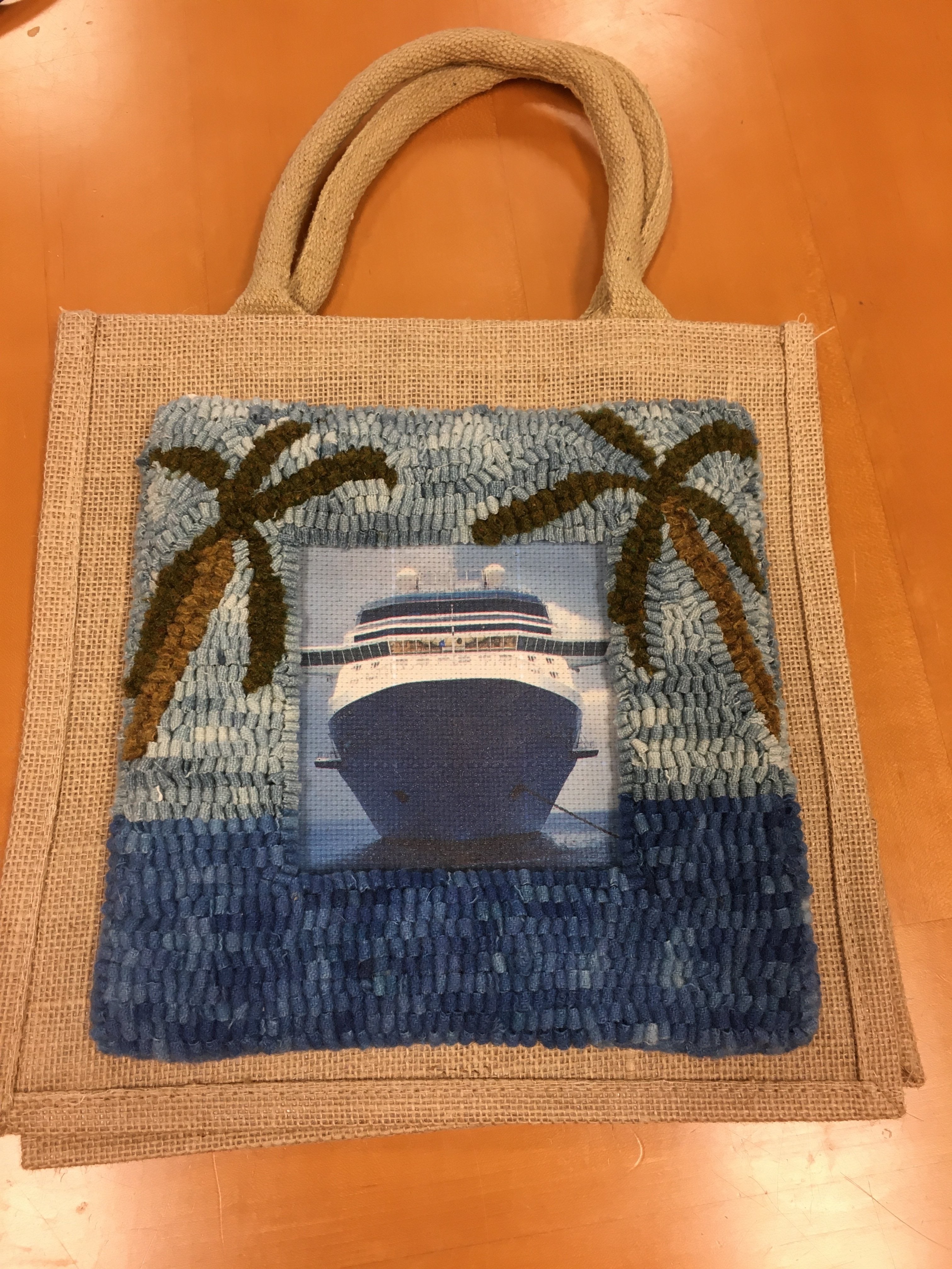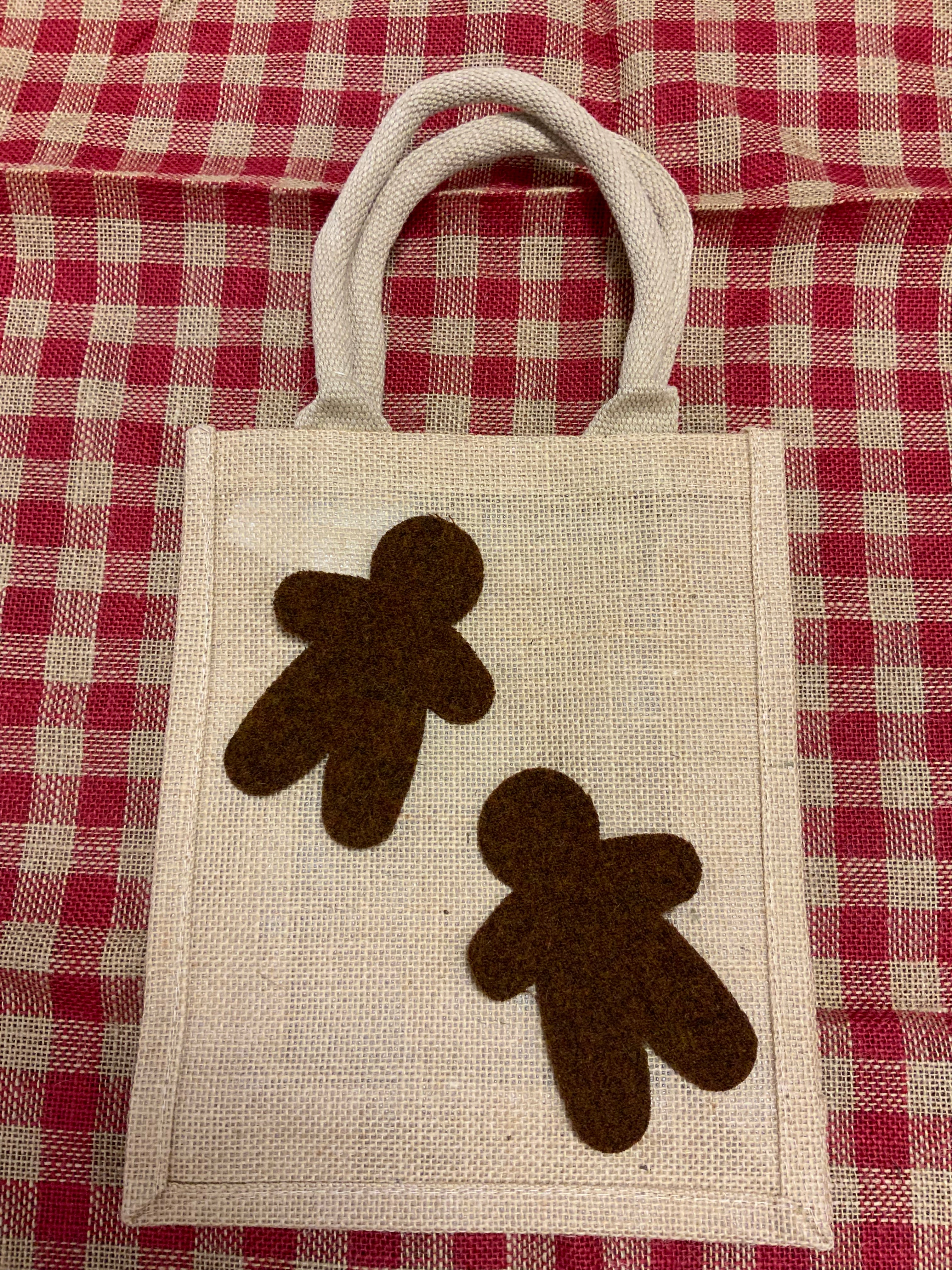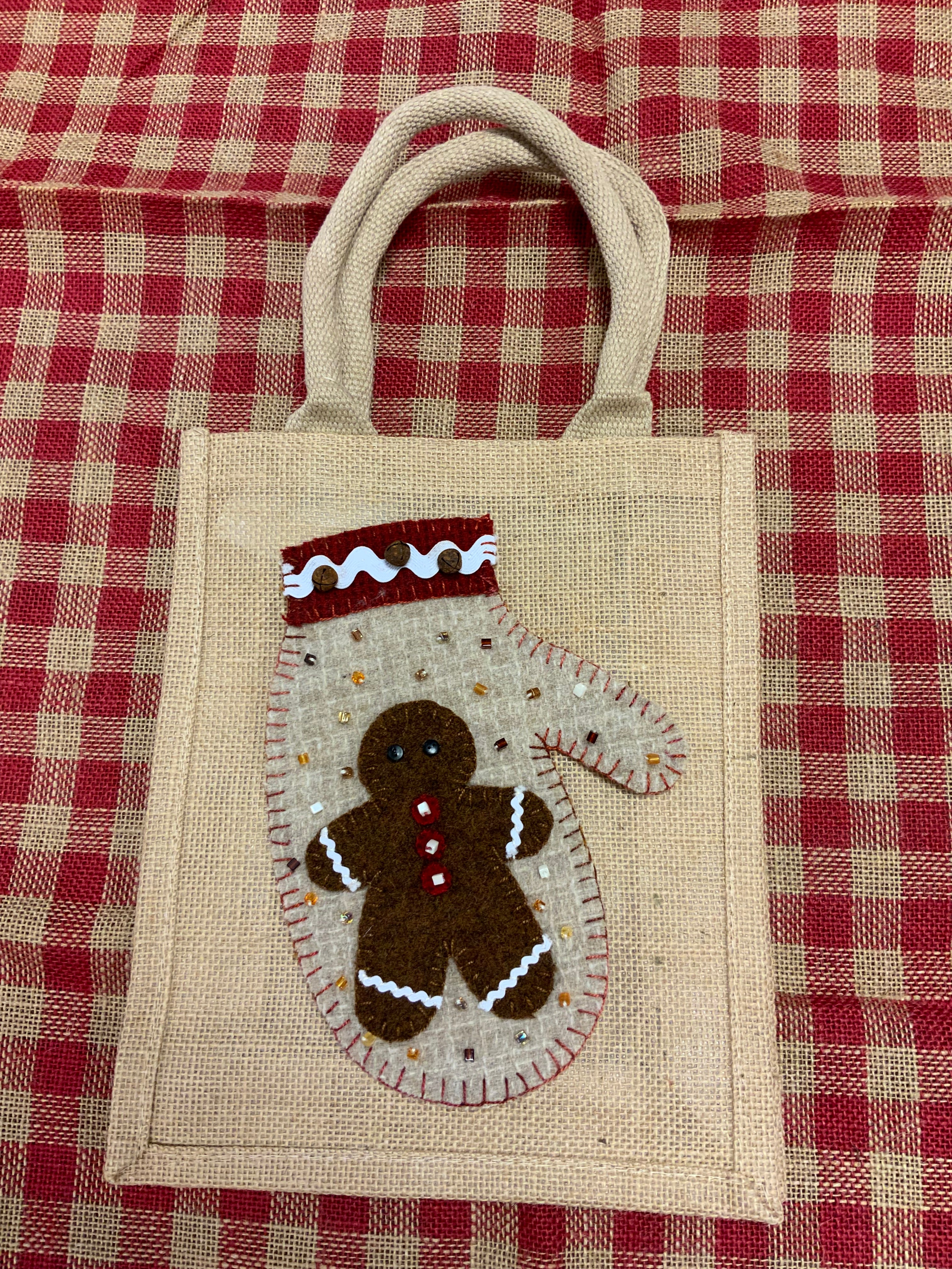 Our cool jute tote bags will hold projects on the go or your lunch for a guild meeting. They are well made, sturdy and lined to resist leaking or staining. The 9x11has a 4 in gusset. Add a covered bottom for extra support and your ready to tote most any of your appliqué, knitting or crochet projects! The bird pattern shown on our tote sample is from Rebekah Smiths book “Wool Appliqué Folk Art”