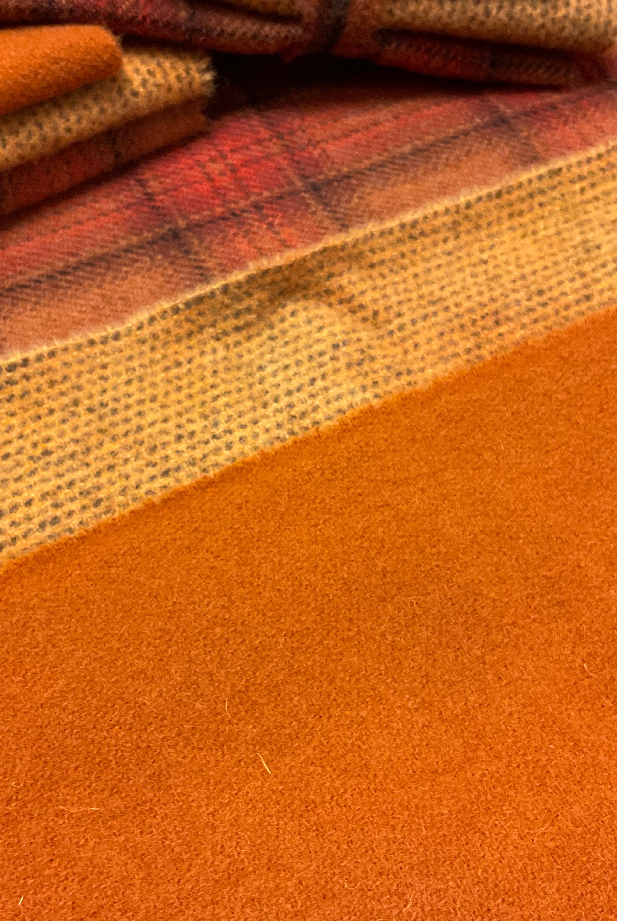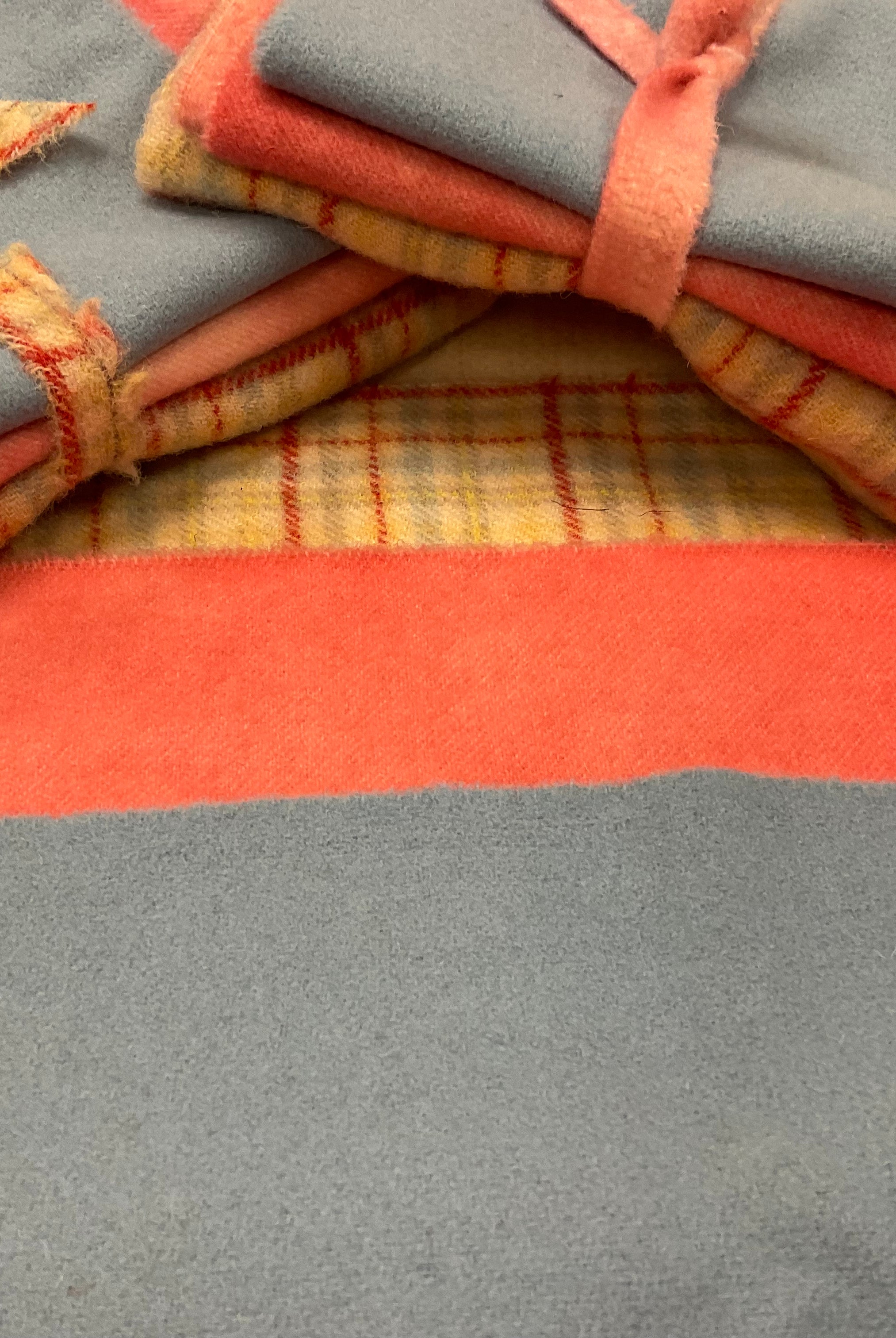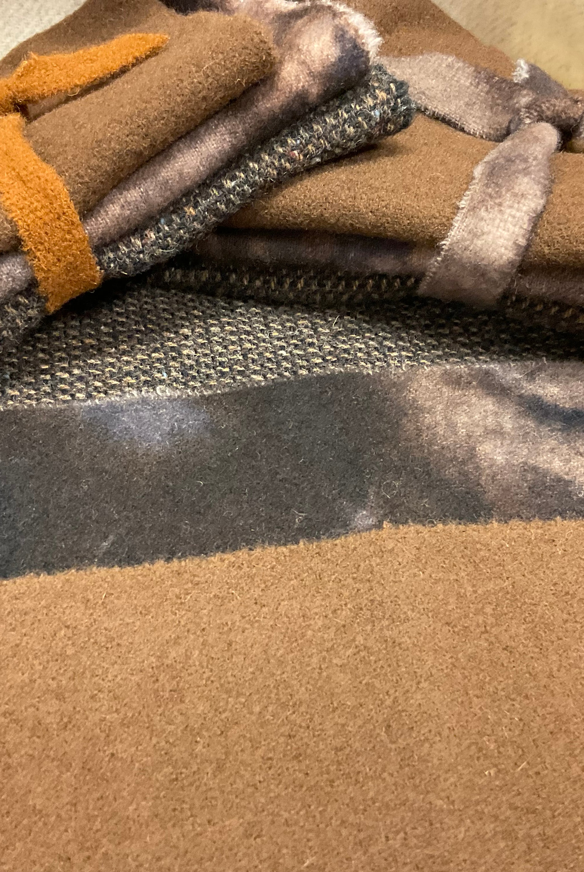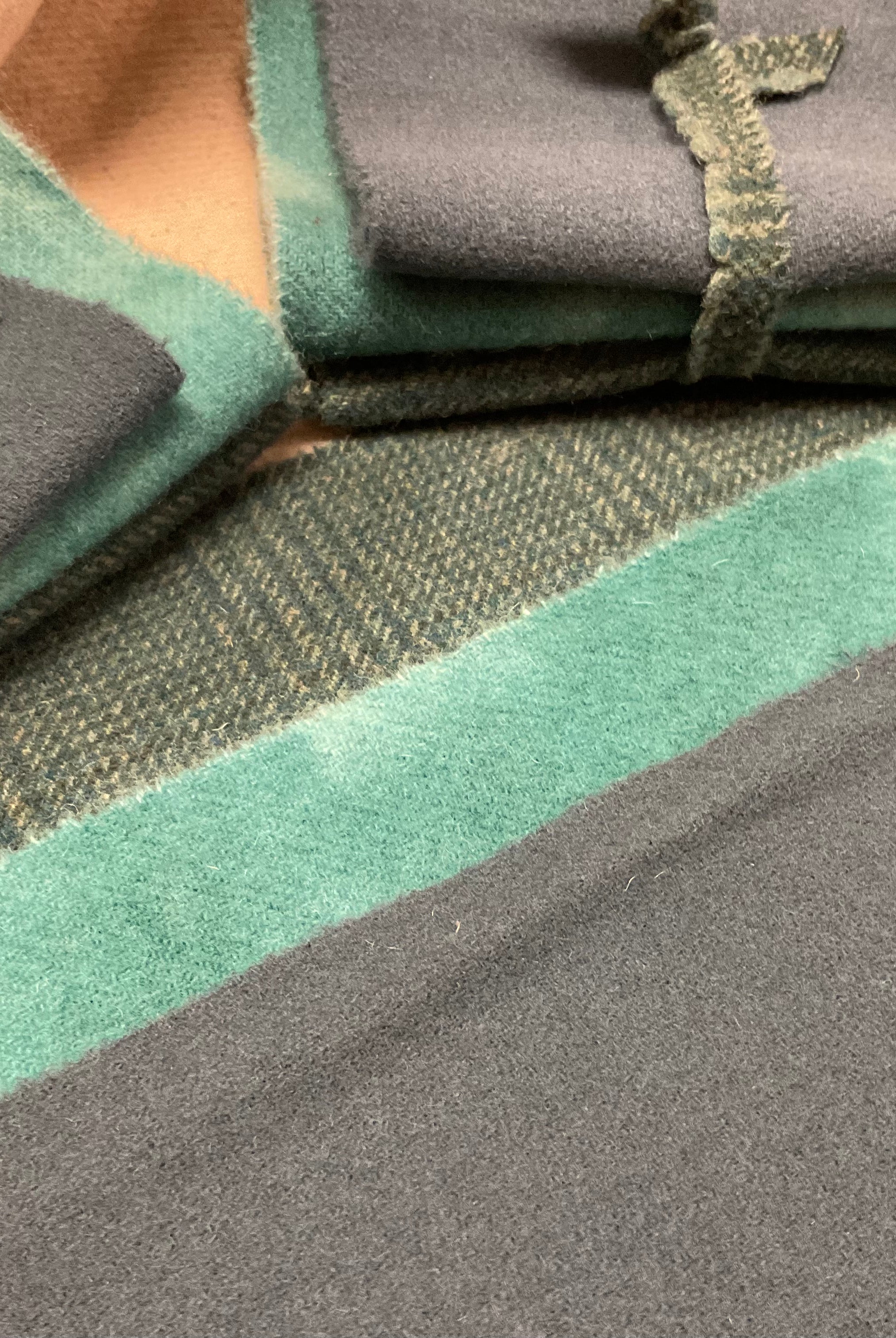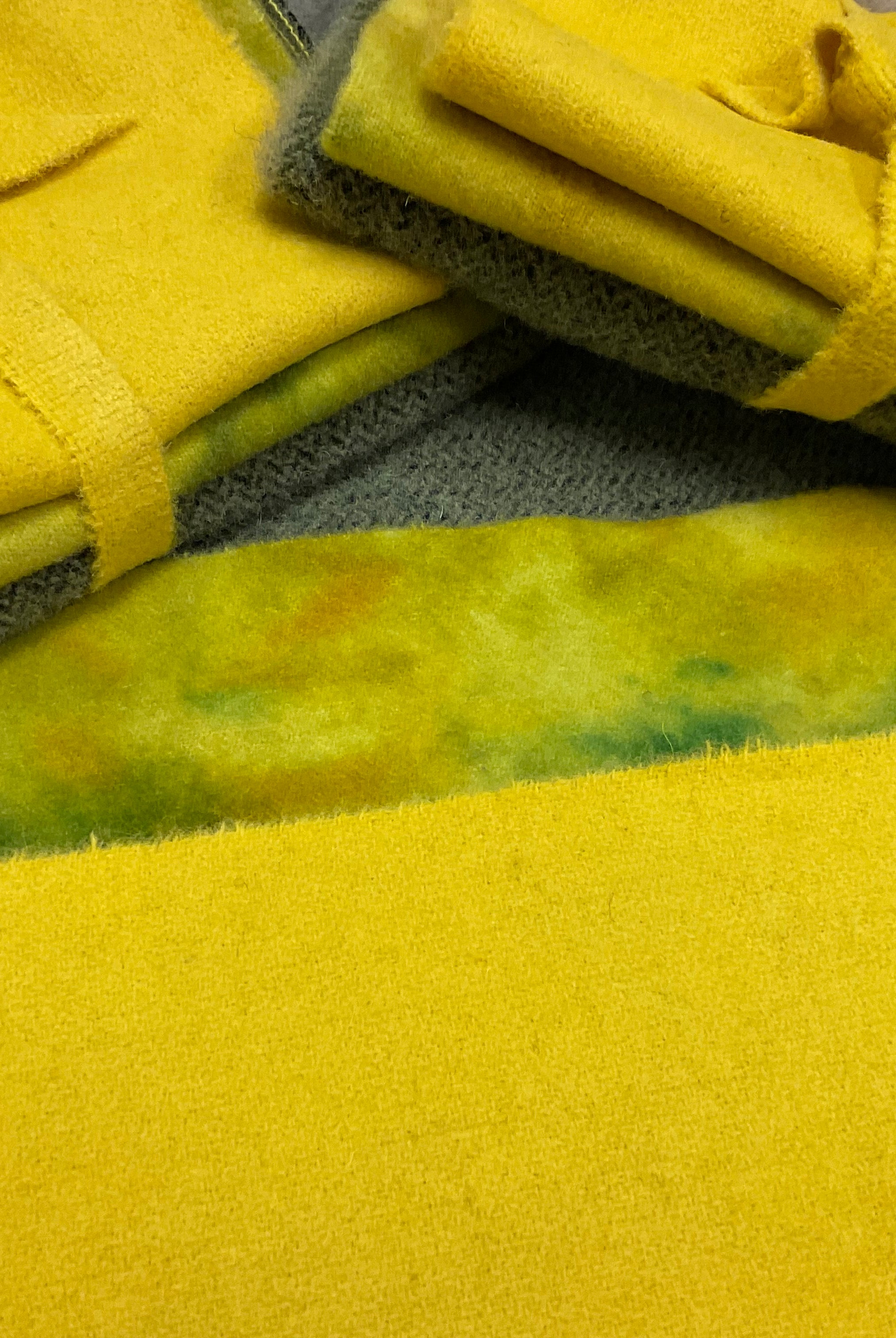 These fun bundles are all washed and ready to work with, they are a fat 1/16 of a washed as is wool 7.5x17, an over dyed wool roughly 7.5x17 and a solid 5.5x17 from the Rebekah Smith wools. We have picked 3 coordinating Vadani threads in #8 to go with your stitching if you like. Threads will be chosen to coordinate with the wools in the bundles.