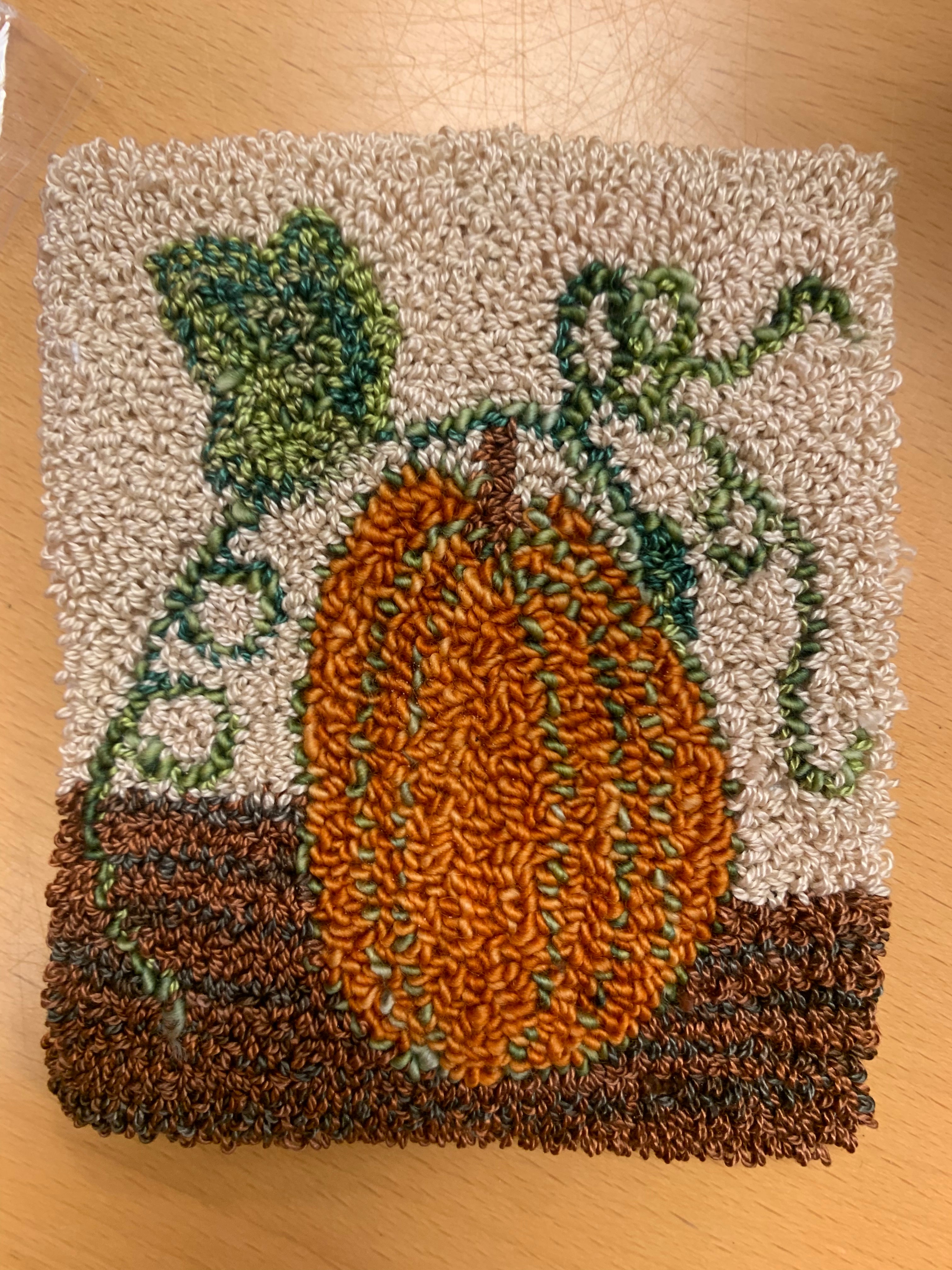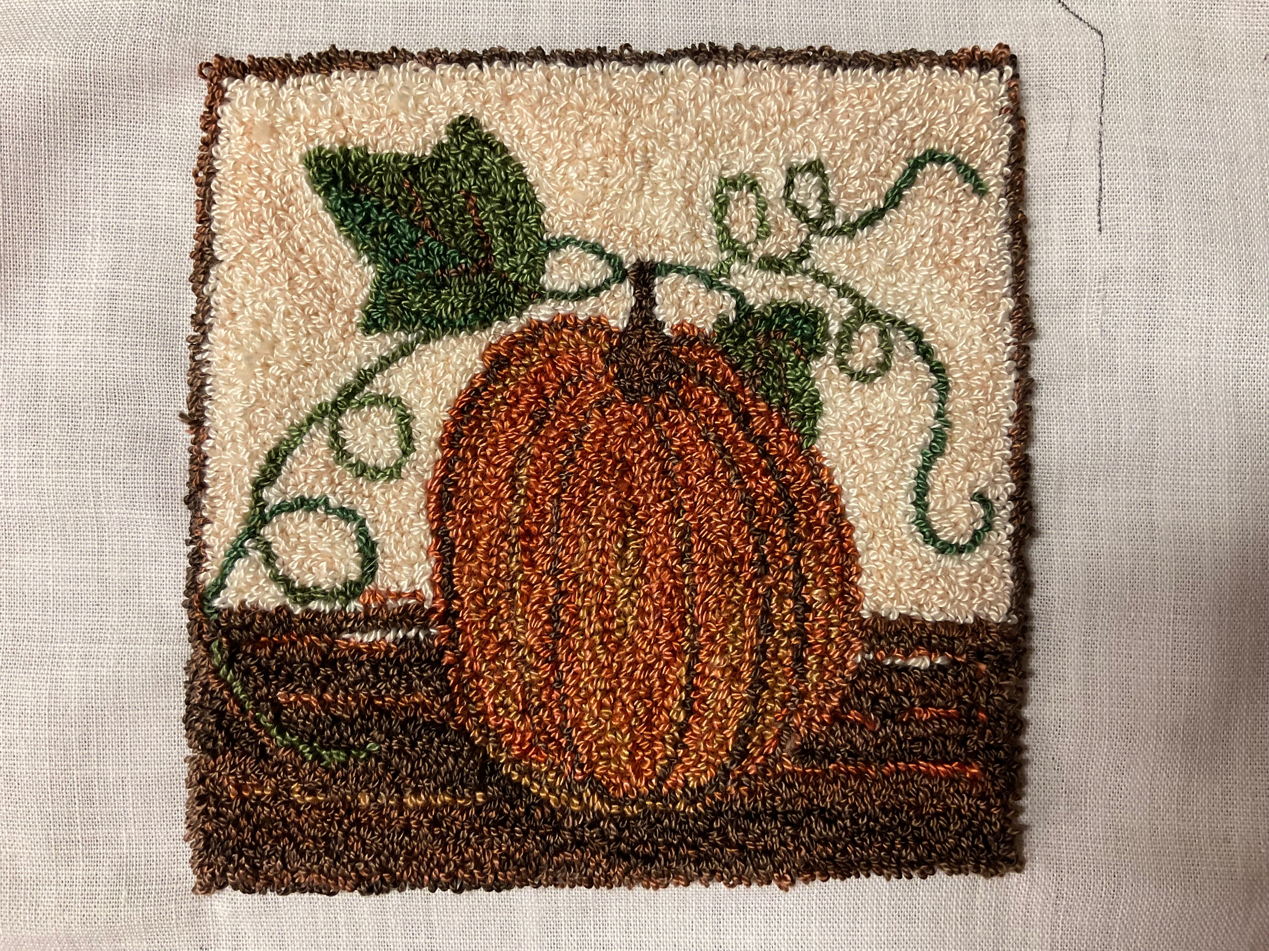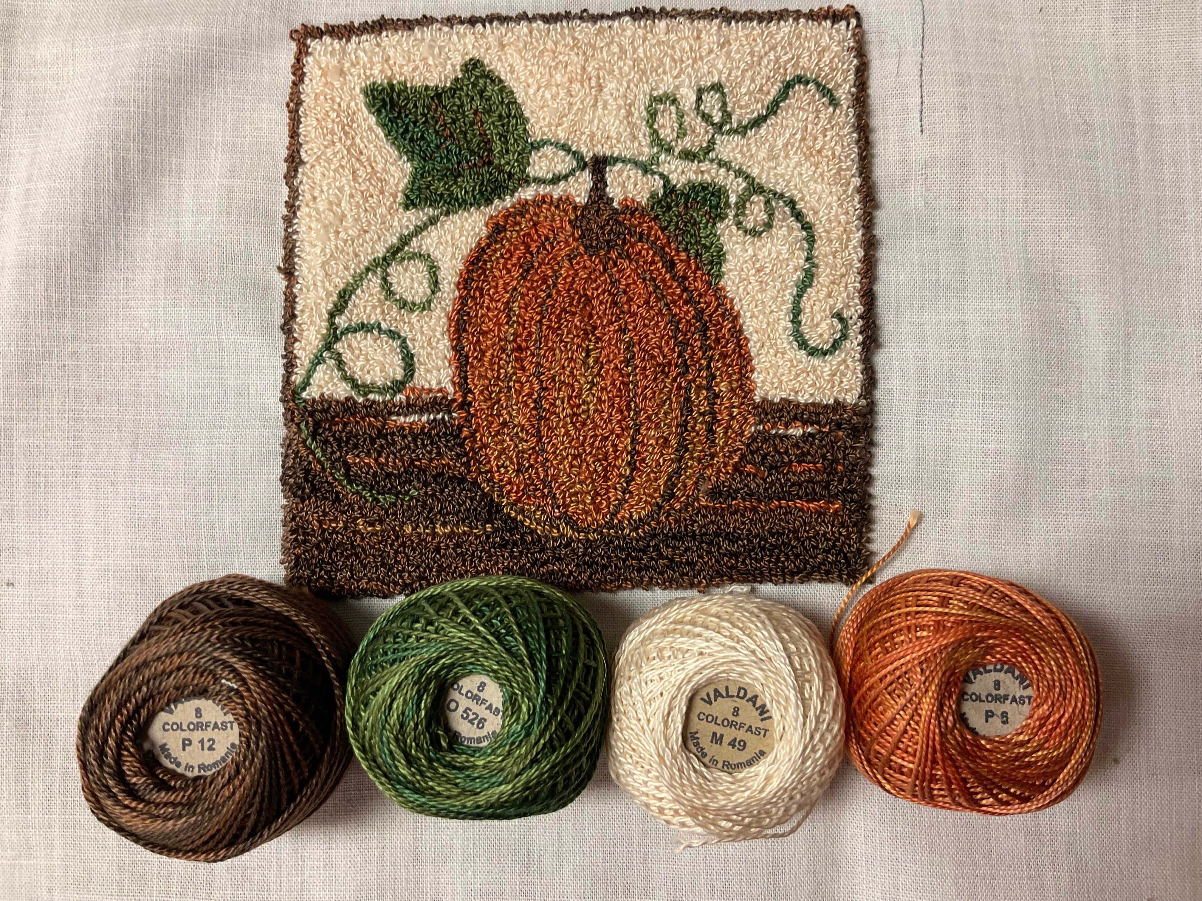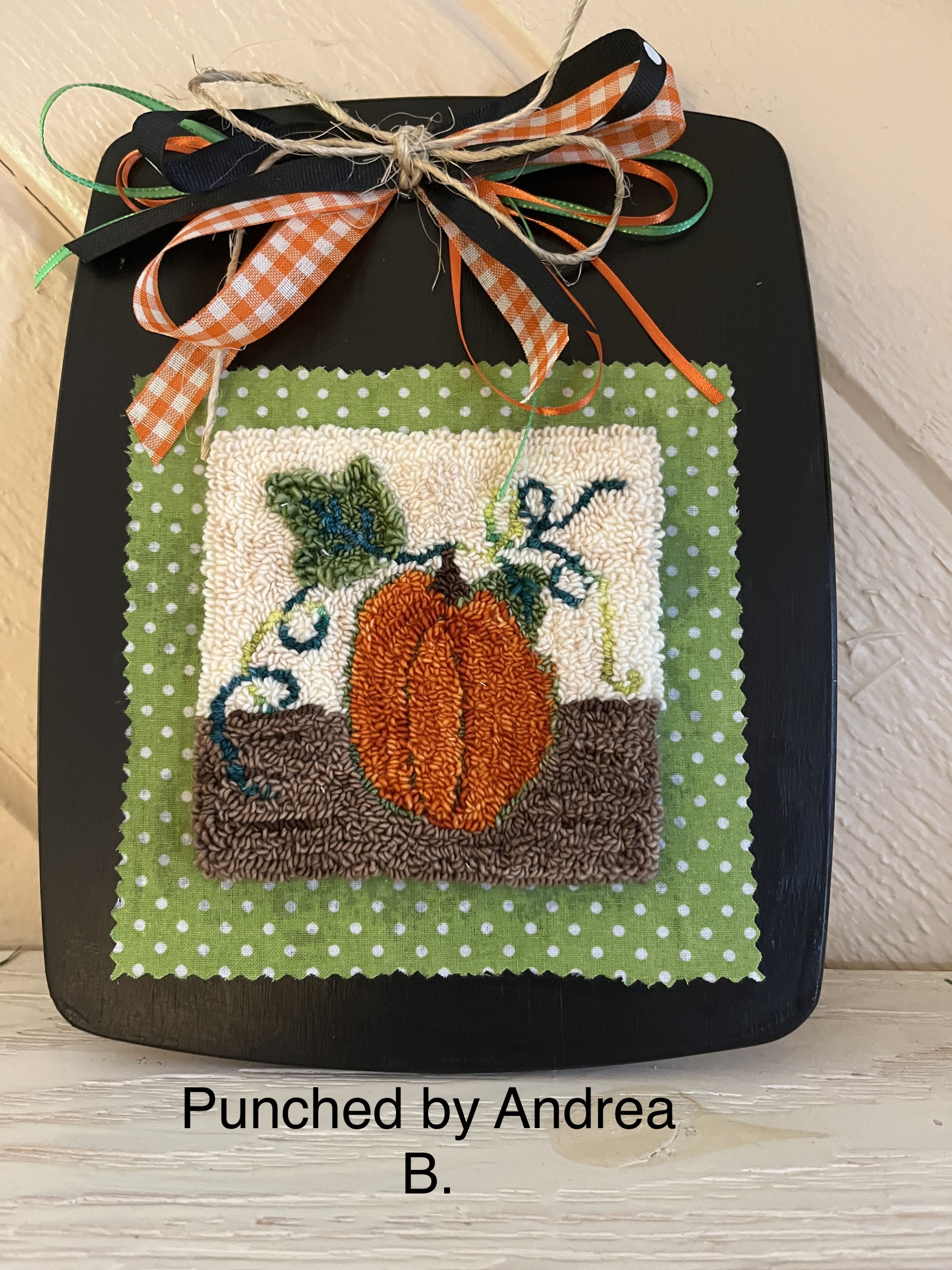 Small patterns that are great to try out mini punch! They are fun, simple, easily learning designs and this cute pumpkin is 4x4 and easy punching! It’s a great way to use up your scrap embroidery floss or try a new to you craft! Or if you just need a little something that works up fast for a little gift. Easy to finish off many ways and uses, they are perfect little bowl fillers too! Thank you Sharon H for sharing your site piece you punched.