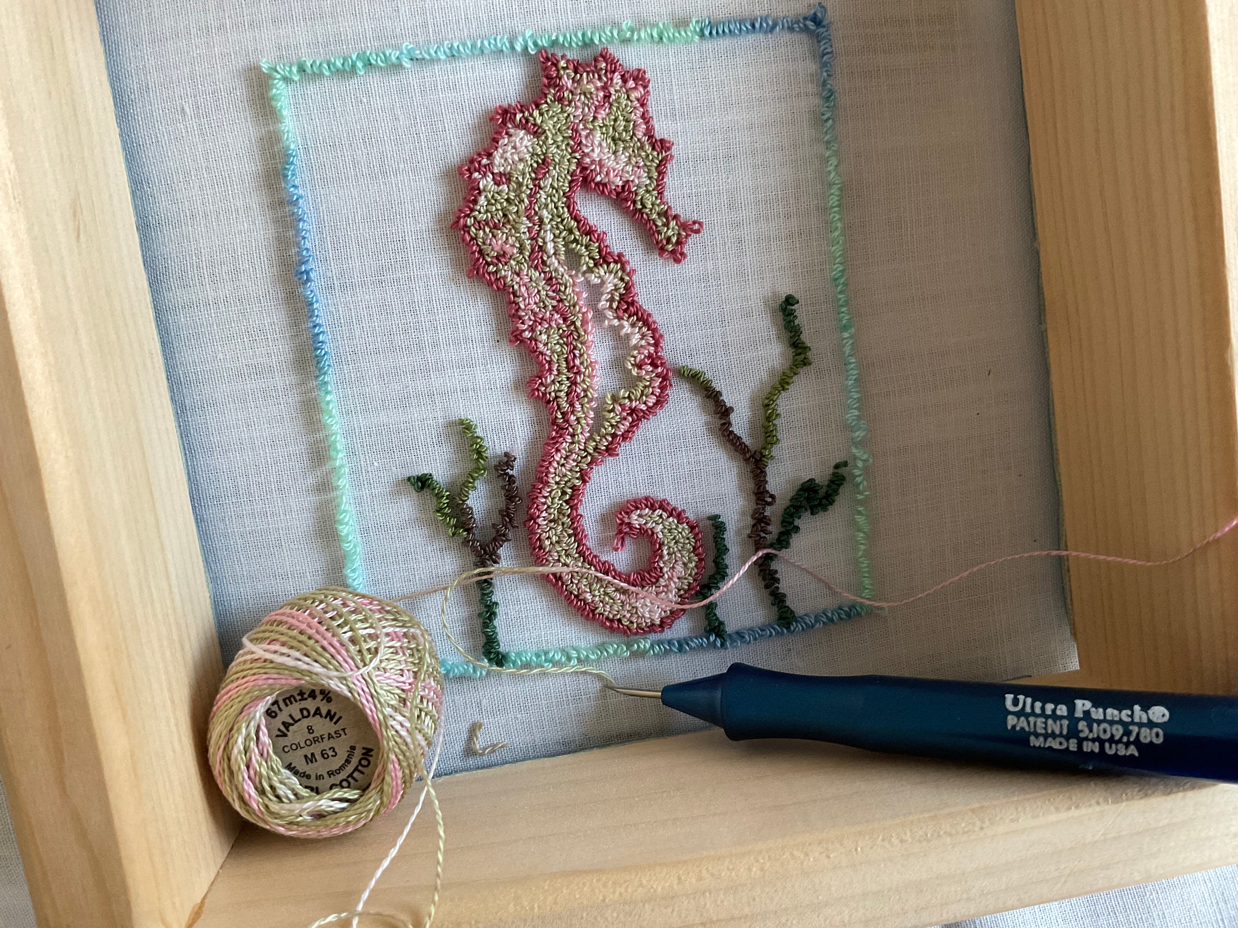 We love this little sea horse, He’s just a happy little guy :) Small patterns like these are great to try out mini punch! They are fun, simple, easily learning designs and this cute seahorse is 4x5 and easy punching! It’s a great way to use up your scrap embroidery floss or try a new to you craft! Or if you just need a little something that works up fast for a little gift. Easy to finish off many ways and uses, they are perfect little bowl fillers too!