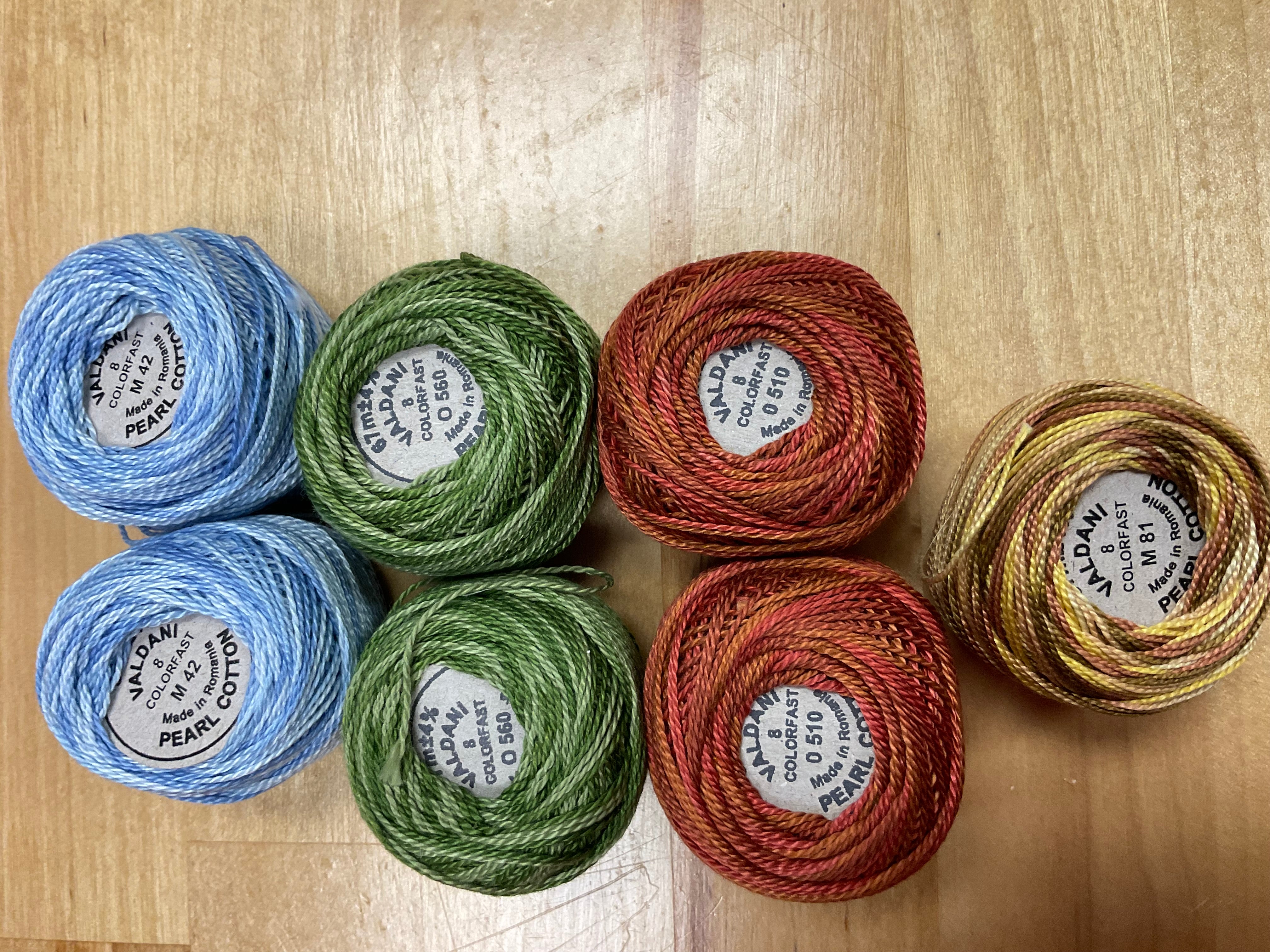 All of our punch needle patterns are Hand drawn on weavers cloth. We use the ultra punch punch needle. And our thread kits are Valdani #8 pearl cotton.