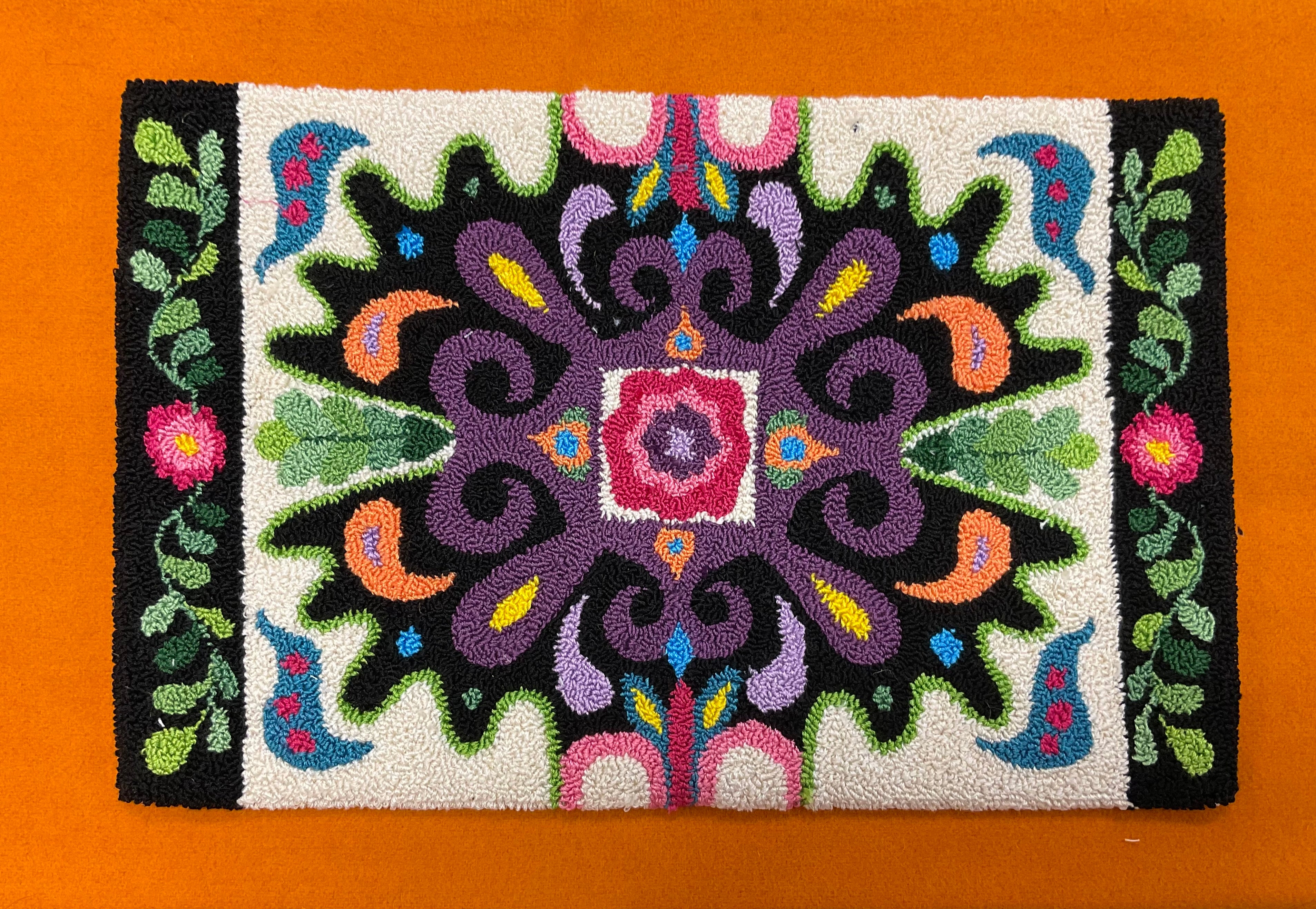 All of our punch needle patterns are Hand drawn on weavers cloth. We use the ultra punch punch needle. And love to work with our hand dyed merino or Valdani #8 pearls cotton. As we get samples punched we will add them to each piece.Devine Design.