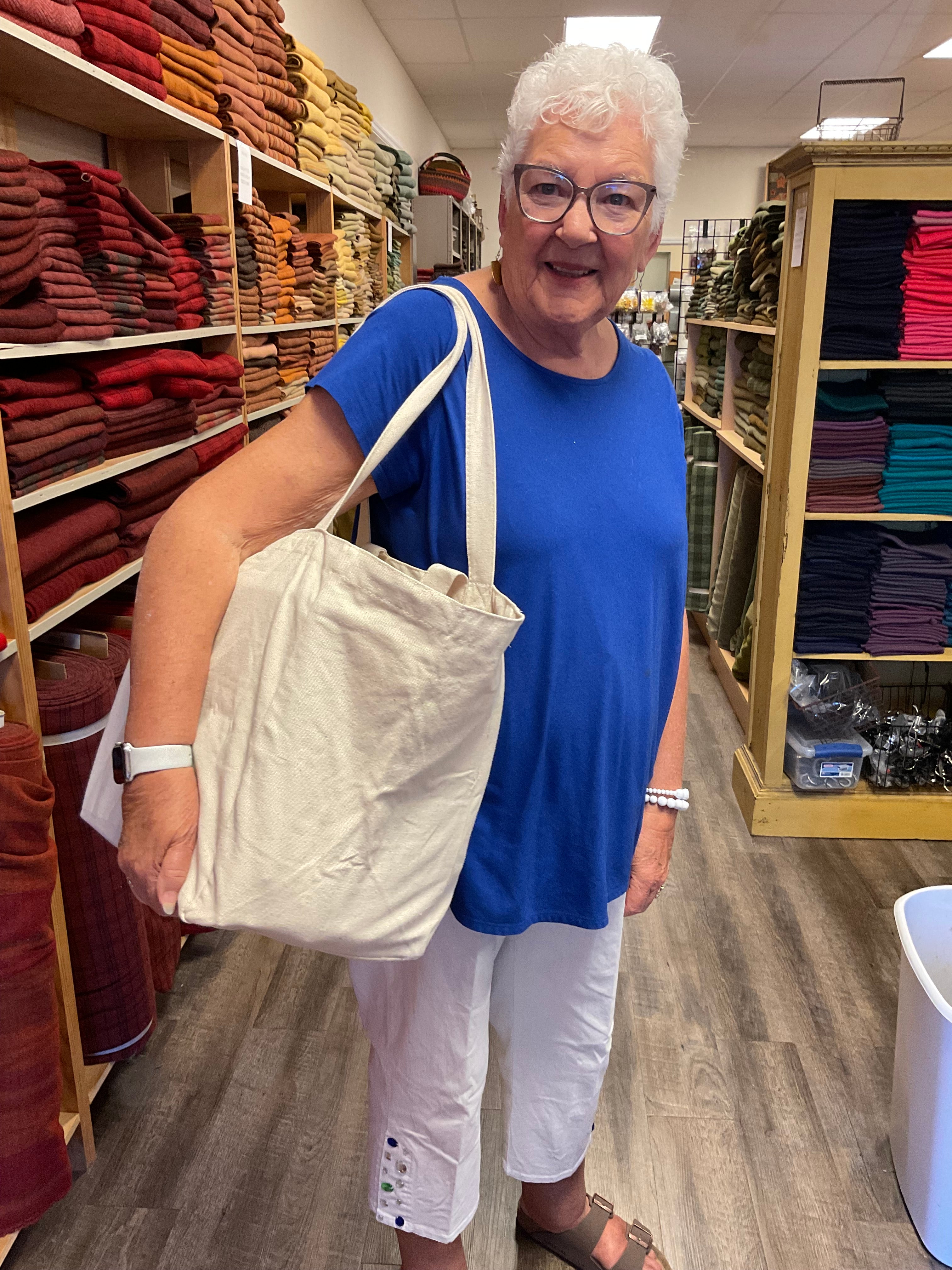 You can do just awesome sturdy canvas bag that has two handles. One is 13 inches for hand carrying and one is 25 inches for over the shoulder. Looking inside you will see 6 roomy pockets to hold books, folds of fabric, or supplies.