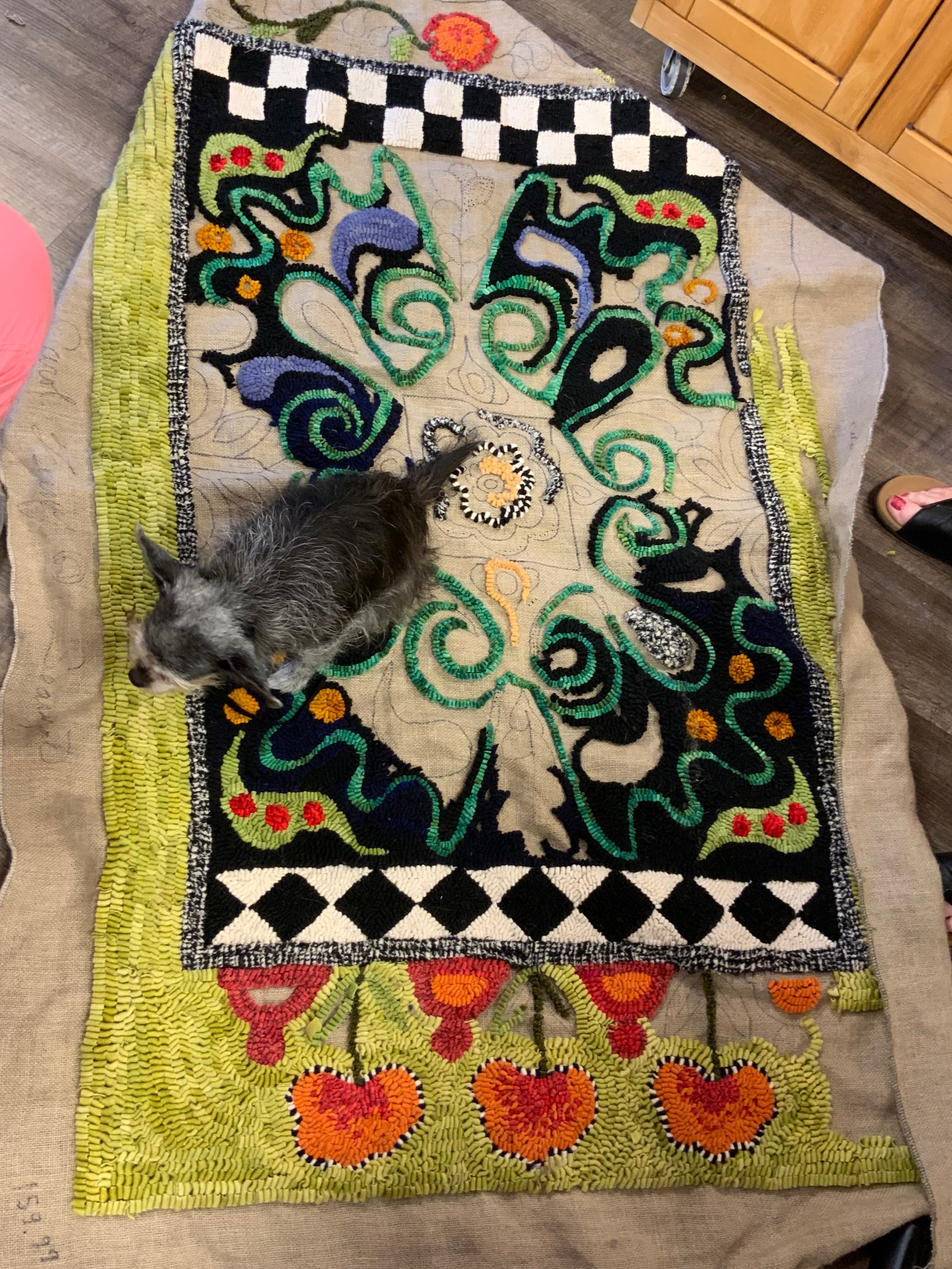 The rug with the yellow/green background is Carol R’s