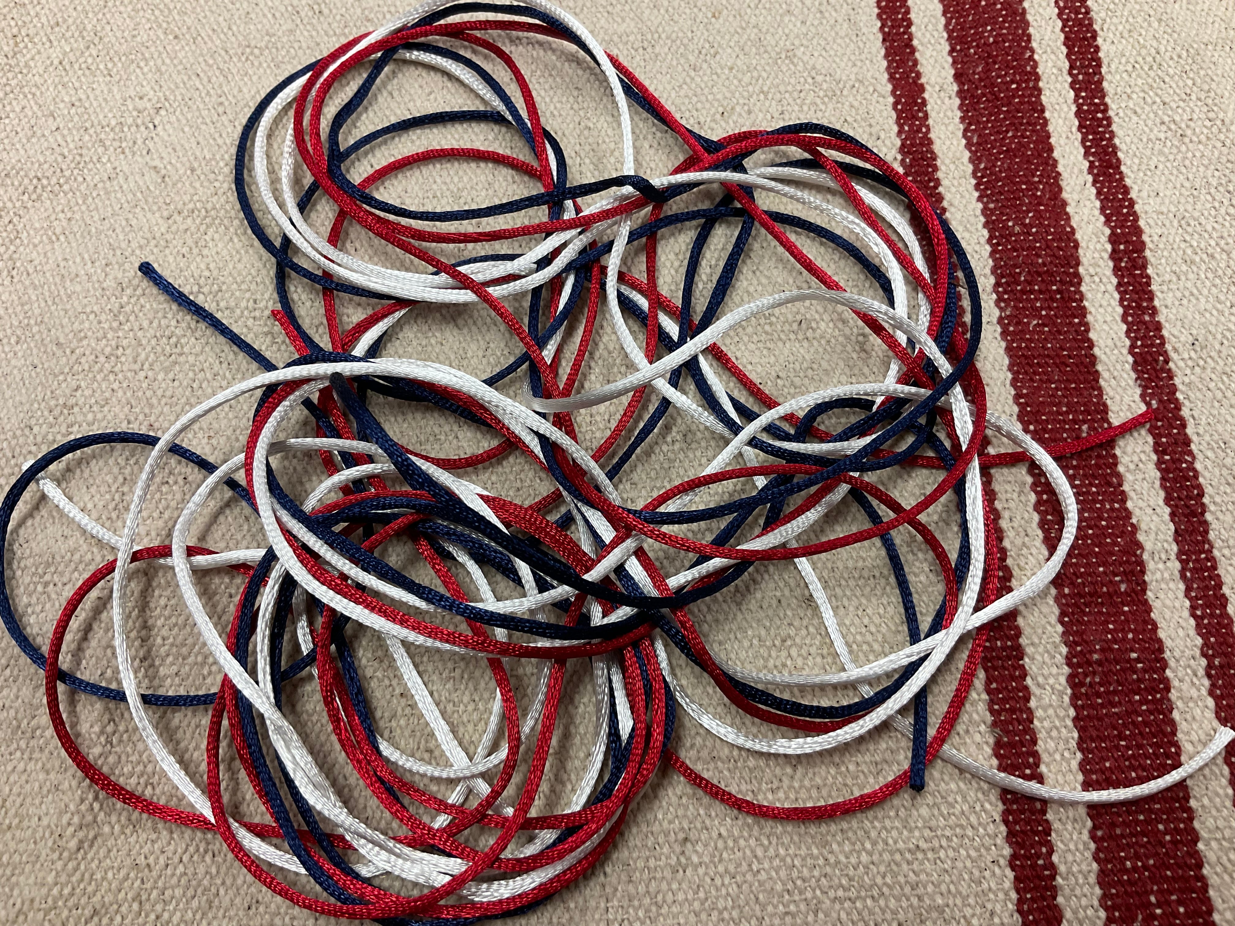 3 yards each of red, white and blue satin cording. Perfect for hangers, trim and little extra tie on's on any of your projects.