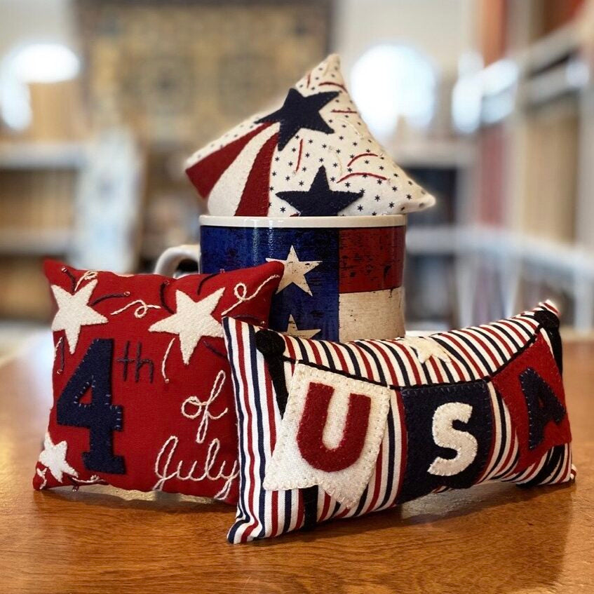 Pattern by Karen Yaffe. How about making a set of Cute little pillows to tuck in bowls, use as pincushion or give as a gift. Finished sizes are 5x5 and 4x7.