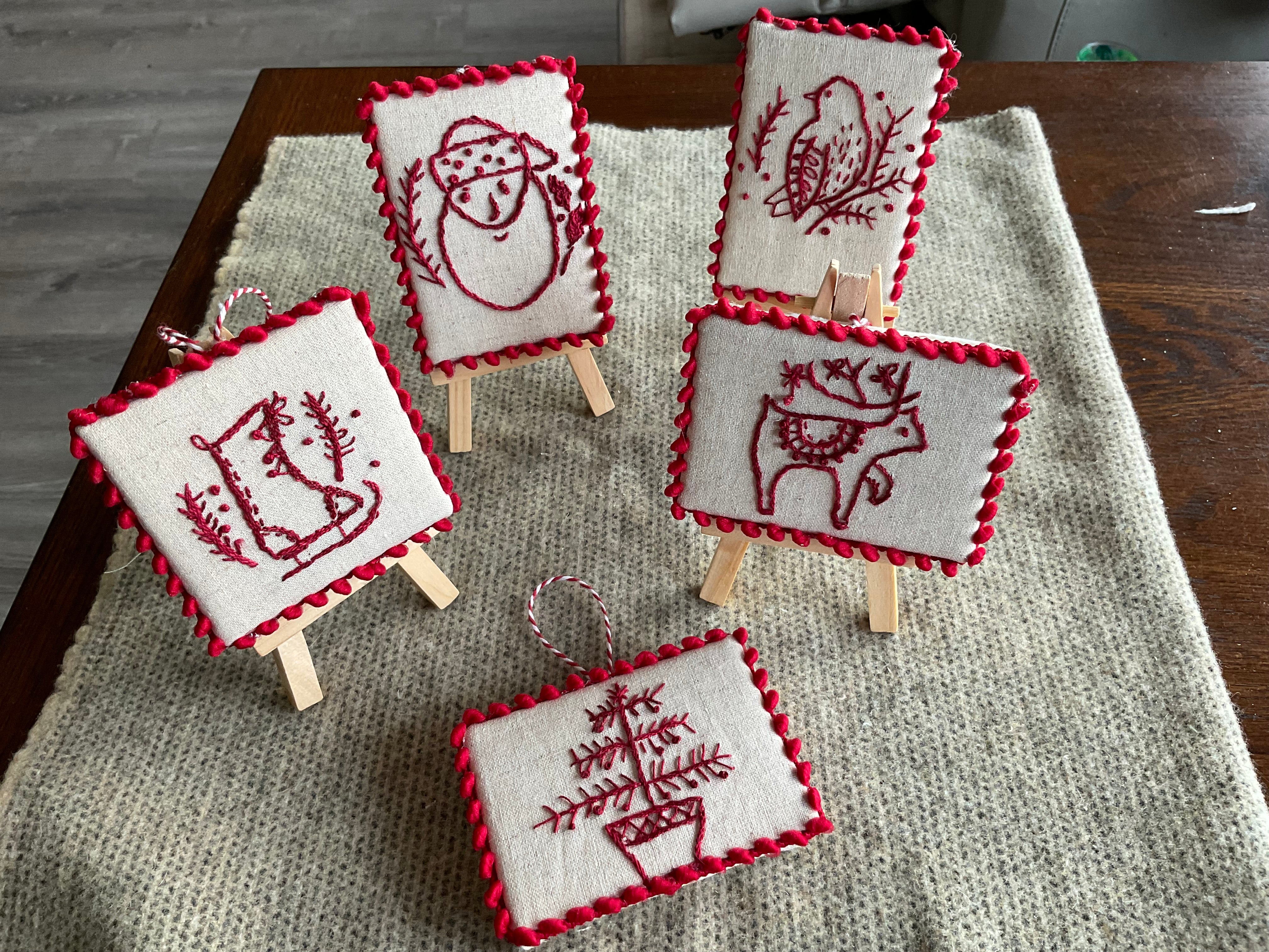 This patterns includes the directions for 14 cheery 3" long Christmas ornaments to hand embroider and finish. Complete finishing directions are included with the pattern.