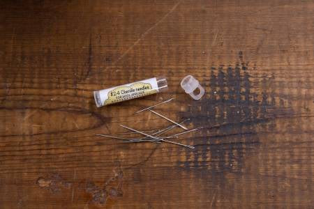 There are 12 needles in this tube. The larger eyes in the needle makes threading pearl cotton a breeze. These are perfect for wool applique. Primitive Gatherings #24 needles are shorter and sharper than normal chenille needles.